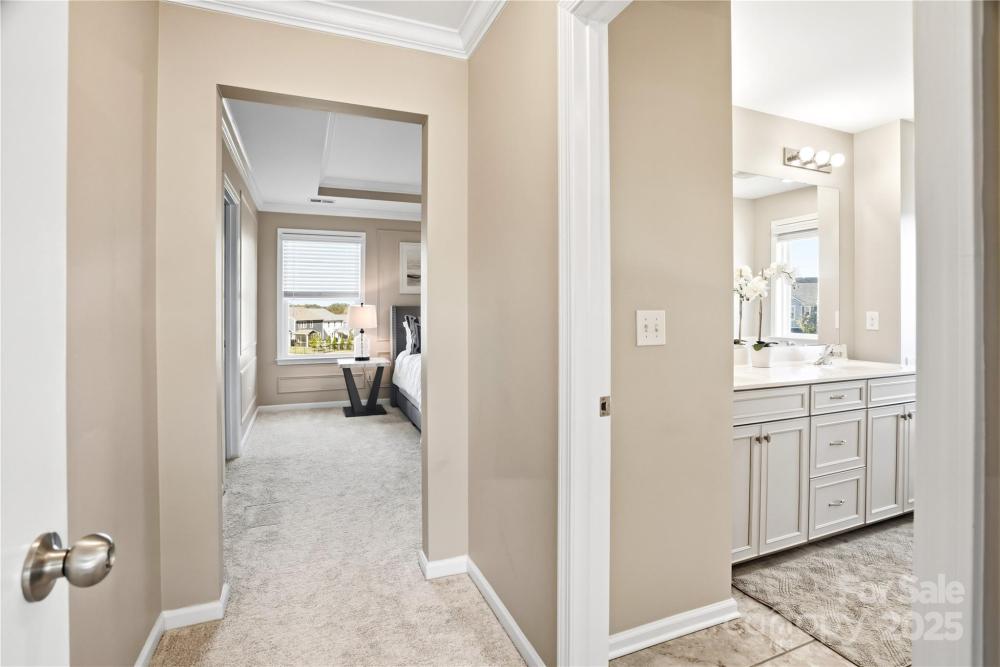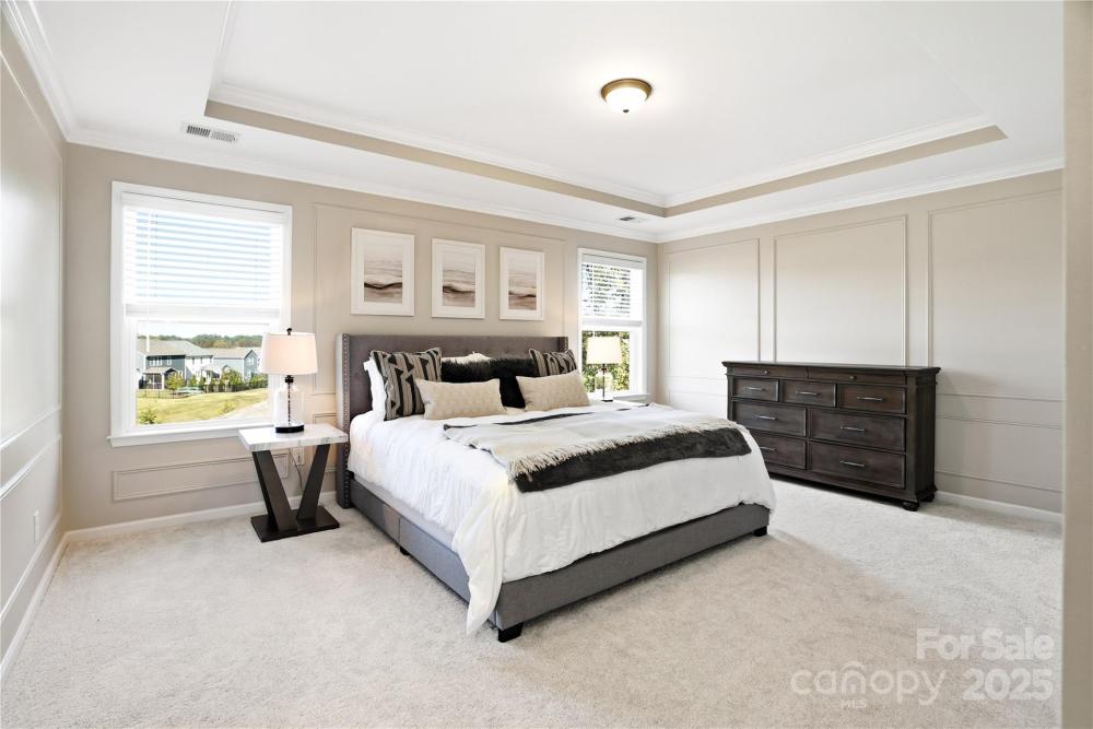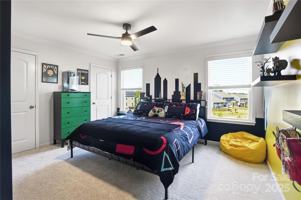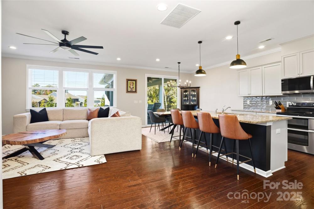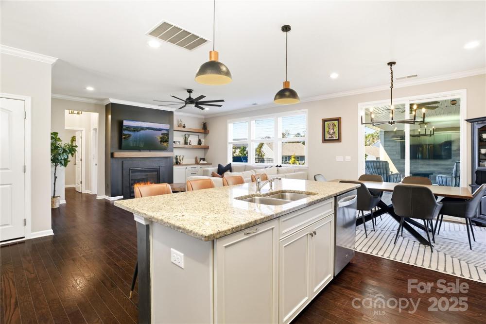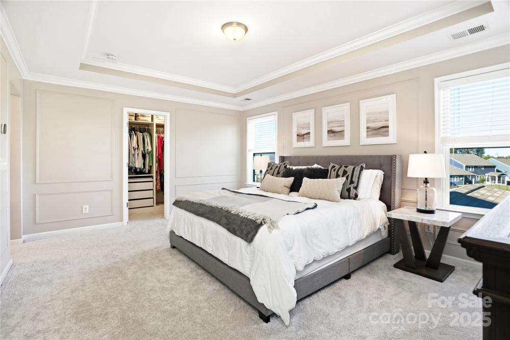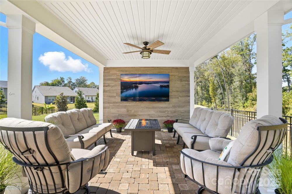 Located in the Magnolia Walk neighborhood of Huntersville, this home has been beautifully maintained and thoughtfully upgraded inside and out. The backyard features a retaining wall along the fence line to create a level yard, lush landscaping with trees, a full fence, and an extended paver patio with a large covered section including electrical and a TV mount—ideal for relaxing or game days. Inside, enjoy new carpet (Sept 2025), fresh paint (Oct 2025), and upgraded light fixtures and fans (2022–2025). Custom details include built-ins beside the fireplace with a solid wood mantle, cabinetry in the front room, closet organizers (2021), and window coverings throughout. The main level offers hardwood floors and a flexible office or guest bedroom, while upstairs includes a spacious loft perfect for play or work, a convenient laundry, and generous bedrooms. Excellent community close to the Huntersville Aquatic Center, shopping, dining, the airport, and Uptown Charlotte.
