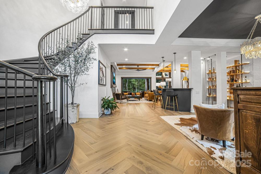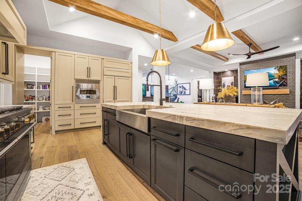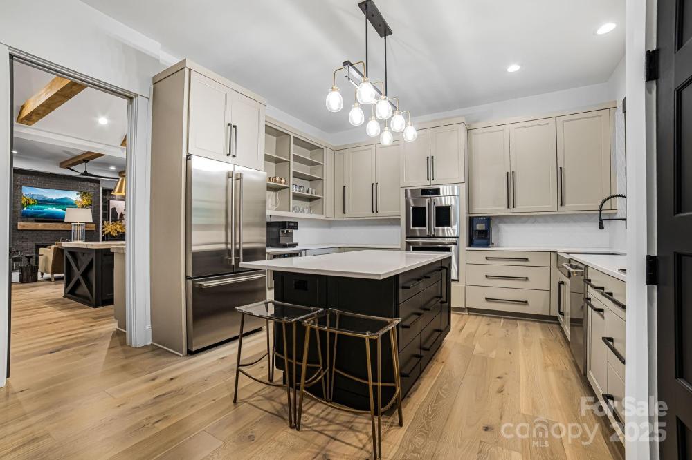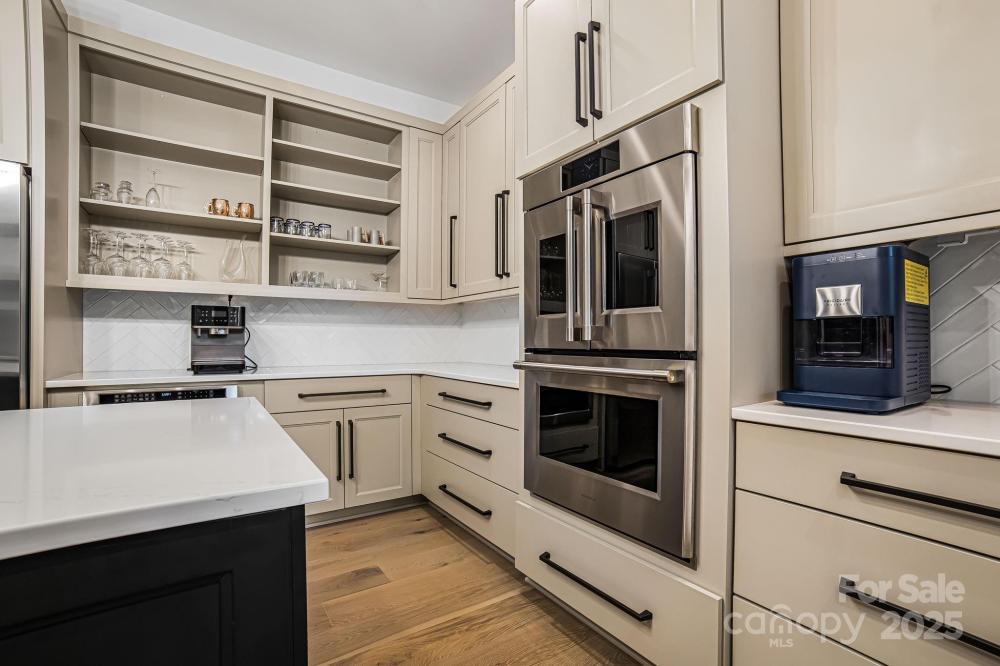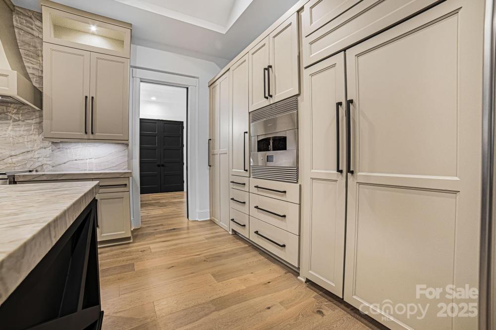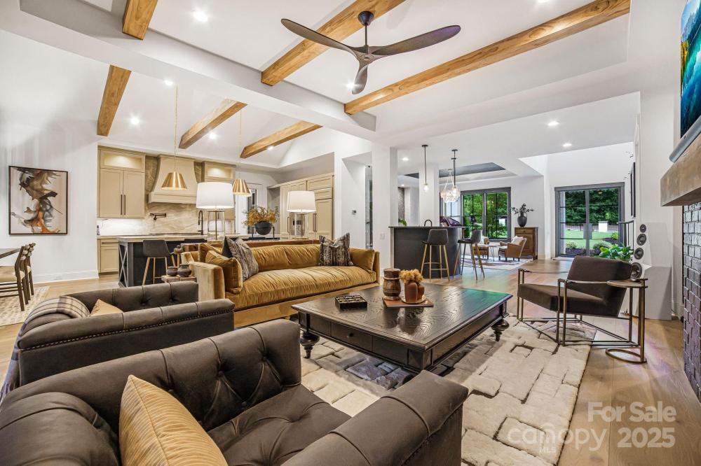 Experience unmatched privacy and modern luxury in this fully custom 2023 estate, perfectly situated on over 3.4 acres in Maple Grove, a boutique six-lot subdivision. From the moment you arrive, the gated entry with brick columns and sweeping front lawn framed by manicured landscaping create a commanding first impression. The home’s thoughtful design blends sophistication and comfort with soaring vaulted and beamed ceilings, custom millwork, and designer lighting throughout. The chef’s kitchen showcases natural Vancouver Quartzite with a double-edge island, 6-burner range with griddle and hearth oven, pot filler, hidden walk-in pantry and outlets, complemented by a separate scullery with a full second kitchen, Italian handmade backsplash tile, and abundant storage. Pocket doors add privacy to multiple spaces including the library/media room and guest suites. Retreat to the serene primary suite with spa-inspired bath, custom closets, and marble finishes. Additional highlights include glazed Italian porcelain tile baths, custom built-ins, herringbone wood floors, and three Monogram wine/beverage fridges across the bar, library/media room, and outdoor kitchen. Outdoor living takes center stage with a resort-style pool and spa, expansive veranda with retractable screen, fire pit, and an inspired backyard retreat featuring a flowing river stream, tiered putting green, and dramatic landscape lighting. Extensive drainage improvements further enhance the property’s functionality and value. Backing to Fisher Farm Park and the Davidson Greenway, this private estate combines natural beauty, luxury finishes, and exceptional craftsmanship in one extraordinary package!