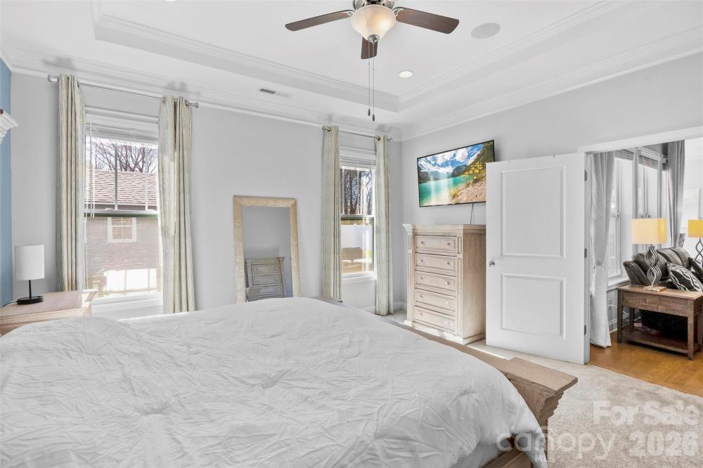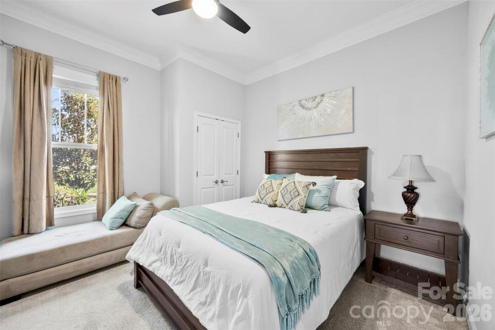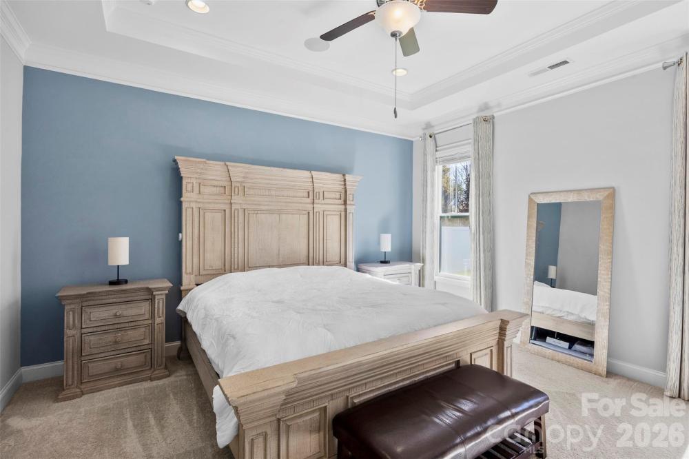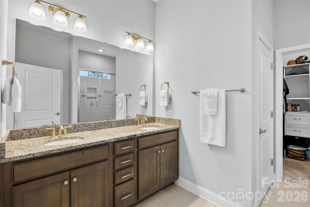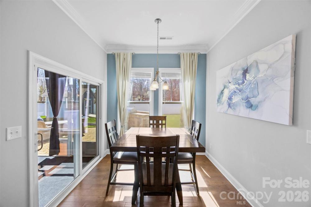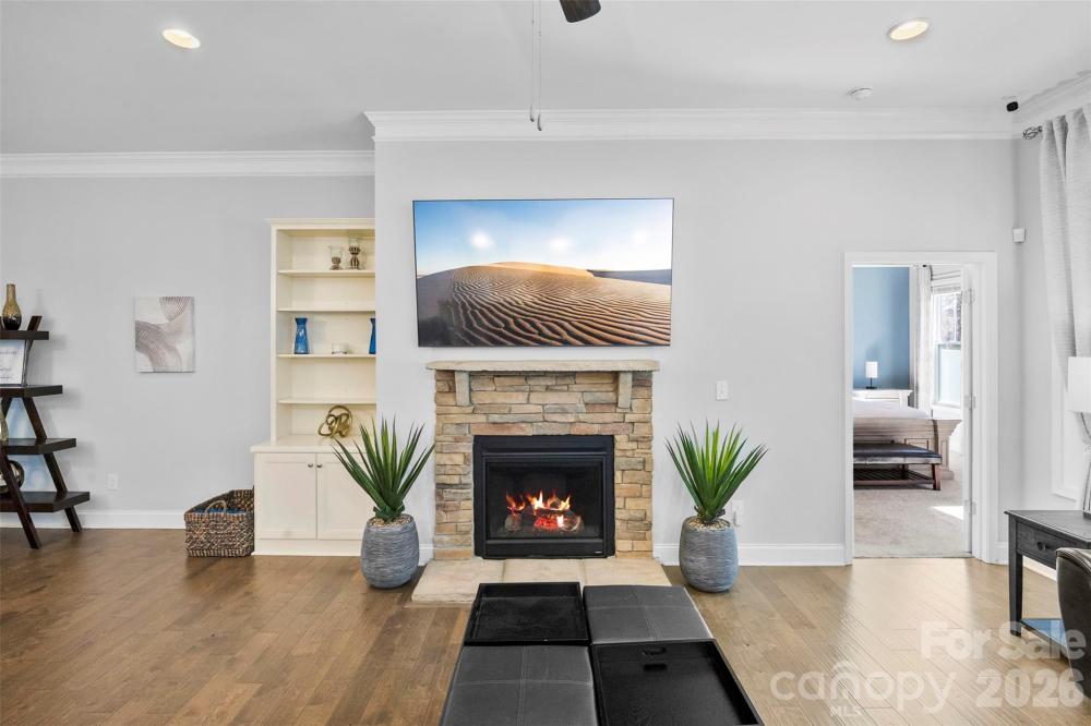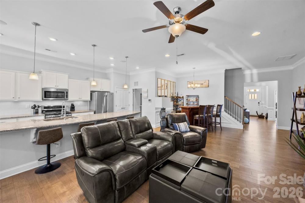 Step inside and immediately feel at home in this thoughtfully designed floor plan where comfort and functionality come together beautifully. The main level features a spacious primary suite, along with two additional bedrooms and a full bath, creating the perfect layout for both privacy and everyday convenience. At the heart of the home is a bright, open living space anchored by a massive kitchen island—an ideal gathering spot for morning coffee, casual meals, or entertaining friends and family. The kitchen is both stylish and functional, featuring granite countertops, stainless steel appliances, and plenty of space to cook, host, and connect. Engineered hardwood floors flow through the foyer and main living areas, while crown molding and wainscoting add timeless character throughout. The primary suite offers a relaxing retreat with a beautifully finished bathroom featuring a ceramic tile shower. Modern features like a tankless gas water heater and a fully integrated smart home system add comfort and efficiency to everyday living. Upstairs, a versatile loft creates the perfect second living area—ideal for a media room, playroom, or quiet workspace—along with an additional bedroom and full bath that make a great private space for guests. Step outside and enjoy a backyard designed for both relaxing and entertaining. Unwind on the screened-in porch or host friends and family on the paver patio featuring a built-in grill—perfect for outdoor gatherings. The private, fenced backyard backs to mature trees, offering a peaceful setting and added privacy. Additional highlights include an irrigation system to keep the lawn lush, a storage shed for extra space, and a short distance to the neighborhood pool for easy summer fun.