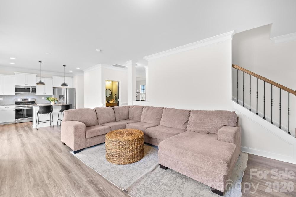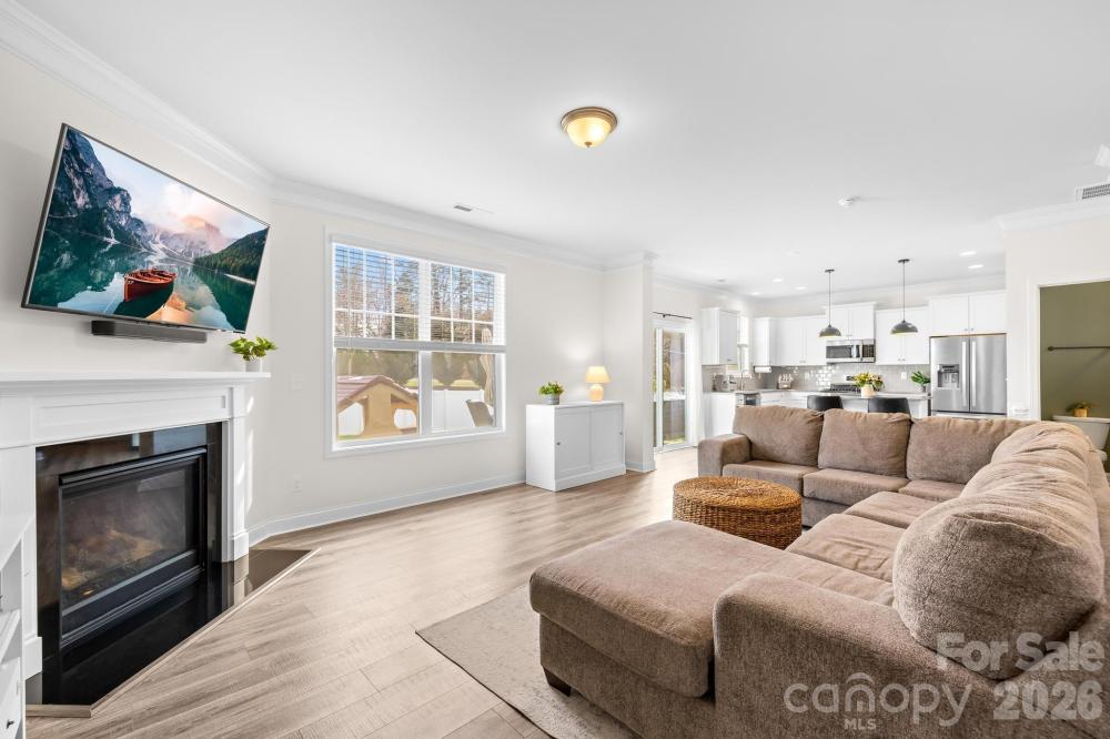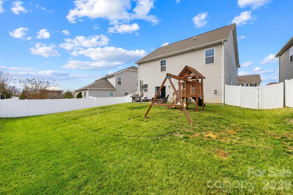 Elegant two-story residence offering 4 BR, 2.5 BA, and 2,382 SF in Meadows at Coddle Creek. Thoughtfully designed layout features an open main level with wood flooring, spacious great rm w/gas log FP, and a well-appointed kitchen w/quartz counters, island, custom cabinetry, walk-in pantry, gas range/oven, and beverage. The dining area flows seamlessly for daily living and entertaining. Upper level hosts a generous primary suite w/dual vanity bath, oversized shower, and WIC, plus three additional BRs, a full BA, and a convenient laundry room. Covered front porch and rear patio overlook a level, fully fenced backyard. Attached 2-car garage w/keypad entry. Community amenities include an outdoor pool, a playground, and walking trails. Convenient to shopping, dining, and major routes.