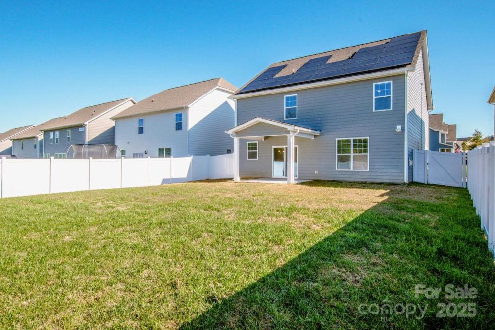 Built in 2020, this home still shows like new with the added benefits of improvements from its original owner! Step onto the covered front porch, and inside to find a functional, light-filled, layout with granite tops throughout, white shaker cabinetry, and cool neutral tones. The kitchen features an island with pendant lighting, tile backsplash, and stainless appliances. Step out back through the sliding glass door, to a covered patio overlooking the private, fenced back yard. The family room centers around a cozy, gas fireplace to enjoy this fall and winter. Upstairs, the spacious owner's suite features an oversized tile shower, and dual sinks, and an expansive walk-in closet. The secondary bedrooms share a well-appointed bath, also with dual sinks and plenty of storage. A loft area provides flexible space for a home office, second living area, playroom, or hobby zone. Solar panels help reduce utility costs especially during summer months. Community features include a pool, clubhouse and playground. Just minutes from downtown Mooresville and the town of Davidson, as well as convenient access to both I-85 and I-77, Lowe's Corporate, and Duke Health LKN. Carpets were just cleaned and living areas are freshly painted. Schedule your showing today!