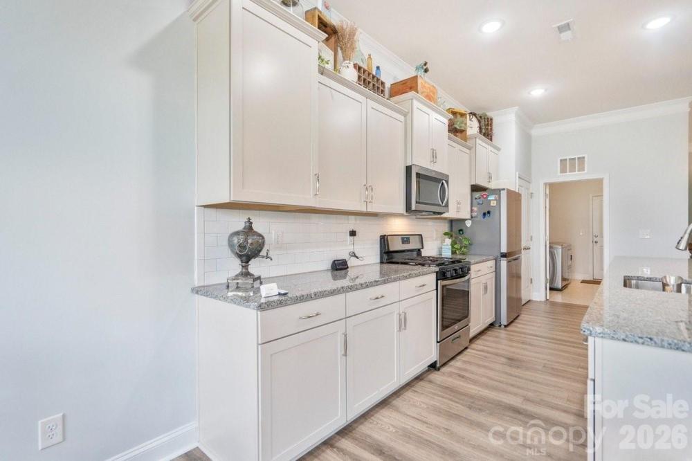 Welcome home to this beautifully maintained 3-bedroom, 2-bath ranch located in a quiet cul-de-sac in the heart of Mooresville. Designed with both comfort and functionality in mind, this inviting home features a desirable open floor plan that seamlessly connects the main living spaces, making it ideal for everyday living and effortless entertaining. The spacious living area is filled with natural light and flows easily into the dining area and kitchen, creating a warm and welcoming atmosphere. The open layout offers flexibility for furniture placement and gatherings of all sizes, while maintaining a cozy, connected feel throughout the home. Whether hosting friends or enjoying a quiet evening in, this home adapts perfectly to your lifestyle. The primary suite provides a peaceful retreat, complete with a private en-suite bathroom and ample closet space. Two additional bedrooms offer versatility for guest rooms, home offices, or hobby spaces, while the second full bathroom is conveniently located for both guests and household use. Each room is thoughtfully designed to maximize comfort and functionality. Step outside and discover one of this home’s true highlights—a beautifully designed outdoor living space perfect for relaxing and entertaining year-round. The patio features an outdoor grilling area ideal for cookouts and gatherings, while the soothing fountain creates a serene, resort-like atmosphere. This private outdoor retreat is perfect for morning coffee, evening dinners, or unwinding after a long day. Situated on a cul-de-sac lot, the home offers added privacy and a peaceful setting, while still being conveniently located near shopping, dining, schools, and major roadways. The ranch-style layout provides easy, one-level living and long-term convenience. With its open floor plan, charming outdoor space, and desirable location, this home is a rare find that combines comfort, style, and functionality. Don’t miss the opportunity to make this Mooresville gem your own—schedule your showing today and experience everything this home has to offer.