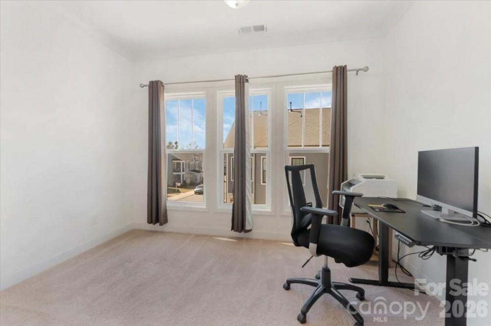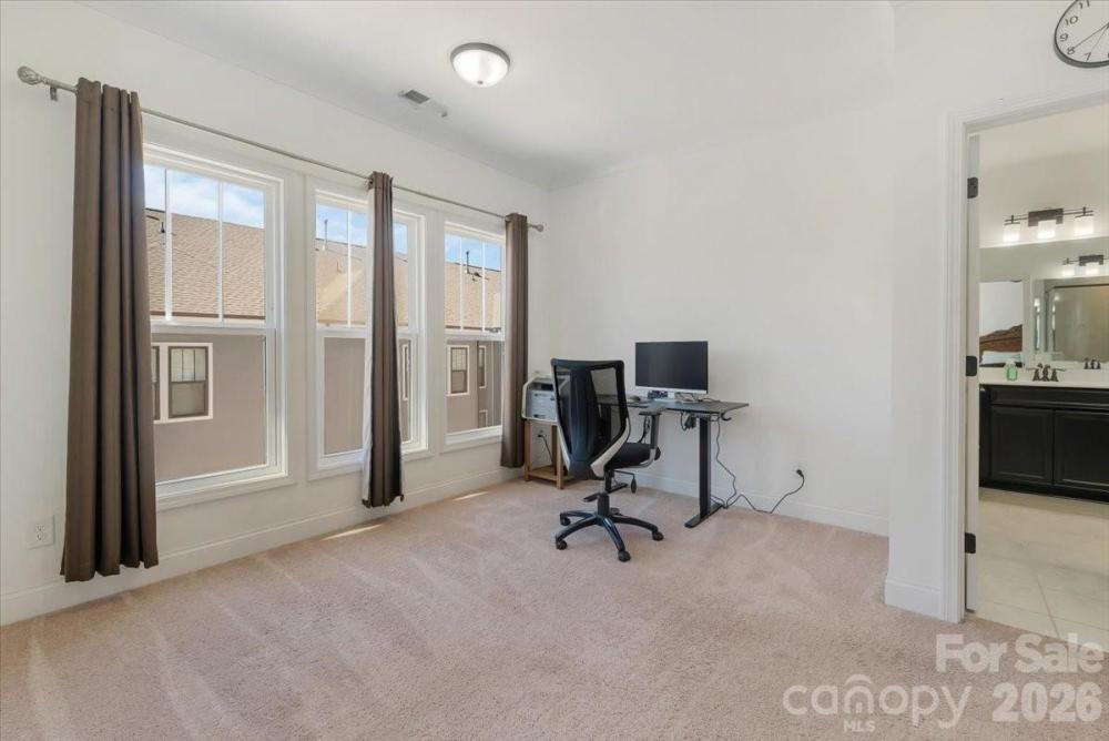 Stunning North East Facing End-Unit Townhome located in the heart of Huntersville, that perfectly blends modern luxury with "Front Porch" charm. Zoned for top rated Cabarrus county schools, making it a prime location for those seeking top-tier education and a high quality of life. Enjoy an airy, open-concept floorplan with 9ft ceiling, luxury vinyl - style flooring & a dedicated drop zone for organization. The heart of the home boasts a large center island, modern finishes & a seamless flow into the dining and living areas - ideal for entertaining. The second floor features 3 generously spacious bedrooms and bathrooms. The primary bedroom is large enough to accommodate a king-sized bed plus a dedicated sitting area, making it a true sanctuary. Dual walk-in closets, double vanity with ample counter space and a large modern tiled shower are added features. Two additional well-appointed bedrooms are located at the opposite end of the hallway, sharing a full second bathroom. These rooms are ideal for family members, guests or a quiet home office, featuring large windows inviting plenty of natural light. Easy access to I-77, I-85 and also the 485 making commute to uptown Charlotte, Birkdale village or Concord Mills mall a breeze! Surrounded with plenty of varieties of dining and shopping. Do not miss to Tour this property