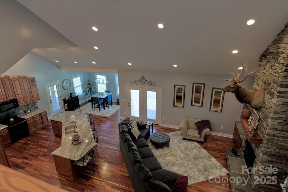 Over 4 1/2 acres and no HOA! A rare gem in Huntersville. Country living at its best. Custom build with high end finishes including gorgeous granite in kitchen and all bathrooms. Brazilian hardwood flooring throughout the main level. Kitchen has large island and custom cabinets with an open floor plan including dining area, living room, stone fireplace with gas logs, built in shelving and high ceilings. Large screened porch beside kitchen for entertaining. Upstairs is a loft area for an office or playroom with storage on either side. One side is already plumbed for a bathroom. Outside is beautiful and private a large deck looking over the wooded backyard with fully stocked pond. Irrigation system, gated entrance. This property also boasts a detached 5 car garage AND a massive steel outbuilding with over 3000 sq ft. Great for office, workshop or auto shop. Building also includes a kitchen, bedroom, flex space and full bath. Parking for boats, RV's, collector cars. Come see this one of a kind custom home and property waiting for your Buyers!