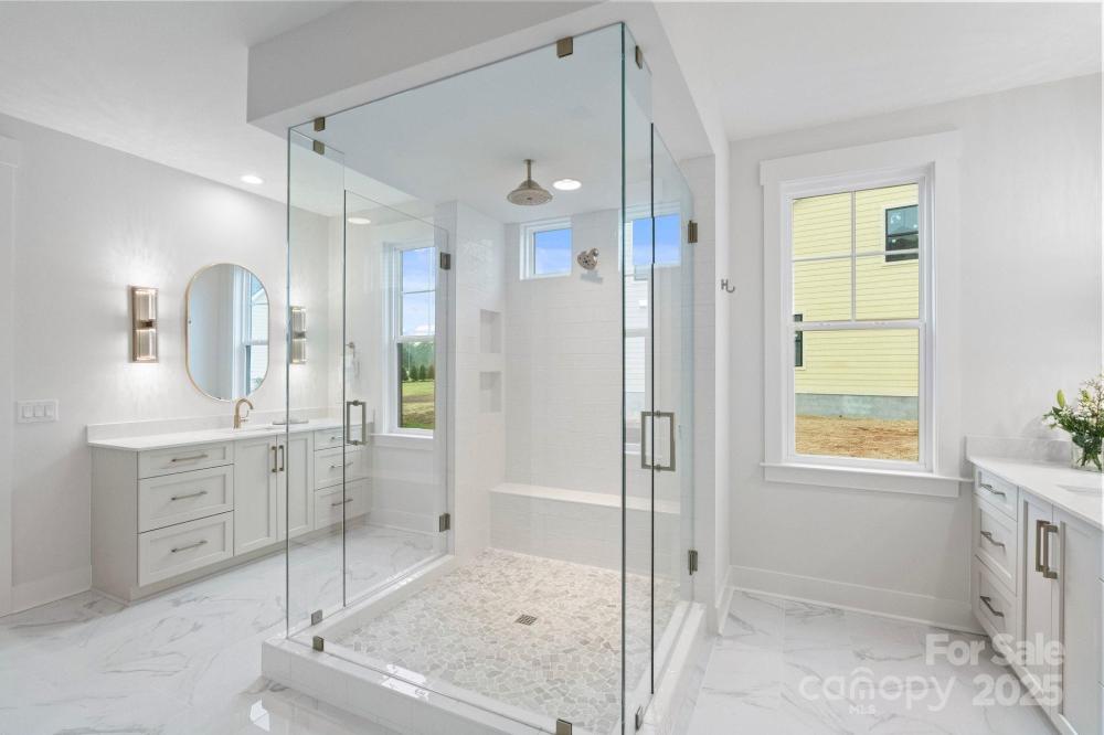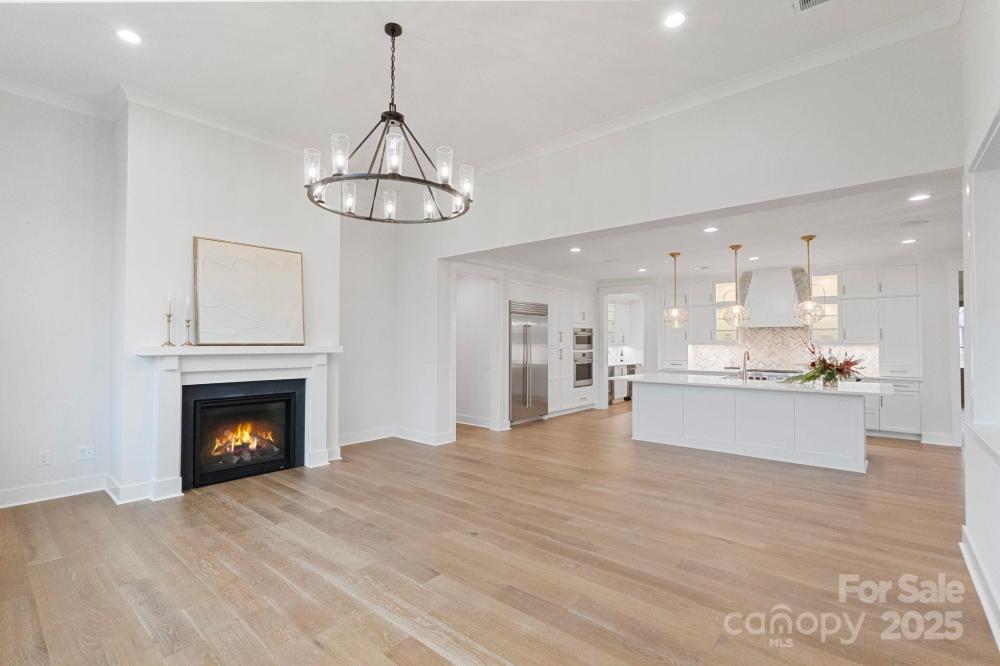 Just completed, custom-built luxury home located in a brand-new upscale neighborhood and featuring the highly sought-after Solana floorplan. This stunning residence is under full builder warranty and has been pre-inspected for added peace of mind. Exceptional craftsmanship is showcased throughout with wide-plank wood flooring, extensive custom millwork including grid accent walls and board-and-batten detailing, and elevated designer lighting. The open-concept layout is ideal for both everyday living and entertaining. The gourmet kitchen includes a Wolf gas range, Wolf wall ovens, Sub-Zero refrigerator, quartz countertops, custom soft-close cabinetry, and a massive center island. A separate scullery adds convenience with an additional sink, ice maker, beverage refrigerator, custom cabinetry, and quartz workspace. The kitchen flows seamlessly to the open dining area and the spacious great room featuring a soaring ceiling and gas-log fireplace. The main-level primary suite offers a cathedral ceiling, a charming seating bump-out, and a spa-inspired bath with a jewel-box shower with rain head, dual vanities, and large custom-built closets. Two additional main-level bedrooms each include private en-suite baths. The upper level features a large recreation room with a custom wet bar complete with a sink, microwave, beverage refrigerator, quartz countertop, and beautiful cabinetry. Two versatile flex rooms offer endless possibilities—perfect for a private office, den, gym, or hobby room. An additional bedroom with its own en-suite bath completes the upstairs layout along with generous walk-in attic storage. Enjoy year-round outdoor living on the covered rear porch equipped with a remote-controlled screen system for instant conversion to a screened space, plus a stone gas-log fireplace and built-in heater for cozy evenings. Located in an upscale newly developed community near scenic nature trails and just minutes from Birkdale Village, this home blends exceptional luxury, thoughtful design, and an unbeatable location.