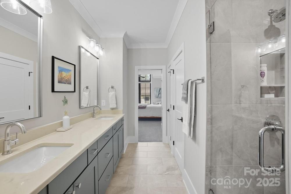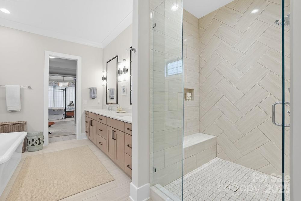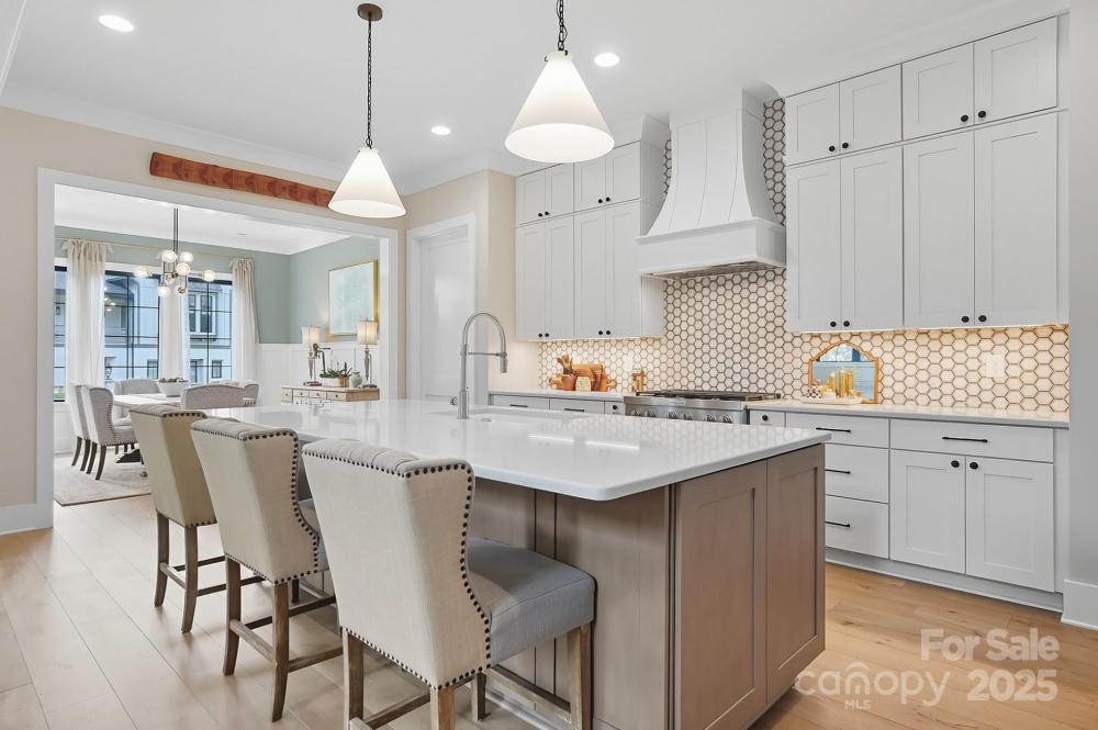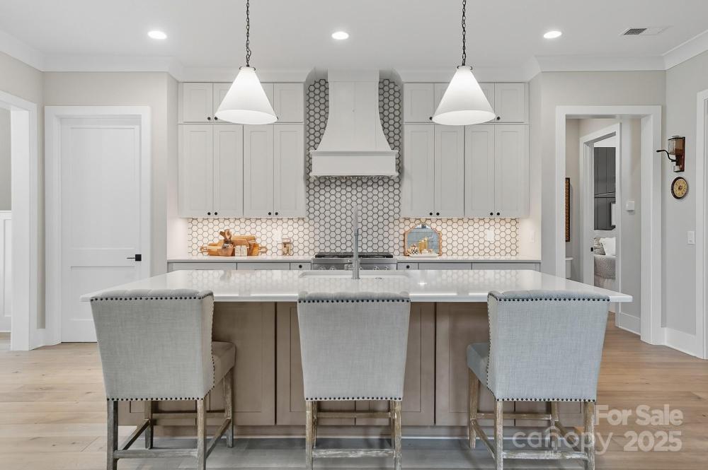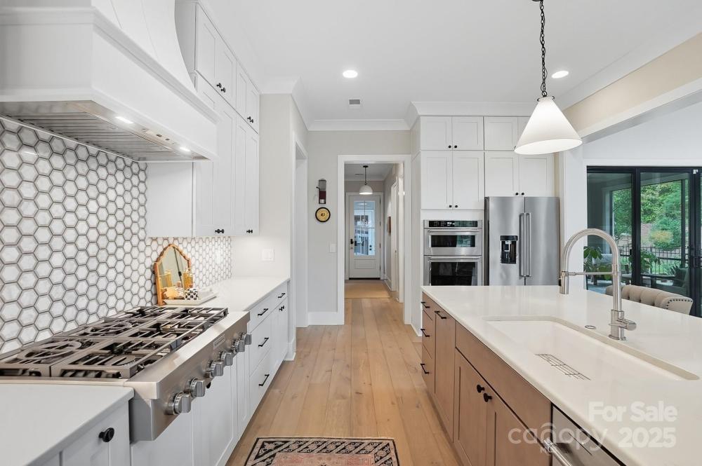 Discover luxurious living in this custom-built masterpiece by Plattner Custom Builders in highly sought-after Narrow Passage, Davidson's premier conservation neighborhood. Designed with impeccable craftsmanship & attention to detail, this lovely "Village Home" is a rare find. Upon entry you'll notice the gleaming European white oak wood flooring leading you to an impressive 2 story great room w/cozy fireplace and abundant natural light flowing seamlessly into your gourmet chef's kitchen, equipped w/high-end SS appliances, quartz countertops, marble mosaic backsplash, custom cabinetry, large island & walk-in pantry. The primary suite conveniently located on the main floor offers a private retreat featuring a sitting area, elegant spa-like bath and generous walk-in closet. Upstairs boasts 3 bedrooms, 2 full baths, large loft/game area, wet bar & home study space. Outside, enjoy the beautifully landscaped corner lot, screened-in back porch w/travertine tile, and fenced-in back yard, the perfect blend of privacy, charm & year-round enjoyment! Additionally, you'll love the detached two-car garage providing parking and ample storage, making organization a breeze! This unique property combines classic appeal with modern comfort- ideal for those seeking a serene space to gather, entertain, and make lasting memories! Close to downtown Davidson, restaurants, shops, LKN and more! MUST SEE!