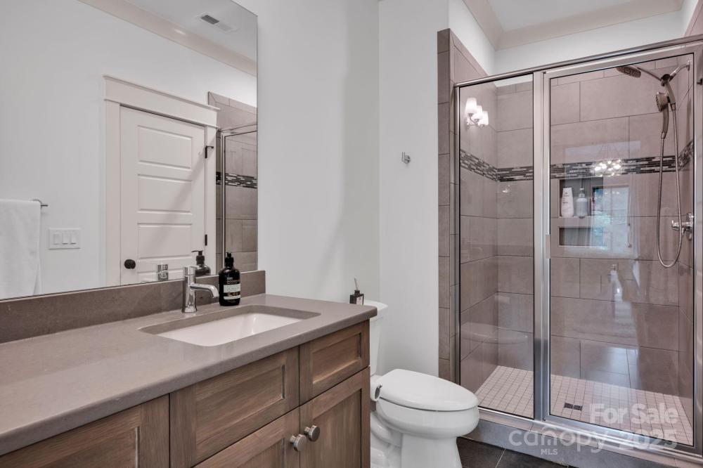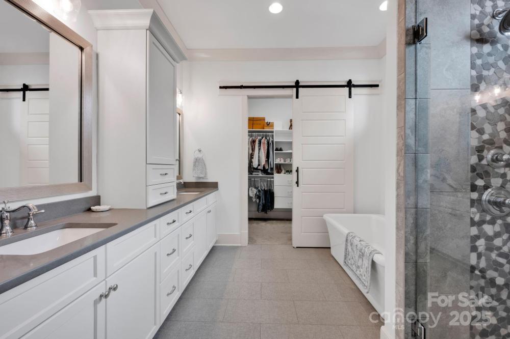 Former Plattner Custom Builders model home in Narrow Passage with recent designer updates made throughout. Bright open floorplan offering an ideal layout suited for today's lifestyle. Beautiful kitchen offers ample storage, prep and cooking space, walk in pantry and separate bar in dining area. Primary bedroom on main level and three additional bedrooms on second level plus office space and large multiuse loft space at the top of stairs. Detached two car side entry garage. (Only side entry garage in this portion of Narrow Passage). Ample driveway space for cars, basketball, etc. Outdoor gathering and entertaining spaces include covered patio off living room, hot tub and lovely fire pit area plus acres of trails and common open spaces throughout the neighborhood. Easy access to River Run Country Club, downtown Davidson, Concord, etc.