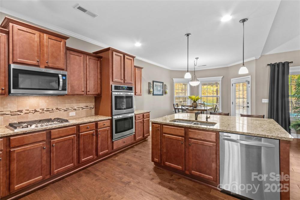 Prepare to fall in love with this stunning full-brick home nestled in the highly desirable Norman Pointe community. From the moment you arrive, the luxury, comfort, and thoughtful design of this property truly shine. Step outside into your own private backyard oasis — an entertainer’s dream. The custom-built bar features a full granite top, under-bar lighting, and a wall-mounted TV, making it the perfect spot for weekend gatherings. A gorgeous custom fireplace, charming pergola, and hammock create an inviting atmosphere beside the San Juan heated saltwater pool (installed in 2021 by Poolscapes of Charlotte), all surrounded by expansive patio space ideal for games, lounging, and celebrations. Inside, the spacious kitchen and great room offer an inviting place to gather, complete with a breakfast area and coffee station. The elegant dining room showcases a coffered ceiling and beautiful millwork, perfect for hosting holidays or dinner parties. A formal living room provides excellent versatility — use it as a sitting room, home office, or creative space filled with natural light. The main-level primary suite is your personal retreat with dual walk-in closets, a large en-suite bath, and a generous separate sitting area featuring a fireplace, wall-mounted TV, and its own full walk-in closet. This space functions beautifully as a private movie area, home office, or nursery. Upstairs features four spacious bedrooms (three with vaulted ceilings), two full bathrooms, and exceptional flexibility. One room functions perfectly as a bonus room, media room, game room, or private guest suite. This home checks every box — luxury, comfort, outdoor living, and room to grow. For a video walk-through of the property, visit: