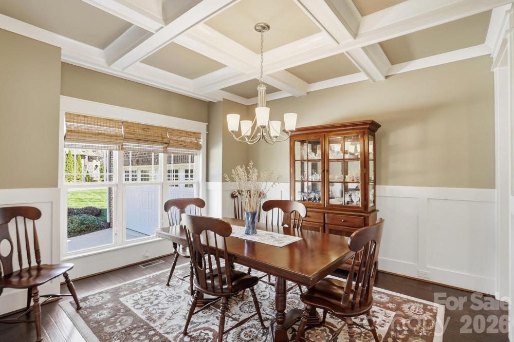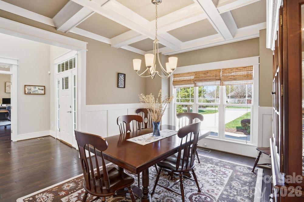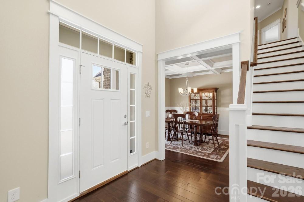 Arrive home to a place where every day feels like a private retreat. This stunning all-brick residence with a 2.5-car side-load garage blends timeless elegance with exceptional outdoor living. A dramatic two-story foyer welcomes you inside, where rich hardwood floors, a private office with French doors, and an elegant dining room with coffered ceiling and wainscoting set the tone for refined yet comfortable living.