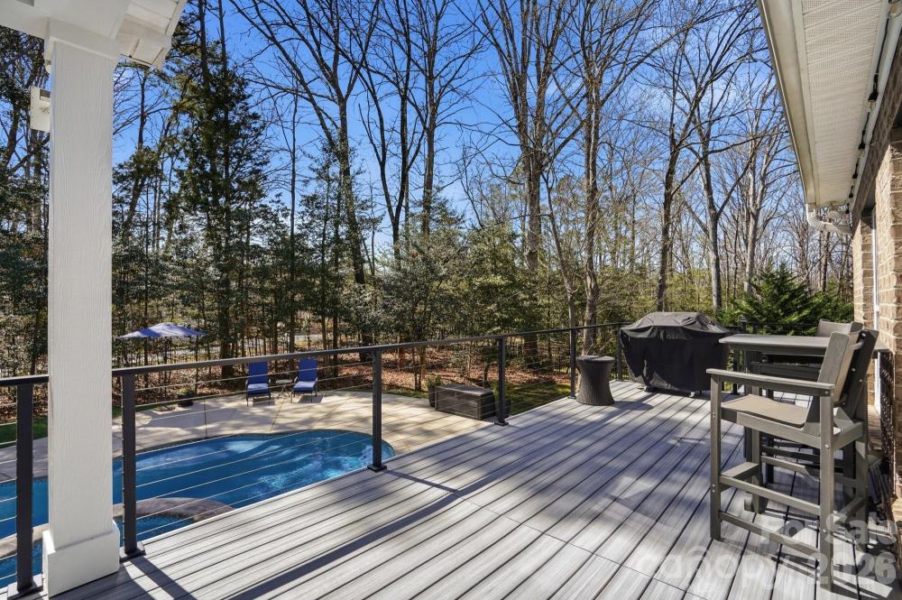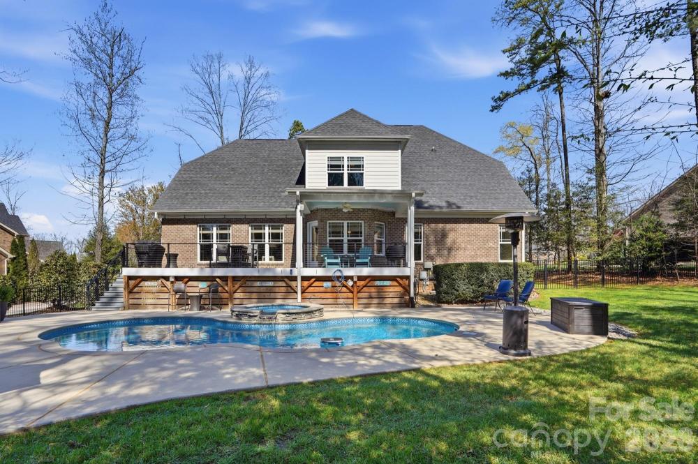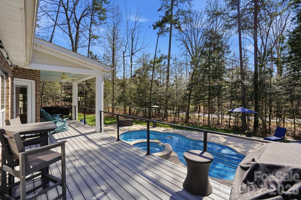 Then step outside and discover the lifestyle that sets this home apart. An expansive deck with modern cable railing and covered seating area stretches across the back of the home, overlooking your exquisite inground pool with integrated hot tub, all framed by a fenced backyard designed for unforgettable gatherings, quiet mornings, and sunset swims.