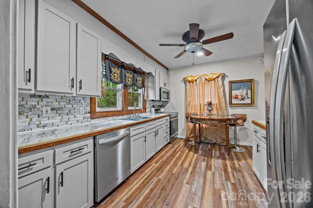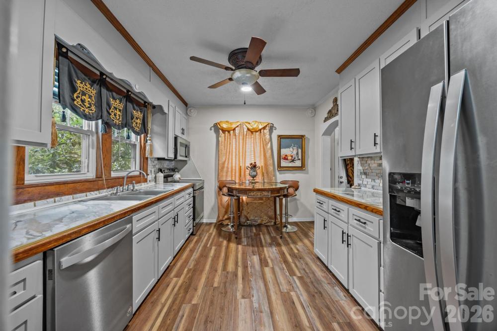 Discover this beautifully updated historic residence in the highly desirable Park Place District, just moments from Childress Vineyards. Set on a lovely corner lot, the home offers a peaceful retreat while being steps from downtown arts, boutique shopping, dining, breweries, concerts, and the annual BBQ Festival. The exterior features a grand marble walkway, stately columns, Tiffany-style lighting, & a stained-glass entry, while interior offers soaring ceilings, original wood floors, era-inspired wallpaper, & energy-efficient block windows. The updated kitchen includes refreshed cabinetry, porcelain countertops, & a marble backsplash, with a deck extending the living space outdoors. Recent updates include a new roof (2021), main-level HVAC (2022), upstairs heat pump (2021), updated electrical & plumbing, newer appliances, washer/ dryer, fresh interior & exterior paint, privacy wall, and landscaping. Historic elegance meets modern living. Sellers offering Home Warranty. Lender Financing Available with Hunington Bank - Craig Lewis.