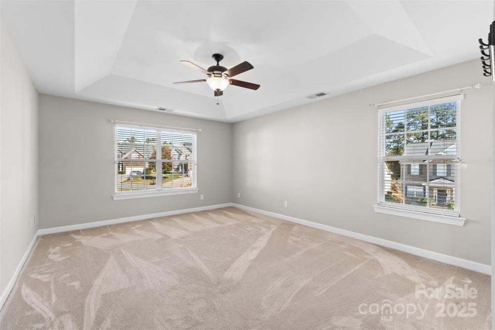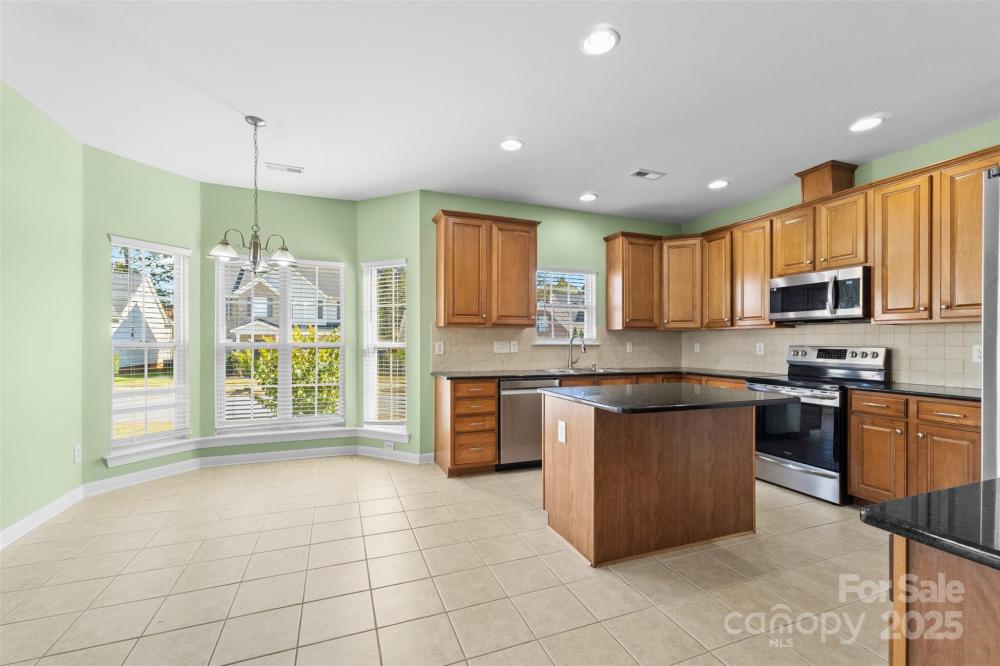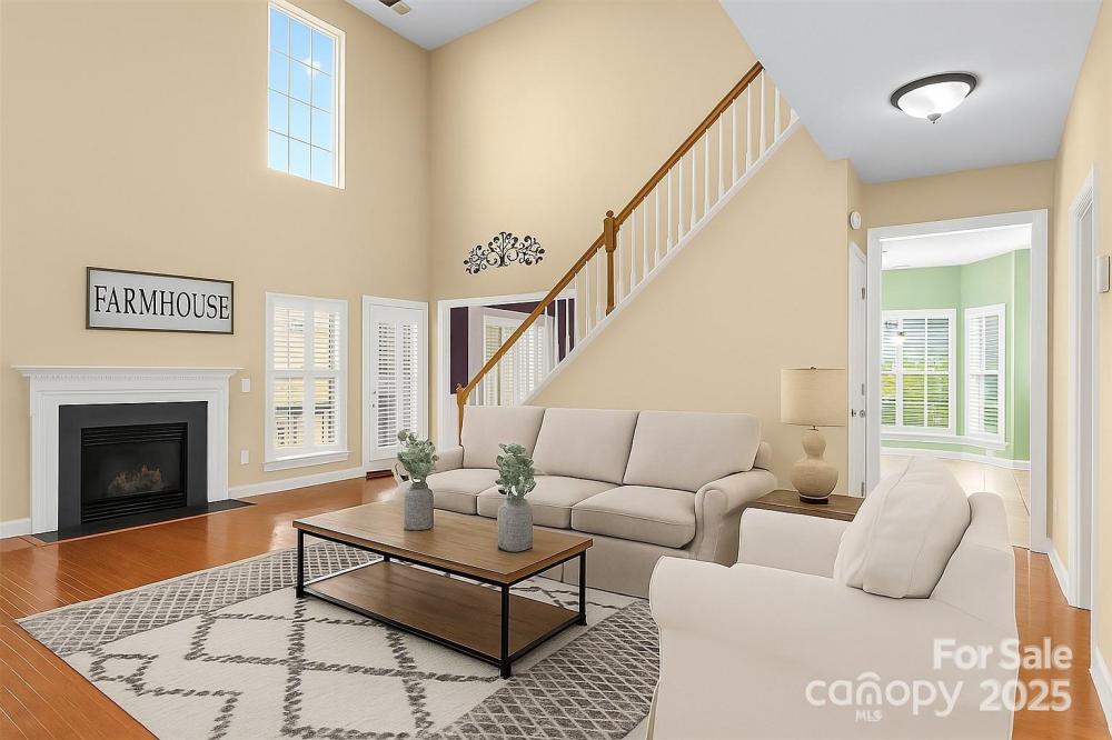 Welcome to this stunning brick corner-lot home, perfectly situated on one of the largest lots in the neighborhood! Inside, you'll discover beautifully flowing LVP flooring and a dramatic two-story foyer and living room filled with natural light. The open floor plan is ideal for entertaining, featuring a dedicated dining room that flows seamlessly into the spacious kitchen, complete with an island, stainless steel appliances, abundant cabinetry and a large breakfast area for casual dining. Cozy up by the fireplace in the inviting living room or enjoy gatherings on the expansive back deck overlooking the level backyard. The main level also offers a full bedroom and bath — perfect for guests or a MIL suite — along with a private office for those who work from home. Upstairs, the light-filled primary retreat impresses with tray ceilings, a large walk-in closet and an en-suite bath featuring a soaking tub and separate shower. Generously sized secondary bedrooms share a full bath, while a versatile flex space provides the perfect spot for a media room, playroom or fifth bedroom. With a new water heater (2024) and HVAC system approximately five years old, this move-in-ready home combines comfort, style and peace of mind!