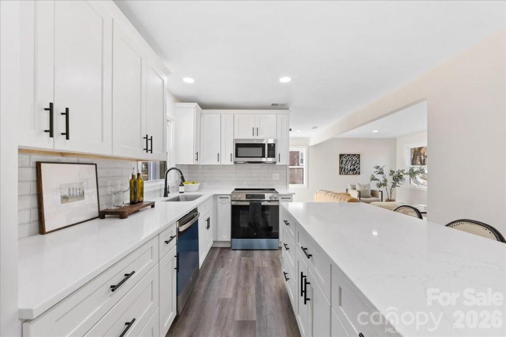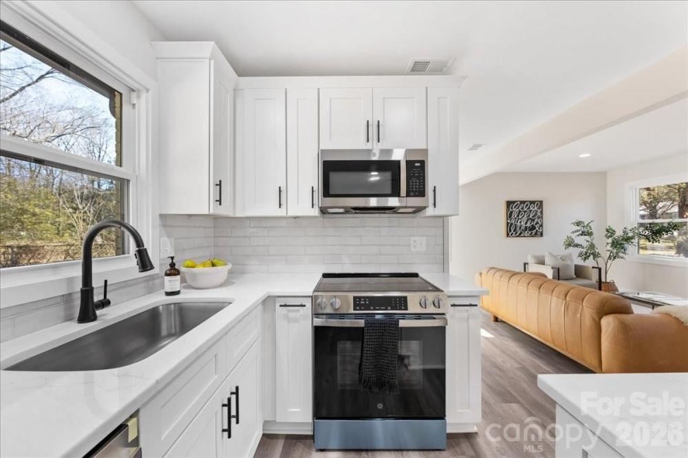 Stunning, move-in-ready home just a short walk from the dining and entertainment in the heart of downtown Matthews, with quick access to I-485. Ideally located near the Mecklenburg County Sportsplex at Matthews and directly across the street from the entrance to the Four Mile Creek Greenway. This impressive home offers a flowing open-concept layout and the rare advantage of two full bathrooms. Major upgrades include a new roof, custom windows, HVAC system, electrical panel, appliances, and a fully renovated interior. Permits were pulled throughout the renovation, providing peace of mind that the work was completed properly and professionally. Please see the attached documents for additional information regarding the E. John Street road widening project and short-term rental requirements. Visit www.matthewsnc.gov for additional details.