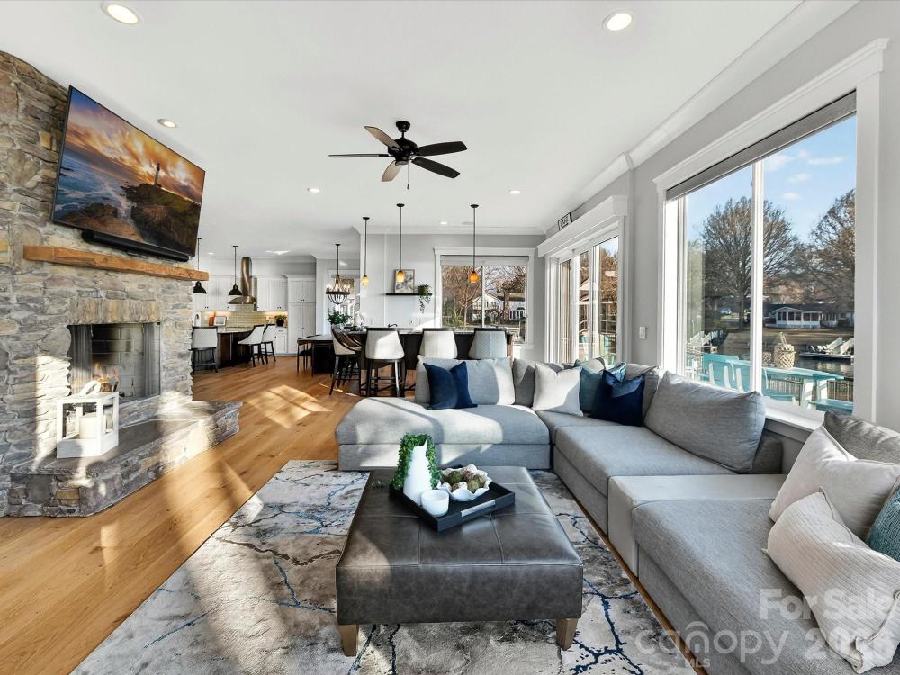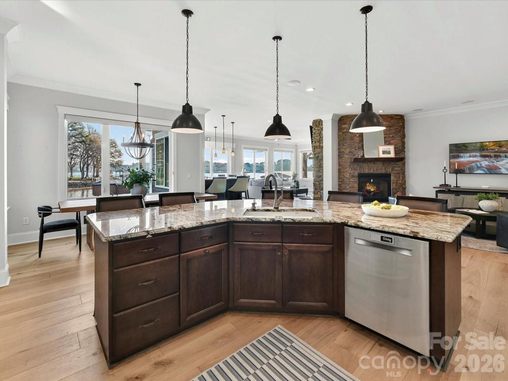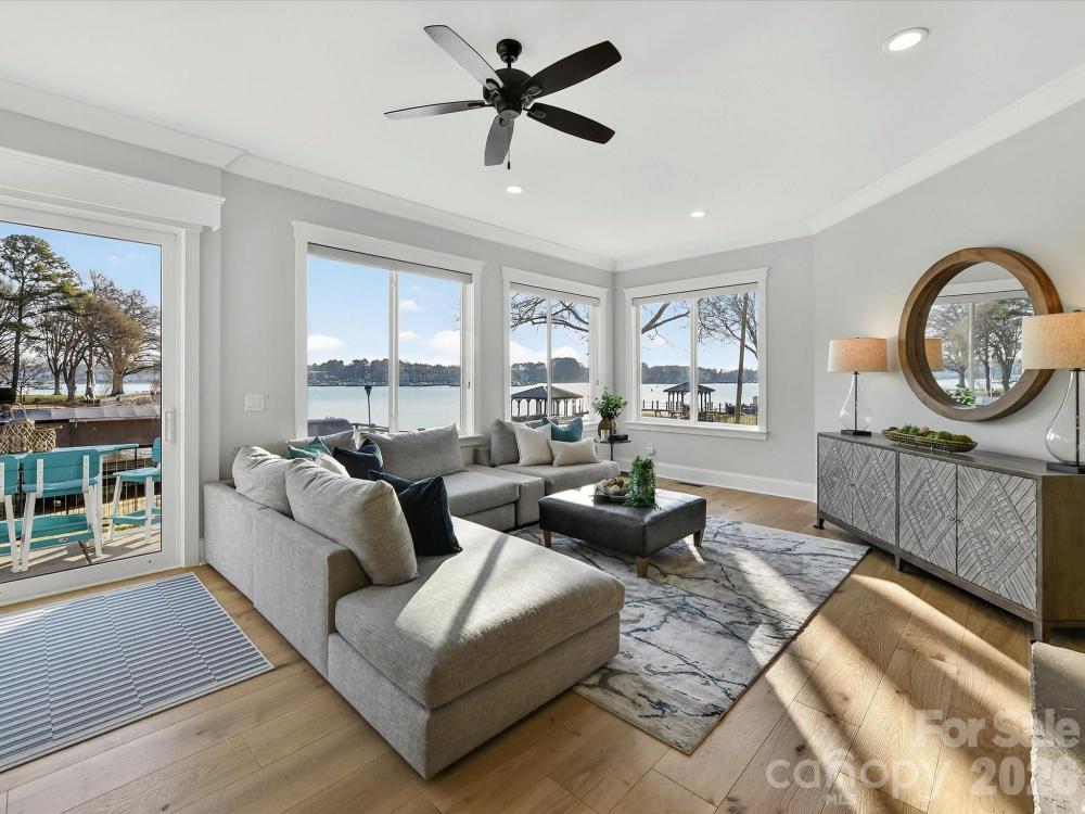 Experience refined waterfront living on Lake Norman in the sought-after Point Largo community, where long-range water views and exceptional amenities create a truly elevated lifestyle. Built in 2017 by Signature Homes, this impressive opulent residence offers over 5,200 square feet of thoughtfully designed living space with five bedrooms and five full baths. The light-filled open floor plan showcases expansive lake views from the main living areas, seamlessly connecting the chef’s kitchen—complete with a large island, induction cooktop, walk-in pantry, breakfast bar, and built-in appliances—to the inviting keeping room with fireplace and a lakeside family room with stone fireplace as well. Sliding glass doors extend the living space outdoors to a resort-style setting featuring a saltwater pool, covered patio, and fenced backyard, all overlooking the serene waters of Lake Norman. The main-level primary suite serves as a tranquil retreat with stunning lake views, a spacious walk-in closet, and a spa-inspired bath with dual vanities and an oversized walk-in shower. Additional living spaces include a media room, game room with dry bar, and flexible bonus areas ideal for recreation, guests, or working from home. Completing this exceptional property is a private dock with boat slip, boat lift, floating dock, and personal watercraft lift, along with access to the community’s private beach—offering the ultimate opportunity to enjoy boating, swimming, and lakeside relaxation. Ideally located in Cornelius near premier shopping, dining, and everyday conveniences, this remarkable home blends luxury, comfort, and breathtaking waterfront scenery.