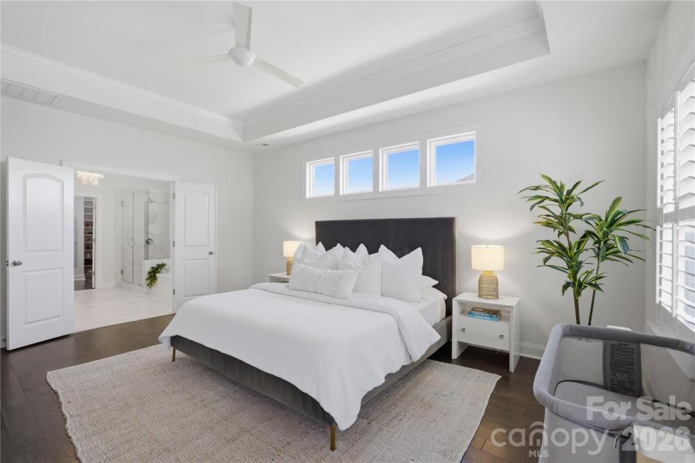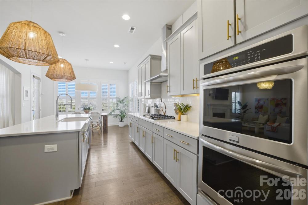 It’s got style, it’s got class! This Charleston-inspired home is calling you home. Located in the highly sought-after Vermillion neighborhood, residents enjoy two community pools, a playground, walking trails, its very own neighborhood restaurant, Harvey's, & wonderful neighbors who make this community feel special. Built in 2018, this home features two charming front porches and a cozy back patio that’s perfect for relaxing and enjoying spring sunsets. Step inside and you’re welcomed by tall ceilings, an open floor plan, and a beautifully designed kitchen. The kitchen features quartz countertops, a farmhouse sink, gas cooktop, Frigidaire double oven, and a chef’s pantry—perfect for cooking and entertaining. The kitchen opens seamlessly to the living room, which features a gas fireplace and breakfast nook, creating a warm and inviting space for gatherings. Just off the front door is a versatile flex room that could easily be used as a playroom, dining room, or home office. This home also includes plantation shutters throughout and whole-home surround sound with Bluetooth capability. On the main floor, you’ll find one bedroom and a full bathroom, perfect for guests or multi-generational living. Upstairs, the spacious primary suite features an en-suite bathroom with a garden tub, walk-in shower, and custom built-in closet system designed to keep everything organized. The upper level also includes three additional bedrooms, with one currently set up as an incredible movie room featuring a 140-inch projector screen and surround sound—perfect for movie nights at home. Located just minutes from shopping, dining, and everything Huntersville and Lake Norman have to offer, Vermillion is known for its vibrant community atmosphere and beautiful streetscapes. Whether you're enjoying time on the front porch, hosting friends and family, or taking advantage of the neighborhood amenities, 12516 Es Draper Dr offers the perfect blend of comfort, charm, and community living.