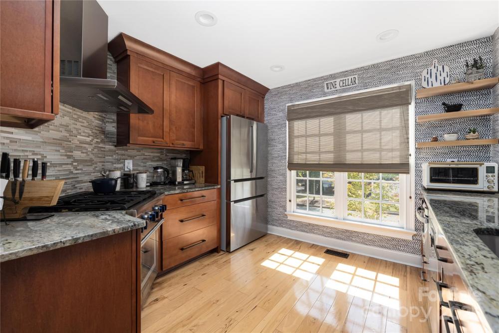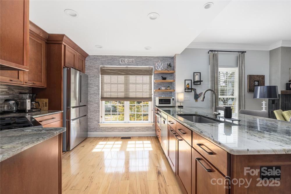 Modern Comfort Meets Classic Character in This Move-In Ready Gem! This stunning, fully upgraded 3-bedroom, 2-bath residence radiates character inside and out. From the moment you arrive, you'll be captivated by the charming front porch and meticulously designed landscaping with mature trees, vibrant flower beds and custom stone work that create a welcoming and tranquil outdoor oasis. This home offers three generously sized bedrooms, each with ample closet space, making it perfect for families or guests. There are two renovated bathrooms, which feature stylish fixtures, custom tilework, and spa-inspired touches for an added sense of luxury. Every detail throughout the house has been thoughtfully updated, including hickory hardwood flooring, fresh paint, and custom lighting that enhances every room. The chef’s kitchen is a true highlight, equipped with a Thermador gas range, Bosch refrigerator and dishwasher, stainless hood, granite countertops, custom cabinetry, and a spacious breakfast bar that is ideal for entertaining. The open-concept living and dining areas feature a custom built-in buffet, a cozy fireplace with walnut mantle, and large windows that flood the space with natural light. The serene owner’s suite features a fully-remodeled bath with dual vanities, a low-entry shower, and designer finishes for relaxation and comfort. Outdoor living is easily enjoyed with an expansive patio surrounded by professionally landscaped gardens and cedar privacy fencing. Every upgrade has been made with comfort and style in mind, ensuring a move-in ready experience for the next lucky owner. Whether you’re hosting gatherings in the open living spaces, enjoying quiet mornings on the patio, or unwinding in your luxurious master suite, this property offers the perfect blend of elegance and functionality. Don’t miss your chance to own this one-of-a-kind, upgraded home with unparalleled landscaping and curb appeal! Single-story homes of this size with a garage do not come around often in Vermillion. Vermillion is more than a neighborhood; it’s a vibrant community. Experience two sparkling pools (with one just three blocks away), a flourishing community garden, a playground, walking trails, abundant greenspaces, a welcoming restaurant and a future Mecklenburg County greenway connecting you to Downtown Huntersville. Here, every amenity has been curated for comfort, connection, and quality living.