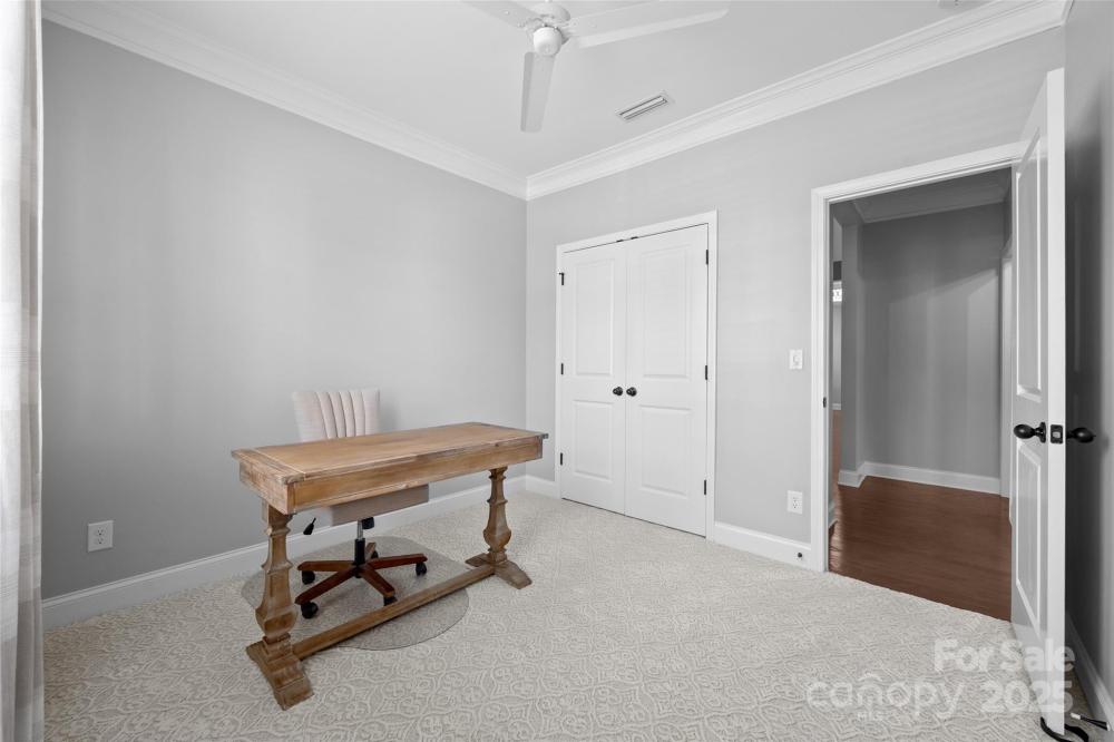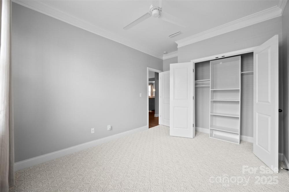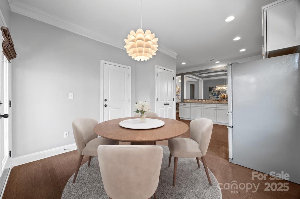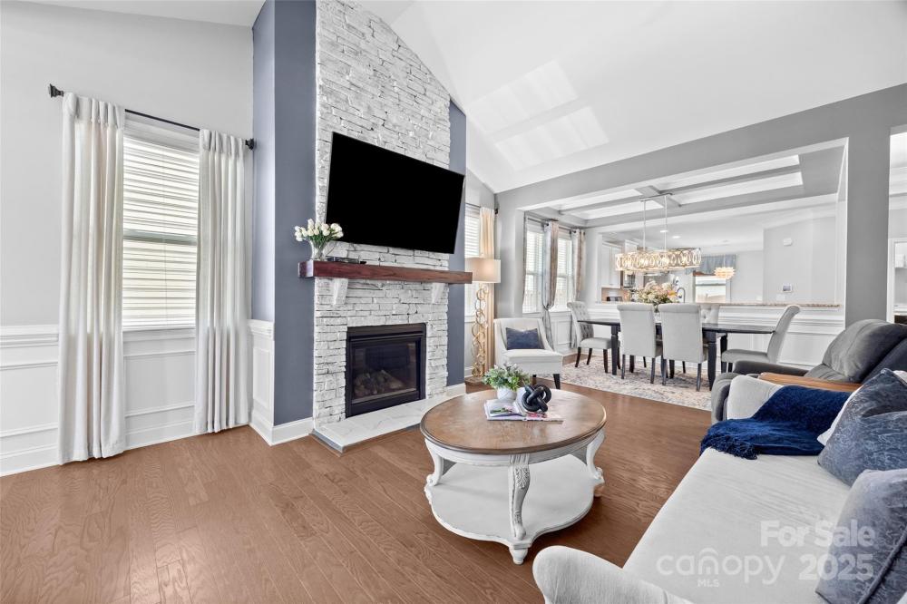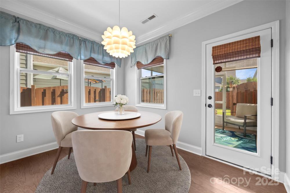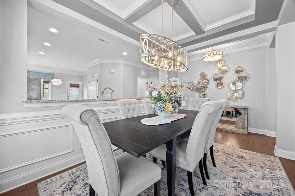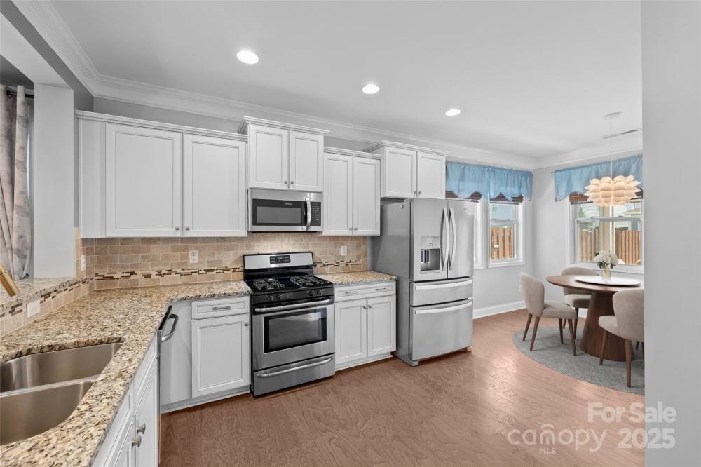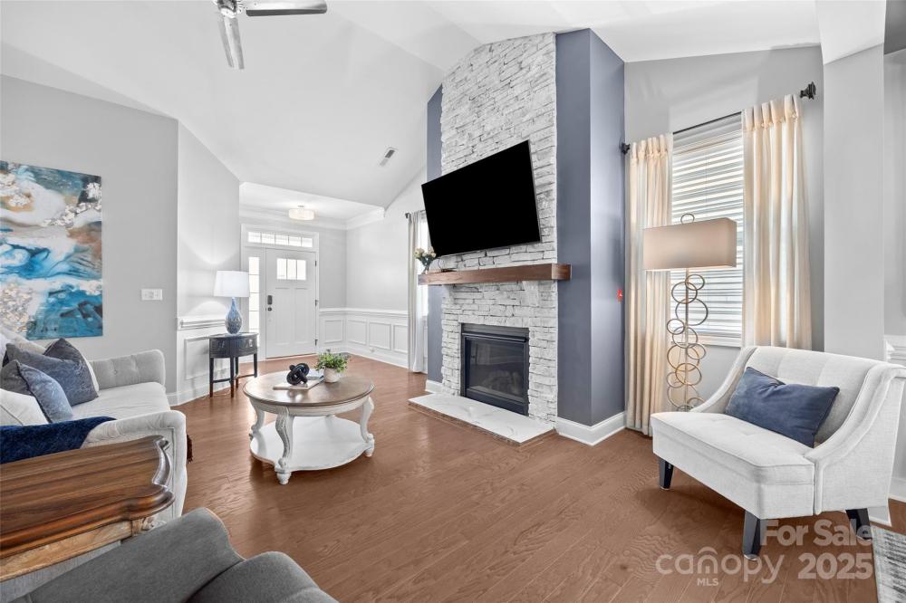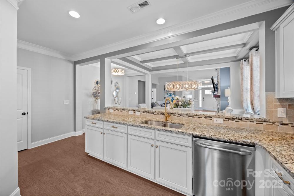 This picturesque, ranch home in the Arbormere community is sure to impress you with it's stunning designer details - a vaulted great room centered by a stacked stone gas fireplace, a coffered dining room ceiling, upgraded lighting, crown molding throughout, and custom closets and fans in all bedrooms! You are welcomed in from a rocking chair front porch onto hardwood floors that run throughout the common areas. The open floor plan provides tons of natural light and the the ideal layout for entertaining. The kitchen boasts gas cooking, stainless steel appliances, cabinet pull outs, double door pantry, granite counters, and more. The breakfast area looks into a serene screened porch with roller shades, and a fully fenced and private backyard (with hidden trash can area). The elegant primary suite has a tray ceiling, luxury carpet (in all 3 bedrooms), and a remodeled bathroom to include an extra large walk-in shower with tile detailing, double sinks, water closet, and a linen area. The 2 secondary bedrooms provide flexibility, and additional updated full bathroom has a granite counter. The 2 car garage includes details such as epoxy floors, finished walls, and extra storage space. And the home has a security system that features Ring doorbell, several cameras, and a smart thermostat and garage door opener. The Arbormere community amenities include an outdoor pool, playground, green spaces, and sidewalks, and is located just minutes from Lake Norman, shopping, the Novant hospital, and top rated dining - Welcome Home!