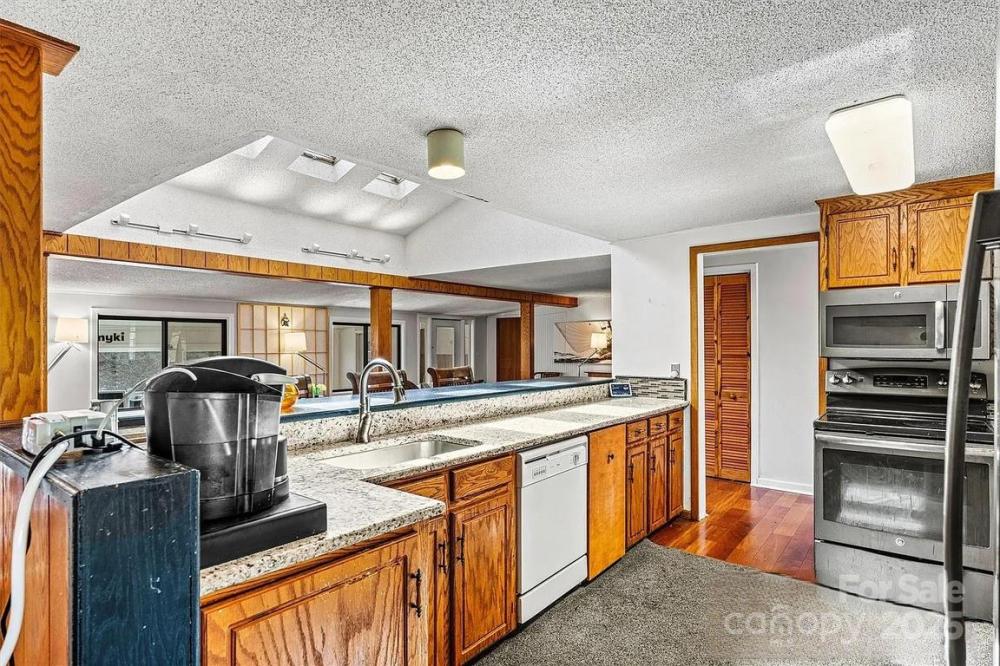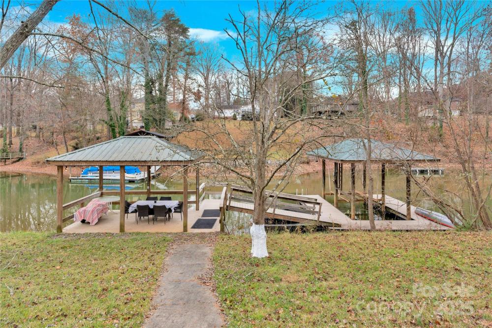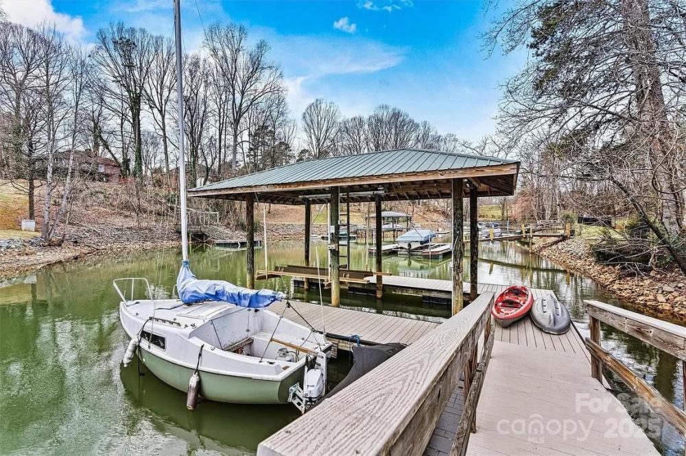 A rare Lake Norman property offering three separate living quarters on the lake. The main home offers a full kitchen, 2 bedrooms, and 1 bath, while two additional studio-style units each include their own kitchen and share a laundry room—totaling 4 bedrooms and 3 full baths. Interior features include ¾-inch cherry hardwood floors, a sunroom/flex room, and a large garage with built-in tool storage. Waterfront amenities include a covered dock, covered floating dock with an 8,000-lb electric boat lift, and a private boat ramp. A rare Lake Norman opportunity with multi-use potential.