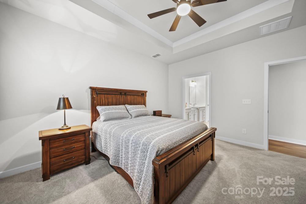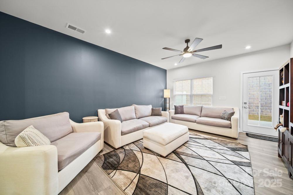 This beautiful townhouse in Denver, NC, is move-in ready! The kitchen features quartz countertops, a stylish blue tile backsplash, an island with w/additional seating, a gas range & a walk-in pantry. A beautiful coffee/wine bar has been built, with matching cabinets like the kitchen. The open layout flows from the kitchen to a dining area & a separate living room with access to the covered back patio—perfect for relaxing or entertaining. A tray ceiling & custom-designed walk-in closet highlight the main-level primary suite. En-suite bath includes a walk-in shower. A convenient half bath & laundry room complete the main level. Washer and dryer included. Upstairs, find a dedicated office or study, two additional bedrooms & a full bath—ideal for guests, family, or flexible living arrangements. Enjoy all that Rivercross has to offer with w/amenities that include a clubhouse, fitness center & outdoor pool—low property taxes.