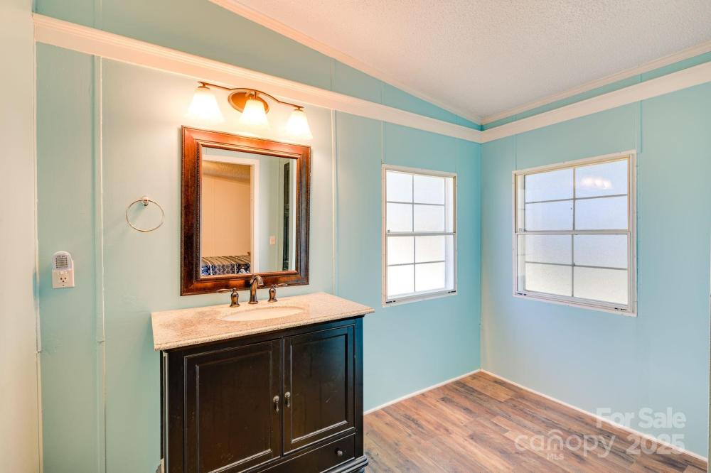 Do not miss your opportunity to enjoy country living in this beautifully updated home. The open floorplan highlights plank flooring throughout, complemented by a modern kitchen with sleek black cabinets. The spacious primary bedroom includes an oversized bath with a custom granite vanity and a walk-in closet. The split floorplan offers generously sized secondary bedrooms, while the secondary bathroom features an updated white shaker vanity. Enjoy your large front and back yards in a quiet community with convenient access to Hickory, Maiden, Lincolnton, and Newton.
