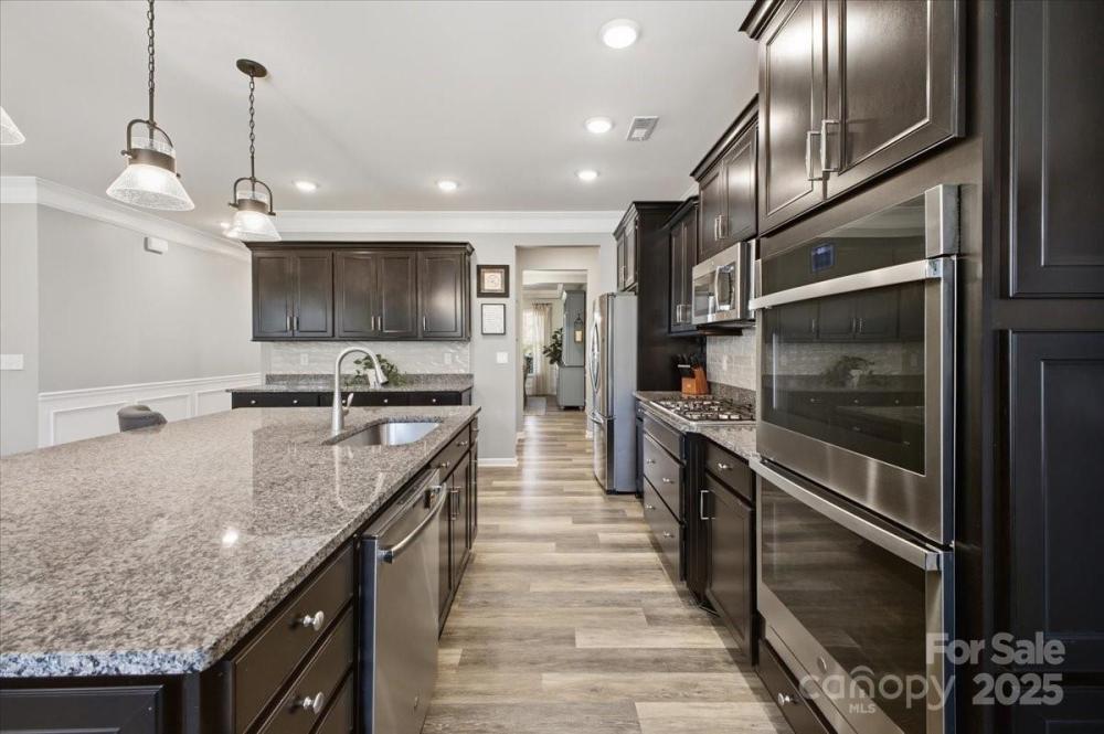 Welcome to 5333 Pembrey Drive, a stunning modern ranch style retreat in the heart of Denver, NC. This spacious home boasts a well-designed living space, featuring 4 generous bedrooms and 3 luxurious bathrooms, perfectly crafted for comfort and style. As you step inside, you're greeted by an inviting open floor plan with custom touches at every turn, including exquisite custom moldings and elegant butler's pantries that add sophistication and practicality. The designer kitchen is a chef's dream with granite countertops, a gas cooktop, and a double wall oven for all your culinary creations. Tray ceilings and a cozy gas fireplace add an extra touch of elegance and warmth to the living and dining rooms. The outdoor space is truly a backyard oasis. Imagine enjoying your mornings on the covered, screened-in porch overlooking a sparkling gunite, heated, salt-water pool, beautifully surrounded by hardscaping. The extended driveway provides ample parking, while the landscape uplighting adds a magical glow in the evenings. Host weekend gatherings in the outdoor kitchen or simply relax and unwind in this serene setting. A convenient shed provides additional storage for all your outdoor essentials. Set on a spacious .39 acre lot, there's plenty of room for outdoor activities and gardening. With smart home features like a doorbell camera, remote access front door lock, and thermostat, this home combines modern conveniences with charming details. Home also boast walk-in attic space for extra storage. Don't miss the chance to make this exceptional property your new home.