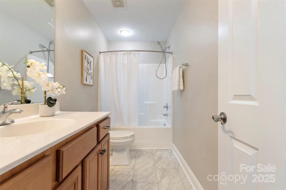 Welcome Home to this amazing and beautifully established neighborhood. The rocking chair front porch welcomes you into this move-in ready home with all new paint, roof and carpet (Oct-Nov 2025) A beautiful highlight of this home is the floor to ceiling stone fireplace that captures your eye as you enter the front door. Light and bright with tons of windows, this open concept and split floor plan with 9' ceilings, meanders through the living room into the dining room. The large kitchen with island and breakfast area offers plenty of 42" cabinets, under cabinet lighting and custom panty. The sunroom overlooking the private, fenced backyard is perfect for morning coffee or home office. A storage building in the newly sodded backyard is perfect for lawn equipment or extra storage. The oversized primary suite is complete with a window seat offering extra storage and walk-in custom closet. Upstairs are two large bedrooms, each with custom closets, full bath and walk-in attic with tons of storage space. Salem Springs is conveniently located between highways 16 and 73, 1/2 mile from Cowans Ford County Club, close to Lake Norman, 30 min to Charlotte Douglas Airport and uptown Charlotte. Plenty of grocery shopping and dining opportunities within 10 minutes, Birkdale 15 minutes.