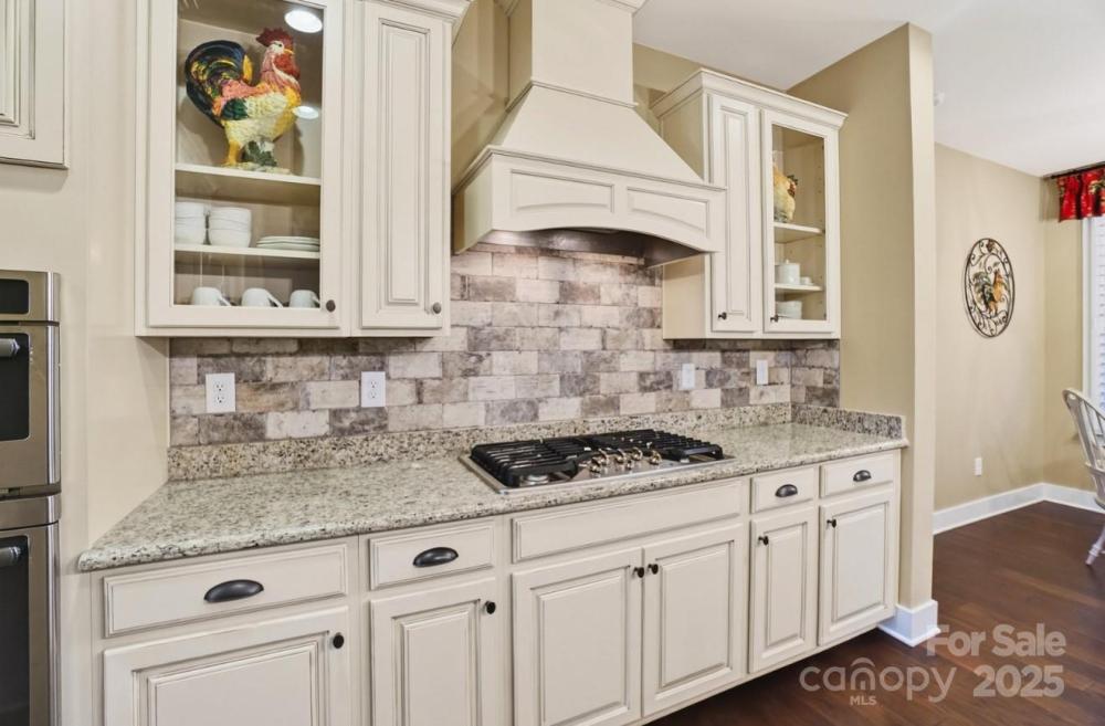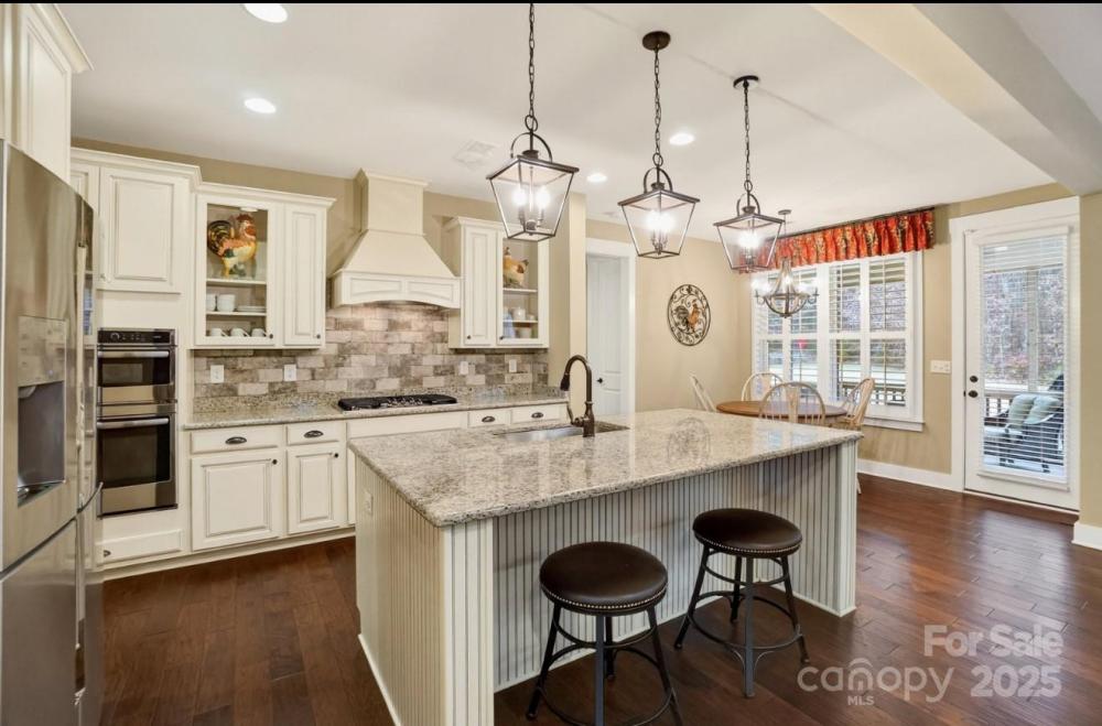 The spacious great room features a fireplace with a raised hearth and is framed by plantation shutters that continue into the charming breakfast area. The kitchen shines with stainless appliances, granite countertops, upgraded cabinetry, and a functional layout designed for both everyday living and memorable entertaining.