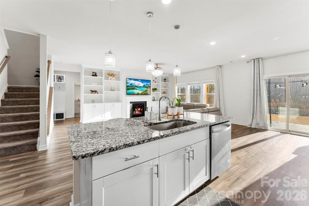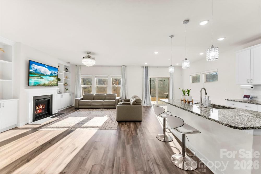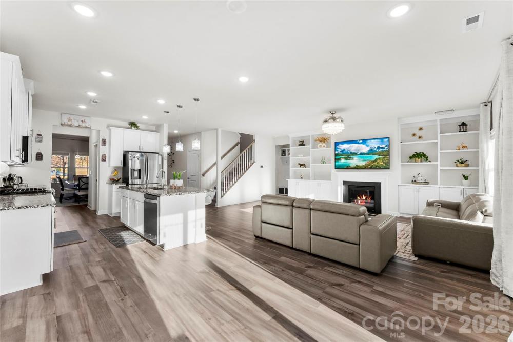 Welcome to this beautifully maintained 5 bedroom, 3 full bathroom home in Stoneybrook Station that truly has it all. Enjoy relaxing on the inviting front porch before stepping inside to a tall, light-filled foyer with a formal dining room just off to the right. The home opens into a seamless main living area filled with abundant natural light, creating a bright and airy feel throughout. The living room features custom built-in shelving and cabinetry surrounding a gas fireplace that adds charm, character, and functionality to the space. Tucked between the dining room and kitchen, the butler’s pantry provides additional prep space and storage, making entertaining and everyday living more efficient. The main level also includes a bedroom and full bathroom, ideal for guests or a home office. Upstairs, a spacious loft offers a thoughtfully designed layout, with the primary suite positioned on one side for added privacy and three additional bedrooms on the opposite side. One of the additional bedrooms is currently set up as a movie theater room. The primary suite features an oversized walk-in closet complete with built-in shelving and drawers. The oversized laundry room offers ample space for storage and organization. Step outside to a peaceful backyard retreat that backs up to a reserved green space and mature trees, creating a natural buffer and privacy. Small garden at the rear of the property featuring apples and peaches. Conveniently located close to downtown Huntersville, shopping, and dining. This home offers the perfect balance of comfort, space, and location.