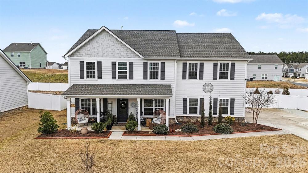 Situated on a spacious corner lot in Stratford, this beautifully maintained two-story home offers over 3,400 square feet of thoughtfully designed living space with five bedrooms and four full baths. Built in 2019, the home blends modern finishes with a highly functional layout and an abundance of upgrades throughout. A welcoming front porch sets the tone, leading into an open-concept interior highlighted by rich wood flooring, custom built-in features, and exceptional natural light. The main level is designed for both comfort and flexibility, featuring a full bedroom and full bath—ideal for guests, multigenerational living, or a private home office—alongside a spacious family room with an electric fireplace that flows seamlessly into the dining area and kitchen. The kitchen is truly the heart of the home, appointed with granite countertops, white cabinetry, stainless appliances including a gas range, a large center island with seating, and an impressive walk-in pantry that provides outstanding storage. A bright breakfast area overlooks the backyard and opens to a screened porch, creating effortless indoor-outdoor living. Beyond the porch, an extended patio and pergola offer additional entertaining space—perfect for gatherings, grilling, or relaxing evenings outdoors. Upstairs, the expansive primary suite serves as a private retreat with room for a sitting area and a luxurious en-suite bath featuring dual vanities, a large tiled shower with glass enclosure, and generous storage. Three additional bedrooms, two full baths, a versatile loft, and an upper-level laundry room provide space and convenience for everyday living. Additional highlights include a three-car side-load garage with tandem space, privacy fencing, zoned natural gas heating and cooling, abundant walk-in closets, and multiple storage options throughout.Residents enjoy neighborhood amenities including a pool, playground, picnic area, and sidewalks, enhancing the sense of community. With upgraded finishes, flexible living spaces, extensive storage, and exceptional outdoor entertaining areas, this home offers the perfect balance of style, comfort, and functionality.