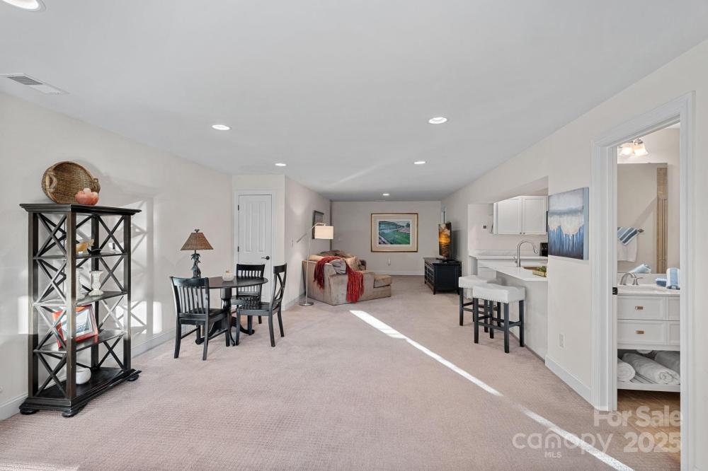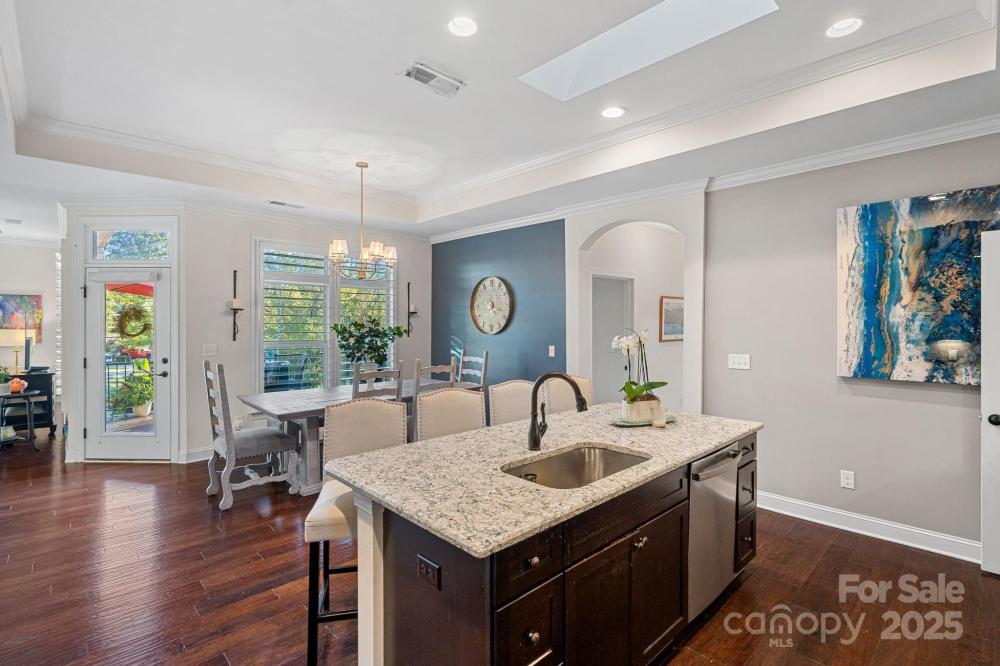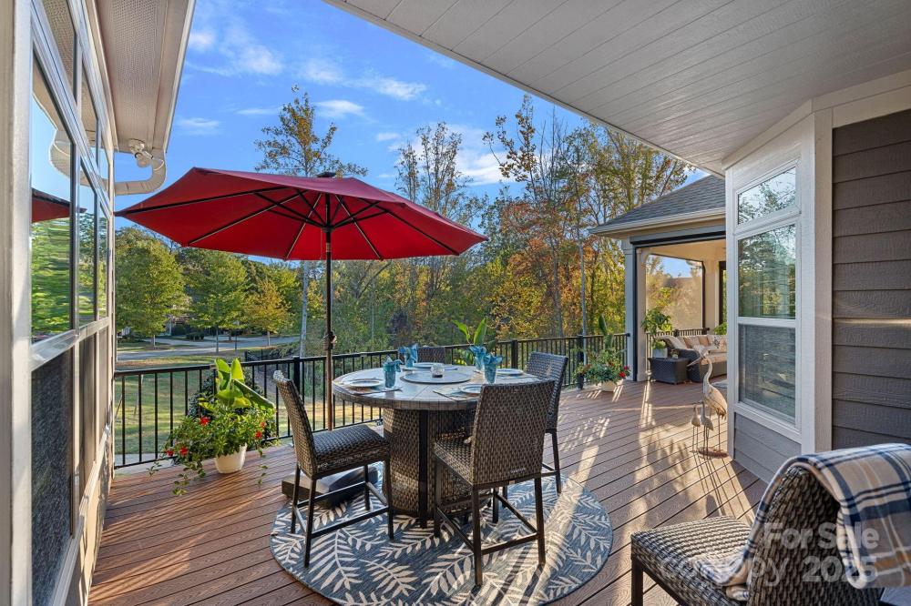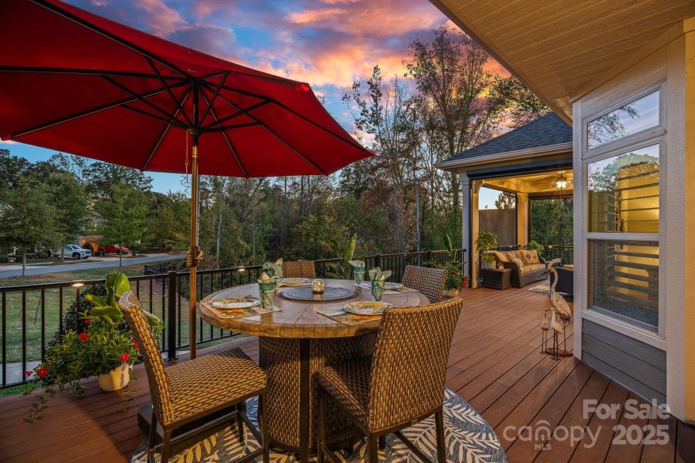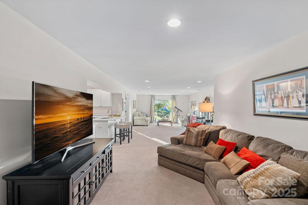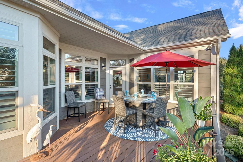 With a private, fully-equipped and functional lower level second living quarters AND magnificent SUNSET views, this exceptional home offers a combination of functionality, comfort and beauty. Perfectly situated on one of the most desirable lots in this 55+ community of The Courtyards of Huntersville, the property enjoys unmatched privacy with no home directly across the street or to the side and is quietly tucked away at the back of the intimate neighborhood. A major highlight is the thoughtfully designed LOWER LEVEL SUITE, ideal for multigenerational living or guests. This private space has its own exterior entrance and includes two living areas, a dining area, a full kitchen with new quartz countertops and sink, full-size appliances and an oversized pantry. The suite also features a spacious bedroom with a walk-in closet and pond views, a full bath with a new vanity, stackable, full-size washer and dryer, and a private patio overlooking a tranquil reflection pond and water feature. The main level is filled with natural light thanks to the absence of an adjacent home, as well as skylights in the kitchen and primary bath. The layout includes a welcoming foyer, a sunroom/home office, living and dining rooms, a spacious kitchen, laundry room, and a full guest bath, along with a primary suite and an additional guest bedroom. An upgraded kitchen boasts quartz countertops, a subway tile backsplash, a new range and dishwasher, and a pantry cabinet with pull-out shelving. The optional sunroom/office features a custom built-in desk with a quartz countertop, lockable drawers, storage, slide-out printer trays, and a built-in bookshelf—perfect for working from home. An enhanced laundry room includes upper and lower custom cabinetry with glass doors, a deep sink, subway tile backsplash, and a built-in beverage refrigerator creating a fully functional mini beverage bar. Both main-level baths have been updated with new quartz countertops, deep sinks, and faucets. The primary bedroom is a true retreat, complete with a spacious Closets By Design custom closet system and direct access to a screened and covered deck area. A new screened porch off the primary bedroom features two custom retractable screens, and elegant plantation shutters with dual control have been installed throughout the home. A maintenance free, elevated deck with multiple seating and dining spaces, spans the side of the home and overlooks a natural area where breathtaking sunsets will be enjoyed. The two-car garage offers epoxy-coated, non-skid flooring and a convenient wall-mounted vacuum unit. Pull down garage stairs leads to an incredible amount of storage above the garage. Five ceiling fans have been added in living spaces and bedrooms. The home's exterior was freshly painted in 2025 and features an attractive combination of fiber cement and stone. The community offers a wide range of amenities, including a clubhouse for social events with a full kitchen, fitness facility, and swimming pool. Sidewalks and streetlights, natural areas, extensive landscaping and pond add to the neighborhood’s charm. The HOA maintains all landscaping (except private courtyards) and the exteriors of the homes so homeowners only need an HO6 insurance policy. Two kitchen refrigerators, beverage refrigerator and two washer and dryers are included. Easy access to Beatties Ford Road, Gilead Road, Hwy 73 and I77, Birkdale, Blythe Landing, Jetton Park, Marinas, Shopping and Dining. In close proximity to hospitals/medical centers. The Courtyards of Huntersville homes are classified as condos by the Town of Huntersville but live like single family homes.