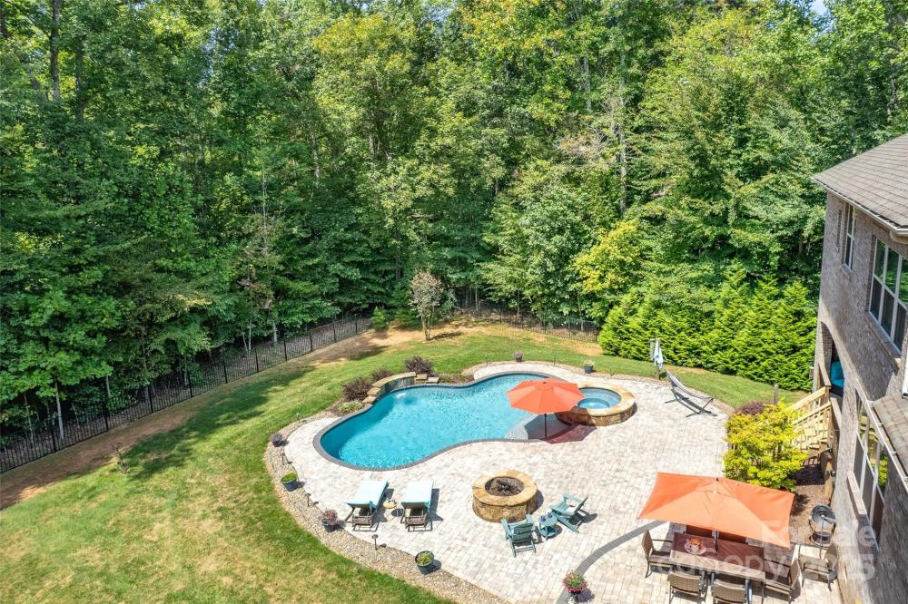 Imagine stepping into your own private retreat every day!! This spacious full-brick home, set on a generous .9-acre lot, blends casual comfort with outdoor living at its finest! The centerpiece is the backyard oasis: a sparkling pool and spa framed by a large paver deck, perfect for summer swims, poolside lounging or soaking in the spa on cool autumn nights! Fire up the outdoor grilling station for casual dinners, then gather around the firepit as the stars come out—this is the kind of space where memories are made! Inside, the home is warm, welcoming, and designed for everyday life. The main-level great room features a fireplace with a striking reclaimed wood wall, creating a cozy focal point for movie nights, game nights, or simply relaxing with a book. The bright white kitchen, complete with a huge island and stainless steel appliances, invites family and friends to gather, whether for cooking together or enjoying casual meals. A large office with an extra-wide barn door offers a stylish and functional work-from-home space, while a lower-level bedroom with a private bath adds flexibility for family or guests! Upstairs, the primary suite is a peaceful escape, featuring a bath with a soaking tub and separate shower. Four additional bedrooms provide ample space for family, with two connected by a Jack-and-Jill bath and another with its own en suite. The extra-large bonus room, with a back staircase leading to the kitchen, creates endless possibilities for a media room, playroom, or creative space. Practical touches abound, including a three-car garage, upstairs laundry, and plenty of storage, making everyday life effortless. The location is unbeatable—close to shopping, dining, and with easy access to Charlotte and the airport—yet the home feels like a world away, tucked into a peaceful setting designed for both activity and relaxation! This is more than a house—it’s a lifestyle! Swim, entertain, cook outdoors, cozy up by the firepit, or relax in the spacious living areas. Every corner is designed for casual living and making the most of your time with family and friends. From quiet fall mornings on the covered front porch to lively summer pool parties, this home delivers the perfect balance of comfort, fun, and outdoor enjoyment!