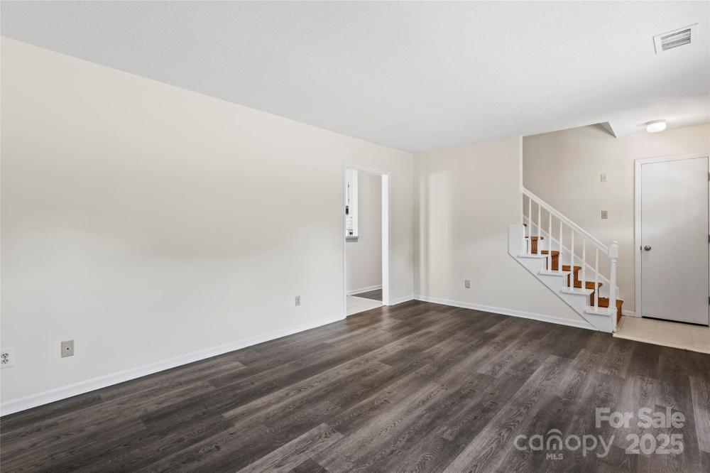 The interior features a new HVAC system installed in 2023, as well as new LVP flooring and fresh paint throughout. The kitchen has been updated with new countertops, a farmhouse sink, and new stainless steel appliances, including a range and dishwasher.