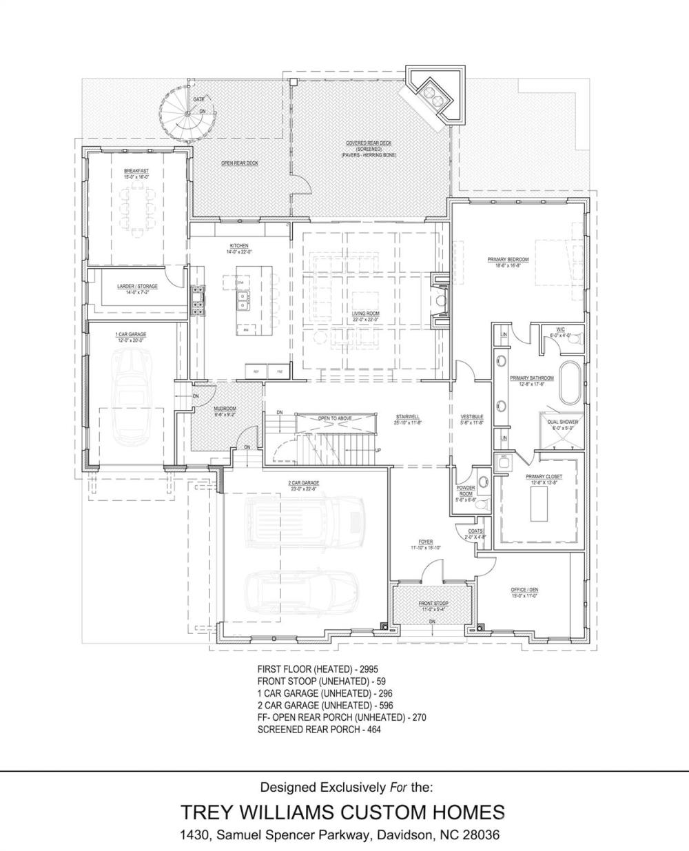 This spectacular home in the heart of Davidson showcases size, quality and luxury, with over 6,150 sq ft with all the custom features you could imagine. An impressive elevation with a focus on the front entry. A custom 9' door system (with a 60" pivot style door) invites you in to an open floor plan. As you step into the great room with 12 ft coffered ceilings, the home’s custom details are immediately apparent. Your eye will be drawn to a fireplace ready for wood burning or gas logs. The Chef's Kitchen features Sub-Zero Fridge and Freezer columns totaling an impressive 5 ft in width; an expansive island; custom inset cabinets and a 48” Wolf range. Walking through the kitchen, you'll find an expansive larder/pantry designed to showcase a custom finish while meeting functionality. Outside of this one-of-a-kind pantry, the vaulted ceiling of the dining room (with four handsome beams) will have you envisioning future gatherings. Open the expansive sliding doors and walk out to the massive screened porch (with wood-burning or gas fireplace). 5 Bedrooms and 5.5 Bathrooms. The primary bedroom is on the main level, with a spacious bathroom including a huge shower, freestanding tub and 17 feet of custom cabinetry along separate vanity spaces. The closet is oversized and plumbed/wired for stackable washer/dryer appliances. Three car garage with extensive vertical space. Upstairs, an impressive In-Law Suite with a sitting area, full bathroom and walk-in closet. The three remaining rooms are very spacious with full bathrooms and walk-in closets. The rear bedroom features a walkout balcony with a terrific view of the backyard and wooded area. The laundry room will be the envy and driving force of the upstairs living space. The upstairs family room can house any entertaining idea(s) you desire. Finally, the builder welcomes the opportunity to finish the basement with immense space for an additional bedroom....golf simulator....workout space....kitchen....living space or whatever you can envision. This lot is perfect for a future pool and backyard oasis. The entertainment value on this property is enormous. This is your chance to live in one of the most highly desired areas in all of North Carolina. The neighborhood is just off of multiple entries to the Davidson Greenway; and a quick bike ride from Downtown Davidson. Enjoy Concerts on the Green, Christmas in Davidson, the Thanksgiving Turkey Trot, Trick-or-Treat Davidson and the weekly Farmer's Market. Or take in a Davidson College sporting event. Davidson Woods is minutes away from River Run Country Club. Enjoy the best golfing, tennis, pickleball, social and dining accommodations by one of the most well-known Country Clubs in NC. Davidson Woods is only 30 minutes from Uptown Charlotte and Charlotte Douglas International Airport. It’s under a 15 minute drive to Mooresville, Cornelius, and Birkdale Village (Huntersville). Please contact the listing agent for your private tour and walk through with our hometown trusted builder, Trey Williams. We would love to share our vision from the design team, but are open to making this property custom to your needs.