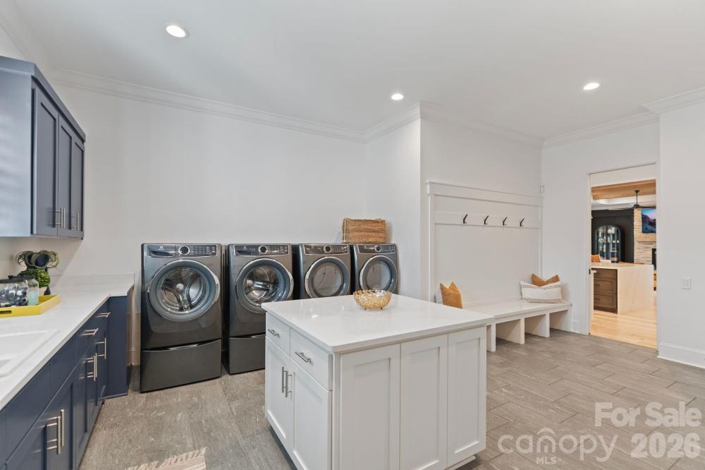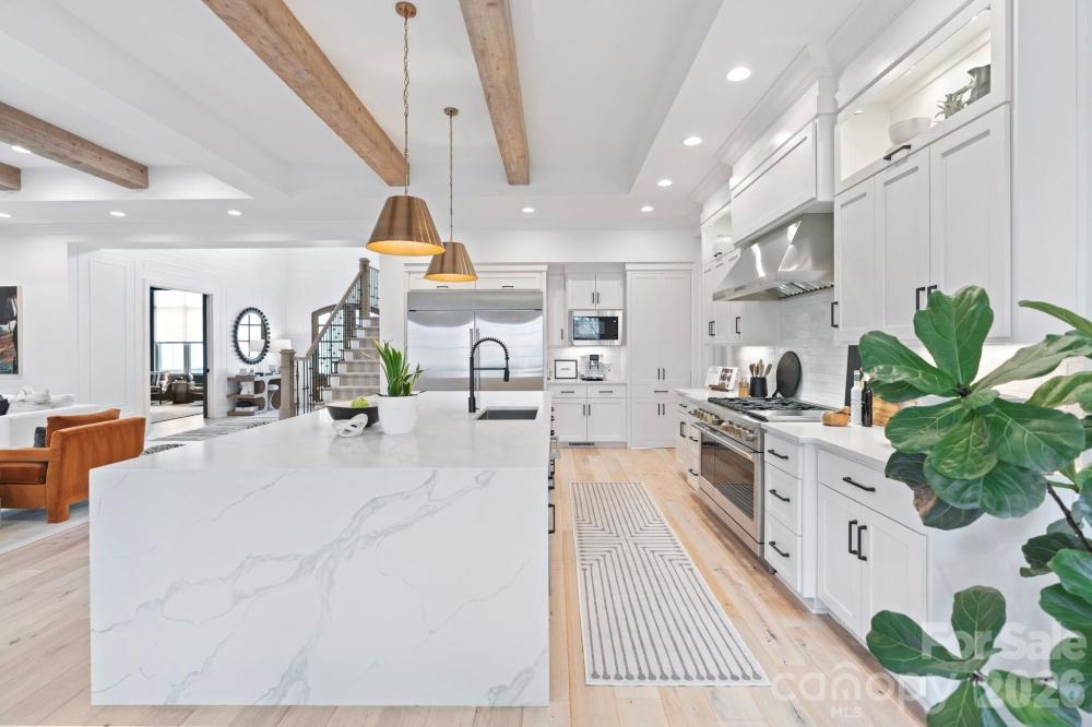 Set on 1.8 private acres in The Reserve at River Run, this exceptional 6500 sf custom home was masterfully designed by Kathryn Lilly Interiors, seamlessly blending refined sophistication with everyday livability. Surrounded by serene park and wooded views, the two-level residence offers both privacy and presence. The main level is anchored by a true chef’s kitchen featuring a dramatic quartz waterfall island, 72” integrated refrigerator/freezer, professional-grade appliances, and an expansive walk-in pantry complete with an additional 36” refrigerator-ideal for effortless entertaining. The primary suite is a private sanctuary on the main level, offering a spa-inspired bath and a fully customized dressing room. A generous guest suite with ensuite bath provides comfort and convenience for visitors. Upstairs, a spacious game room with wet bar creates the perfect gathering space, alongside three additional bedrooms- each with its own ensuite bath. A thoughtfully designed private wing offers ultimate flexibility for an au pair, in-laws, or extended stay guests, complete with a second laundry room, kitchenette, and expansive bonus space. Seamless indoor-outdoor living is showcased through two screened porches featuring a fireplace and built-in gas grill- perfect for year-round enjoyment. The resort-style backyard is a true retreat, highlighted by a custom pool and spa surrounded by luxurious travertine hardscape. Additional features include a standing-height encapsulated crawlspace offering exceptional storage, and a 3+ car garage outfitted with custom storage systems, epoxy flooring, and EV charging stations. Experience the luxury of space, privacy, and thoughtful design- all while enjoying the premier lifestyle of River Run and the charm of Davidson.