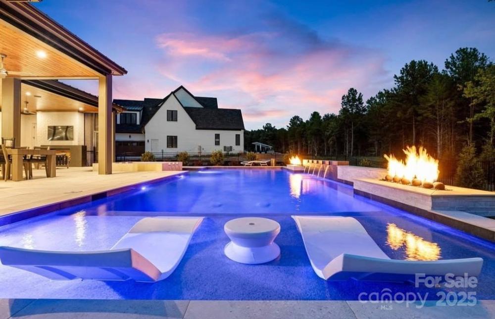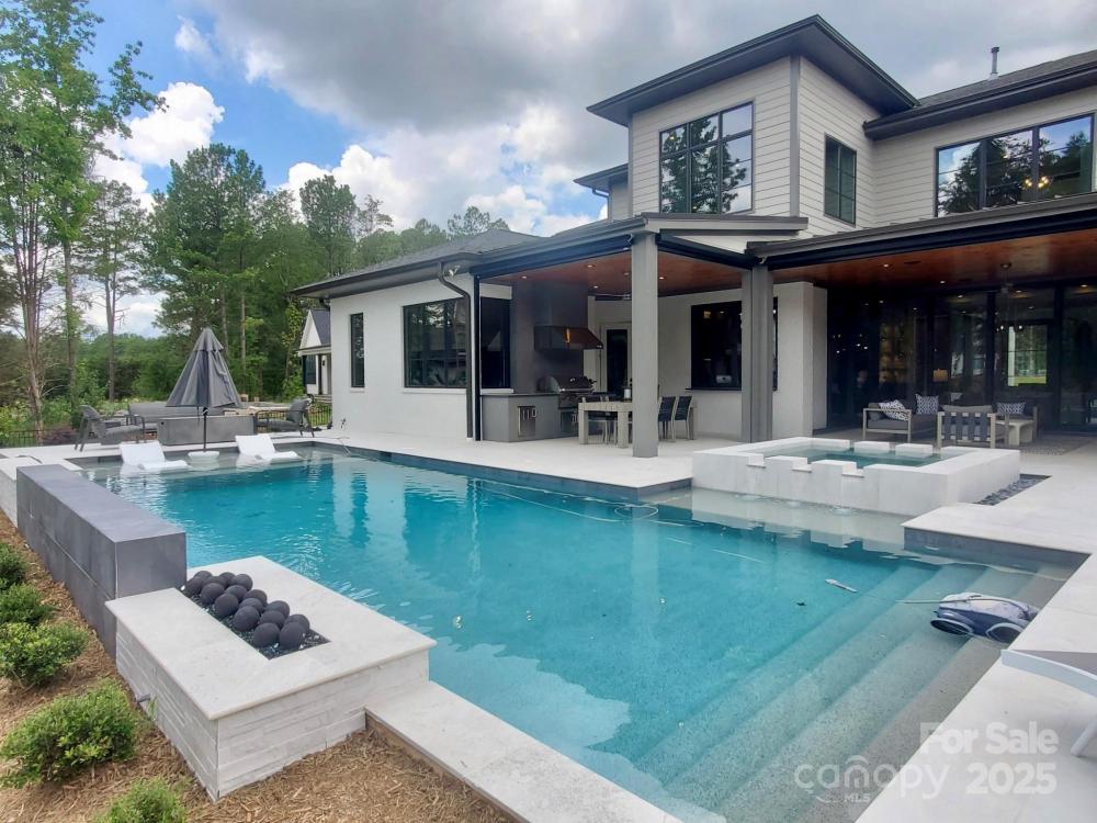 Located in Davidson Farms – Stunning Modern Home by AR Homes. This exquisite residence boasts spectacular features throughout. The primary bedroom, guest suite, and a dedicated office/den are conveniently located on the main floor, alongside a large open kitchen that includes a pass-through window to the covered porch. The great room and bar/wine room create an inviting space perfect for entertaining.Enjoy seamless indoor-outdoor living with pocketing doors leading to a covered porch equipped with remote retractable screens, a cozy fireplace, and an outdoor kitchen. A luxurious heated salt-water pool and spa add to the outdoor oasis, complemented by a 676 sq. ft. putting green featuring five cups.The kitchen is a chef's dream, featuring custom cabinetry, quartz countertops, a professional 48” range with dual ovens and six burners, plus a 48" built-in refrigerator. The spacious walk-in scullery includes a sink, dishwasher, and an additional refrigerator for ample storage.Retreat to the primary bath, which offers an oversized wet room, quartz counters, and a freestanding tub. The large, bright foyer with a floating staircase invites you into the home.Upstairs, you'll find a bonus room, club room with a wet bar, and a media room, along with three additional bedrooms, three full baths, and a half bath. There's also flex space ideal for an exercise area or playroom or walk-in conditioned storage space. Additional features include a upgraded/luxury lighting throughout, sealed crawlspace and a three-car side-load garage, making this home both practical and luxurious. Feature sheet in attachments. ***Professional photos will be uploaded on 11/7