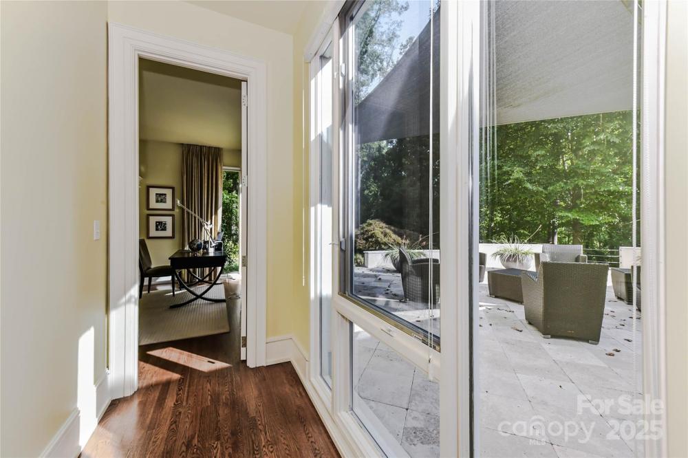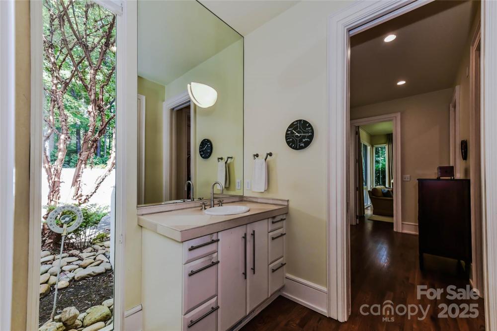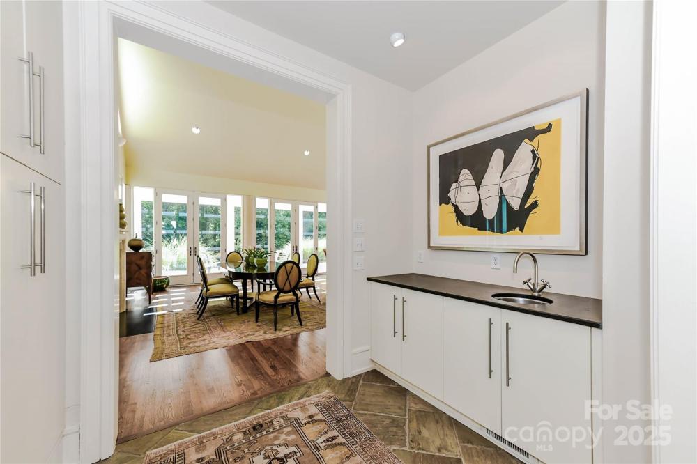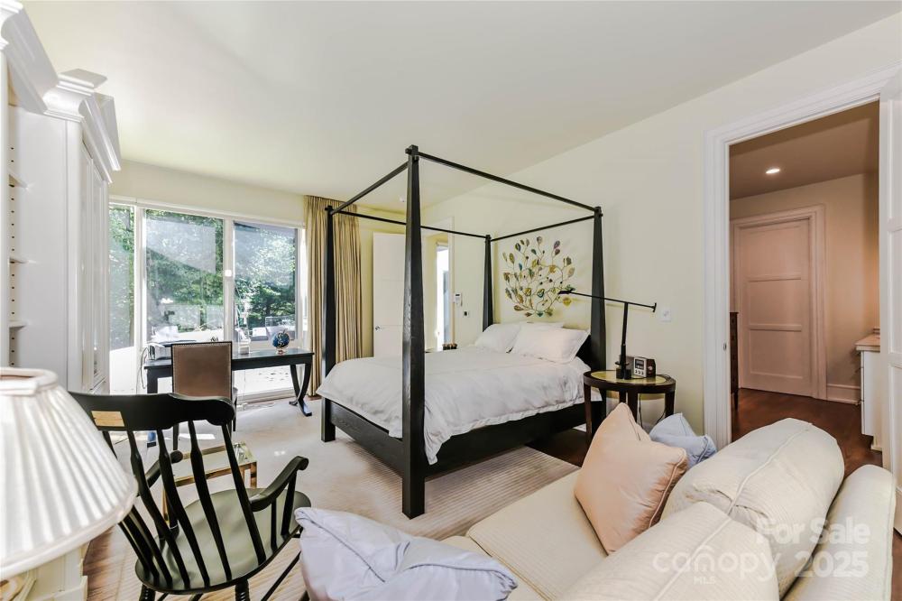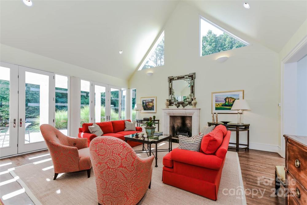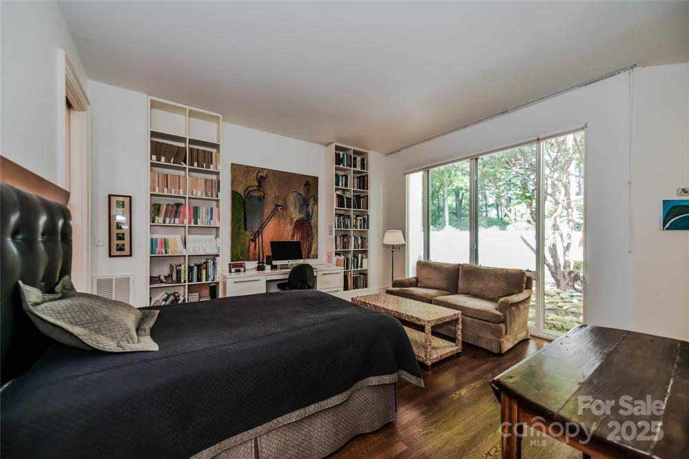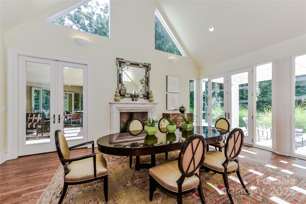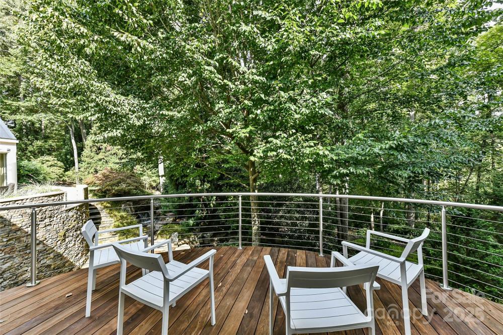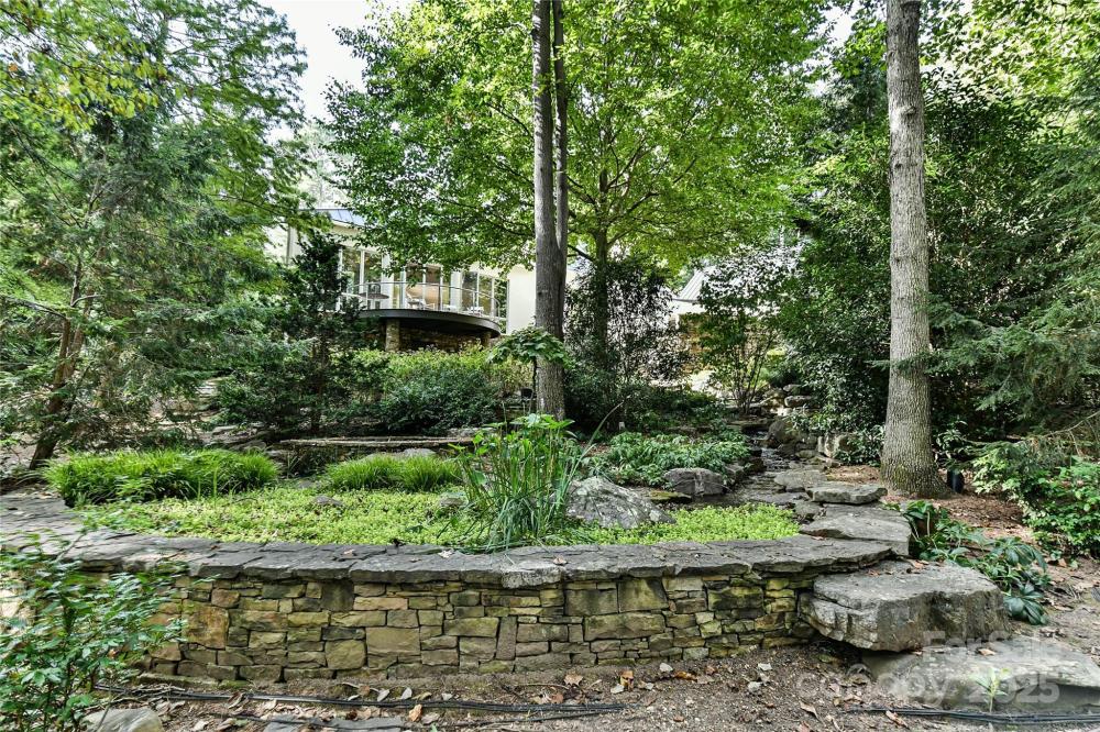 Located just 1.5 miles from downtown Davidson, 606 Ardrey Circle is one of the area’s most beautiful homes! The owners took great care in planning every single detail and have lovingly maintained it. The exquisite residence sits on a private 2.64-acre property, enveloped by gorgeous, mature trees. The property is absolutely beautiful, with a grassy lawn, stone walls and steps, woodland paths, stone firepit, sculptures and multiple spaces to relax. One of the most stunning features is a large stone waterfall that is visible from inside the house. There is ample room for a large pool and pool house. Built by Gene Keener (Fine Homes), the modern home was designed by Charlotte architect Jim Meyer and blends in perfectly with the natural surroundings. Light is abundant in each room and outdoor spaces abound. Most of the living space is on the main level, including 4 bedrooms and 4 & 1/2 bathrooms. The oversized, custom glass front door is surrounded by transoms and leads to a gracious entrance hall and spectacular central gallery atrium with glass ceiling. The house is composed of six pods around the central living space. The spacious living room/ dining room is vaulted and features 2 wood burning fireplaces and a wall of French doors that open to a generous stone veranda with pergola with a lovely trellis ceiling. A partially covered tile patio off the great room offers an amazing view of the waterfall and the surrounding forest. The great room has a wood burning fireplace and built-in bookcases and is open to the kitchen, which has honed granite counters and stainless steel appliances, including a gas stove and stainless steel vent. A large butler’s panty for additional storage and counter space is adjacent to the kitchen. Ten foot ceilings downstairs, tall wood doors and built-ins add to the comfortable, elegant feel. The stone flooring in kitchen, family room and all 3 full baths is heated. The two primary bedrooms are located near the great room and back hall which leads to an oversized 2 car garage. A spacious laundry utility room is conveniently located there along with back stairs that lead to a bonus room and loft area. Two additional bedrooms with en-suite bathrooms are off the foyer. There are two wells on the property that provide water for the waterfall feature & irrigation for the gorgeous grounds. 606 Ardrey Circle is an amazing home in a truly phenomenal location in the heart of Davidson.
