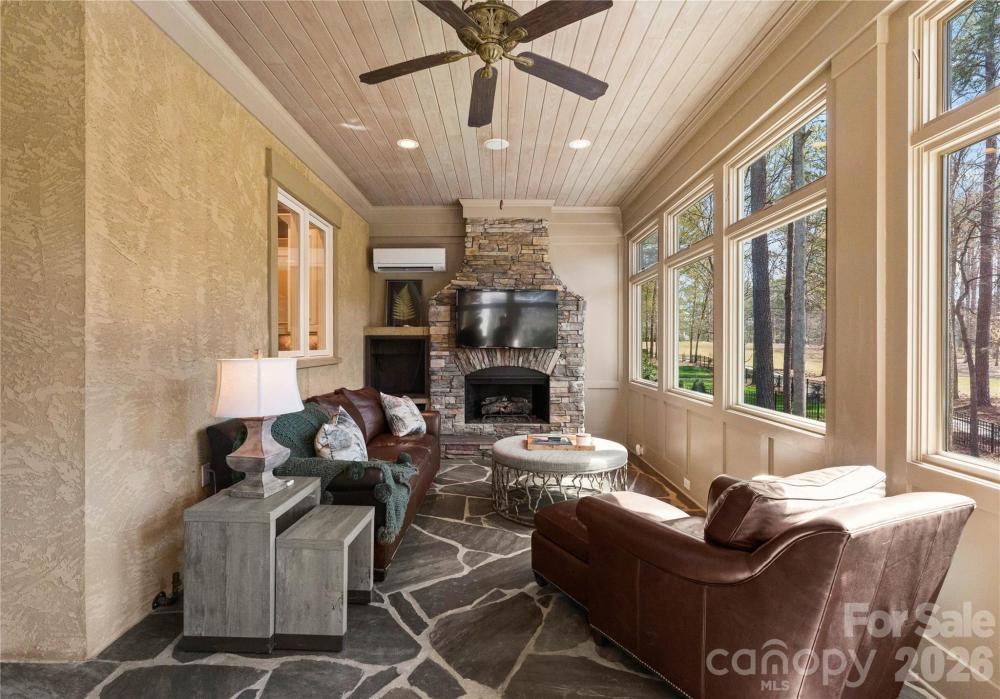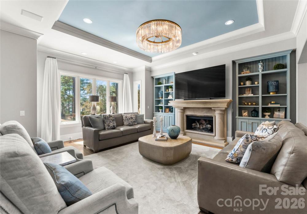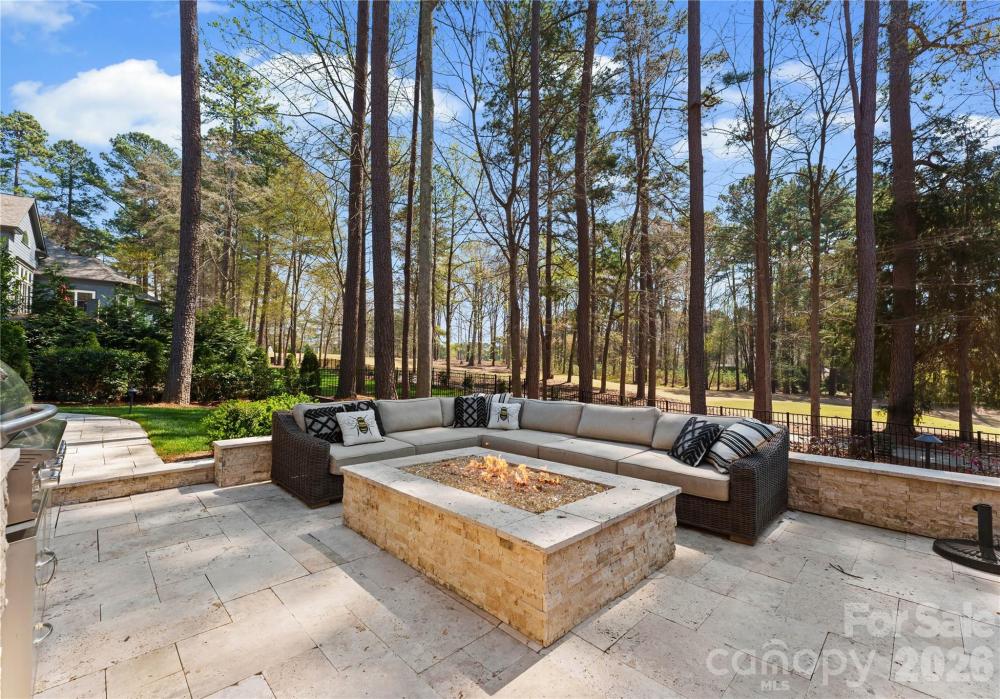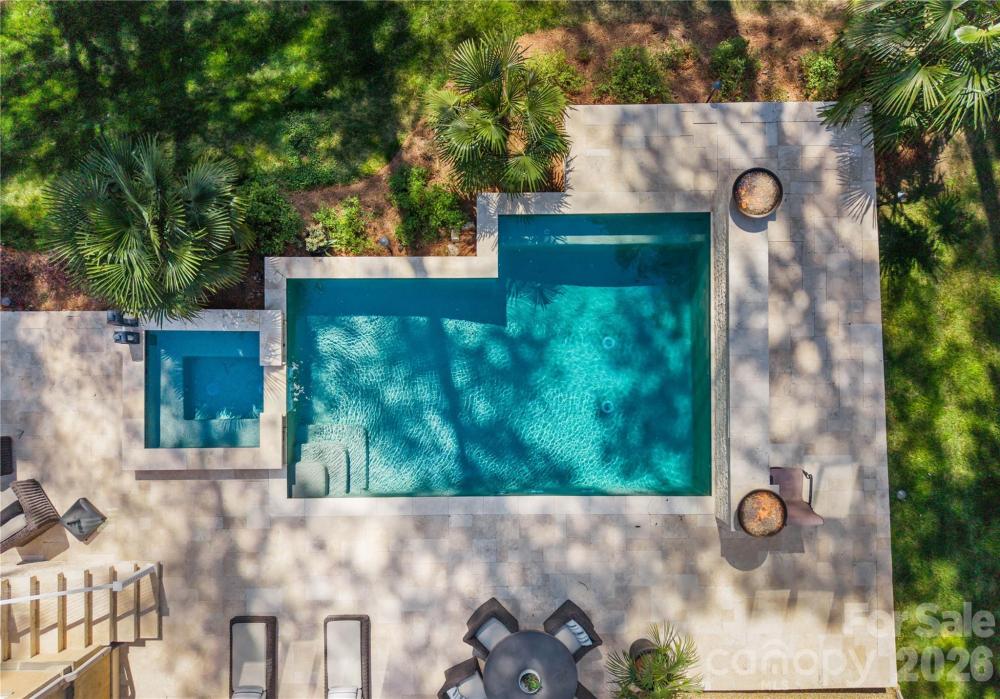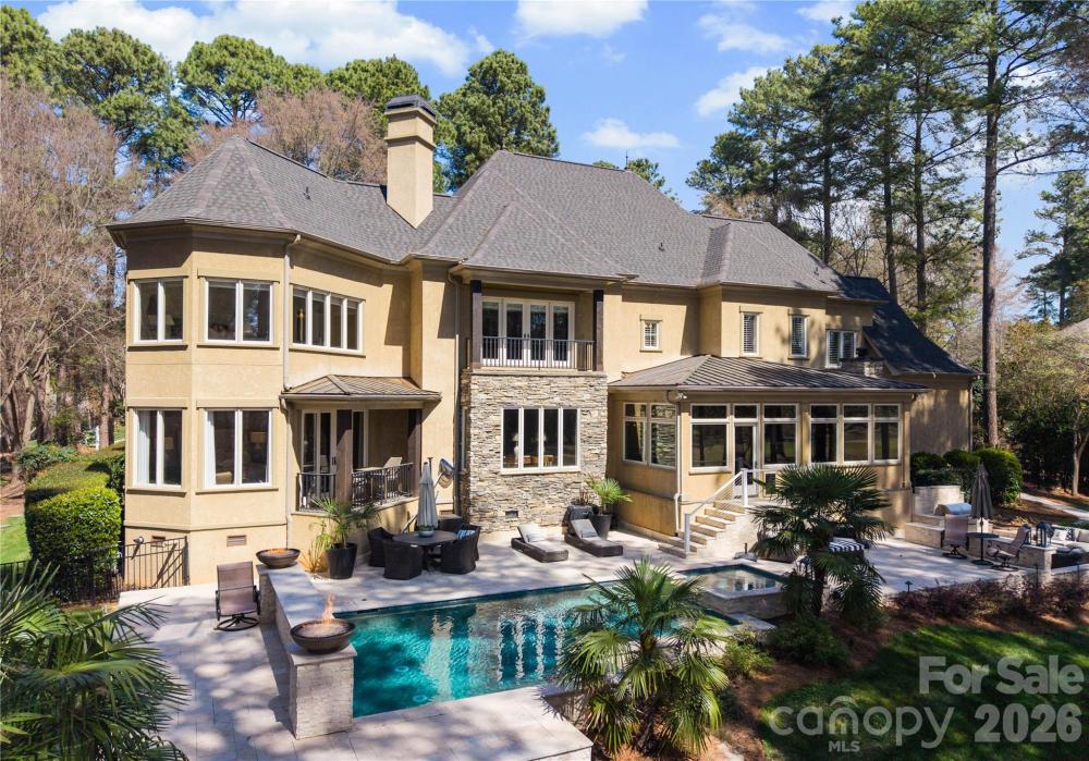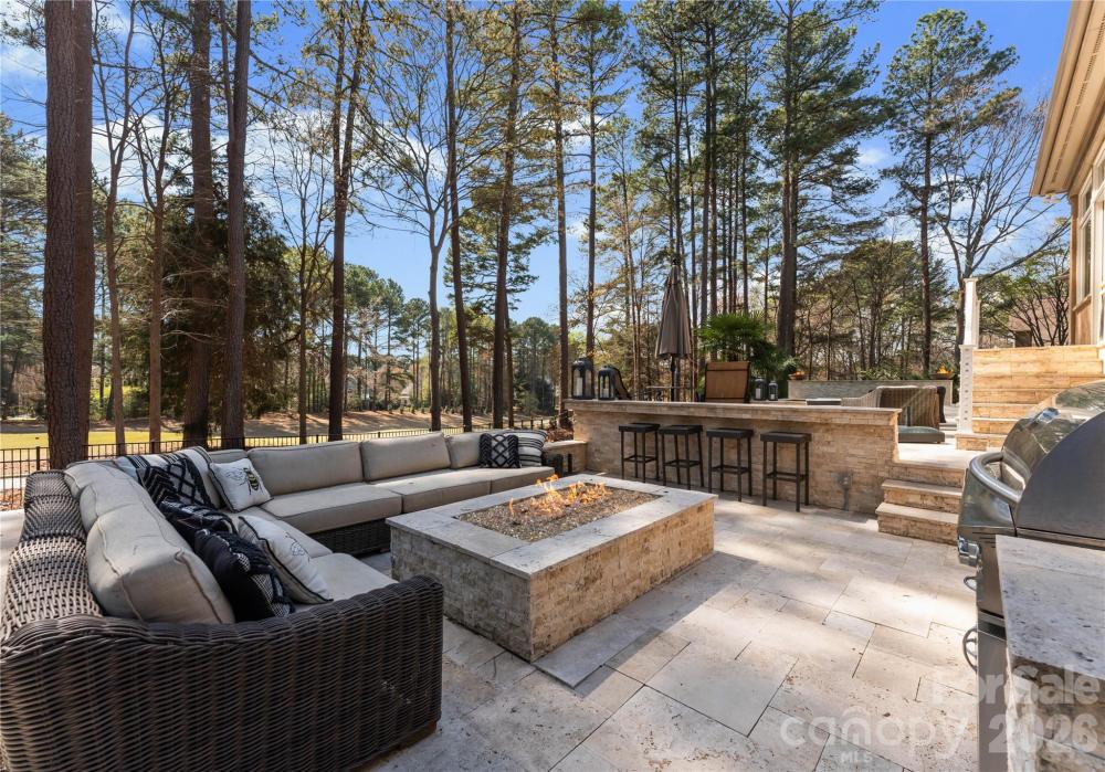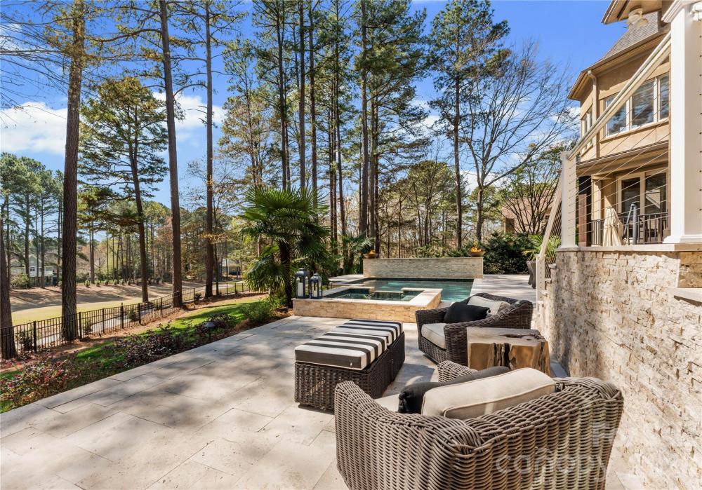 Enjoy breathtaking sunset views over the 3rd hole of Trump National Golf Course from this exceptional estate nestled within The Point. Set on 0.78 acres and offering over 5,700 square feet, this impeccably maintained 4 bedroom, 4.5 bath residence blends timeless elegance with modern comfort, delivering a truly elevated lifestyle. The outdoor living experience is truly resort caliber, featuring an expansive hardscape designed for both relaxation and entertaining. Enjoy a thoughtfully designed custom hardscape sunken fire pit, outdoor kitchen with grill and bar, and a saltwater pool and spa, creating your own private oasis overlooking the course. Inside, a grand two story foyer with designer lighting sets an impressive tone. The open concept main level is anchored by a stunning living room with a fireplace, custom built ins, and sweeping views, flowing seamlessly into a sunlit breakfast area and a beautifully appointed chef’s kitchen with granite countertops, designer finishes, and updated hardware. A serene sunroom with its own fireplace offers a peaceful retreat, while the formal dining room, complete with butler’s pantry access, is ideal for hosting elegant gatherings. The main level primary suite is a true sanctuary, featuring a beautifully mantled fireplace, private access to a covered patio, an expansive custom walk in closet, and a spa inspired bath with a soaking tub and oversized walk in shower. Upstairs, newly installed carpeting enhances a bright and spacious bonus room overlooking the backyard oasis and golf course. A secondary primary suite with en suite bath and walk in closet provides flexibility for guests or multi generational living. Additional generously sized bedrooms, a shared bath, and a versatile recreation space complete the upper level. Dual laundry rooms on both floors add everyday convenience. Recent upgrades include a new roof in 2022, an EV charger garage hookup, updated lighting and fixtures, and extensive irrigation and hardscape enhancements. Residents of The Point enjoy access to premier amenities through a Social Membership, including dining, fitness, tennis, swimming, and a vibrant calendar of community events, delivering a true country club lifestyle. This is luxury living redefined, where every detail has been thoughtfully curated for comfort, style, and effortless entertaining.