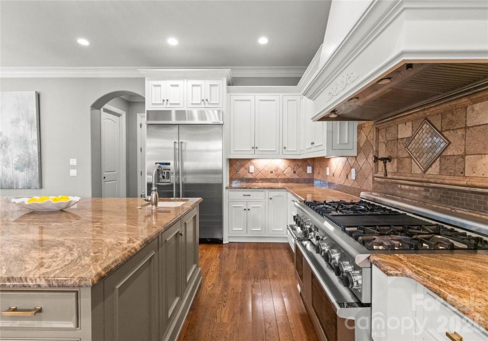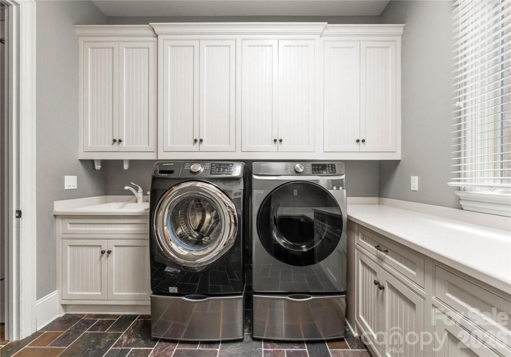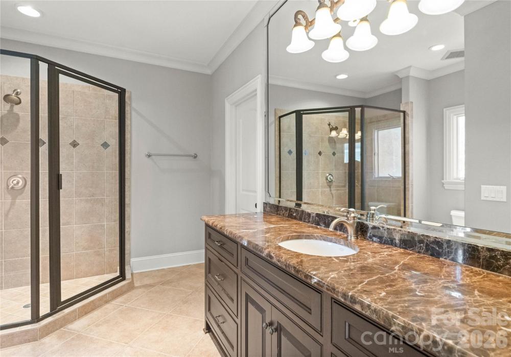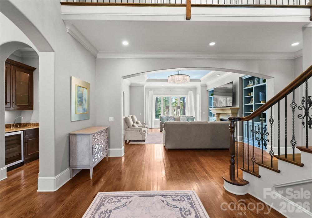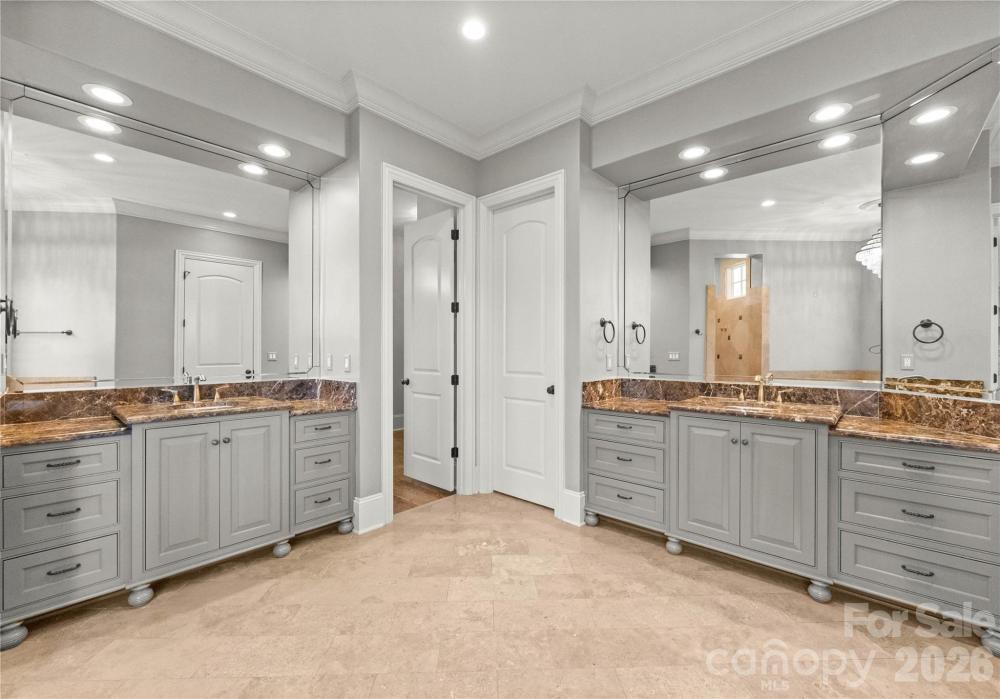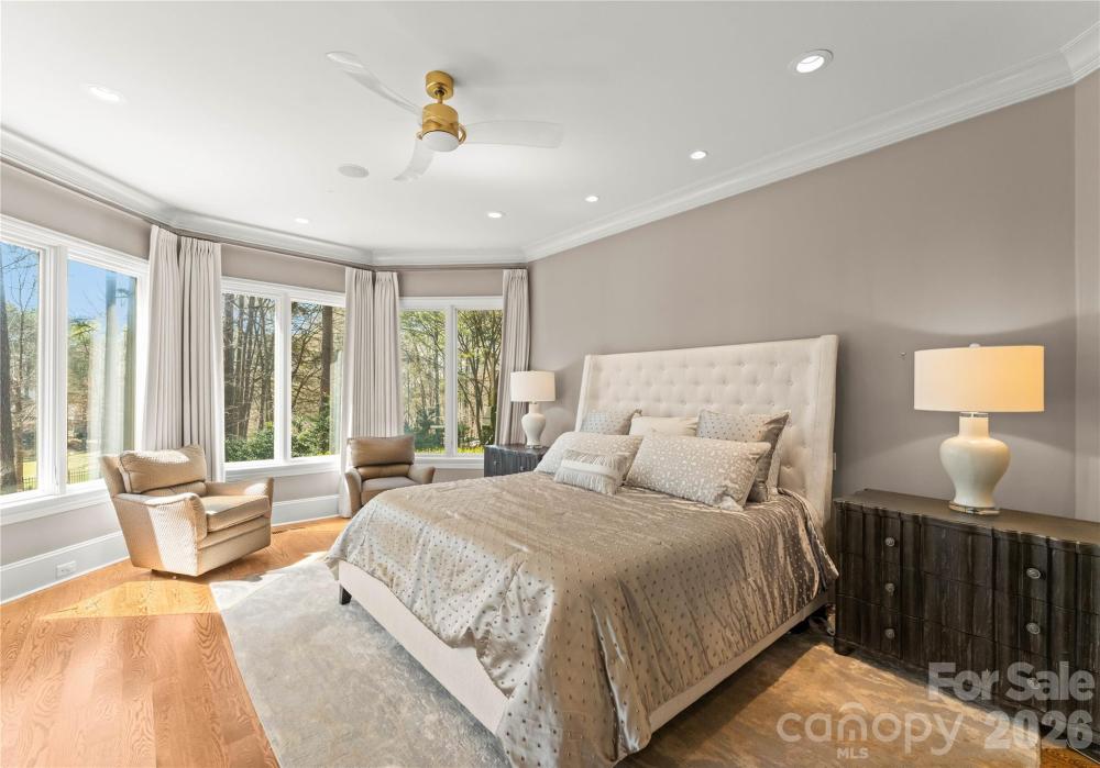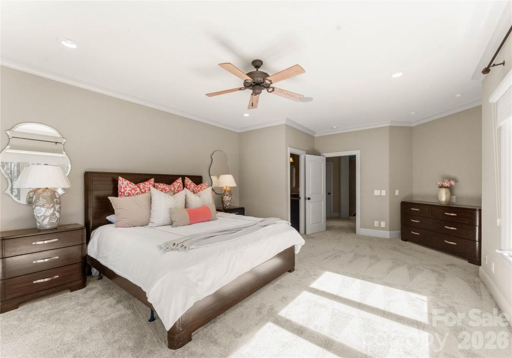 Enjoy breathtaking sunset views over the 3rd hole of Trump National Golf Course from this exceptional estate nestled within The Point. Set on 0.78 acres and offering over 5,700 square feet, this impeccably maintained 4 bedroom, 4.5 bath residence blends timeless elegance with modern comfort, delivering a truly elevated lifestyle. The outdoor living experience is truly resort caliber, featuring an expansive hardscape designed for both relaxation and entertaining. Enjoy a thoughtfully designed custom hardscape sunken fire pit, outdoor kitchen with grill and bar, and a saltwater pool and spa, creating your own private oasis overlooking the course. Inside, a grand two story foyer with designer lighting sets an impressive tone. The open concept main level is anchored by a stunning living room with a fireplace, custom built ins, and sweeping views, flowing seamlessly into a sunlit breakfast area and a beautifully appointed chef’s kitchen with granite countertops, designer finishes, and updated hardware. A serene sunroom with its own fireplace offers a peaceful retreat, while the formal dining room, complete with butler’s pantry access, is ideal for hosting elegant gatherings. The main level primary suite is a true sanctuary, featuring a beautifully mantled fireplace, private access to a covered patio, an expansive custom walk in closet, and a spa inspired bath with a soaking tub and oversized walk in shower. Upstairs, newly installed carpeting enhances a bright and spacious bonus room overlooking the backyard oasis and golf course. A secondary primary suite with en suite bath and walk in closet provides flexibility for guests or multi generational living. Additional generously sized bedrooms, a shared bath, and a versatile recreation space complete the upper level. Dual laundry rooms on both floors add everyday convenience. Recent upgrades include a new roof in 2022, an EV charger garage hookup, updated lighting and fixtures, and extensive irrigation and hardscape enhancements. Residents of The Point enjoy access to premier amenities through a Social Membership, including dining, fitness, tennis, swimming, and a vibrant calendar of community events, delivering a true country club lifestyle. This is luxury living redefined, where every detail has been thoughtfully curated for comfort, style, and effortless entertaining.