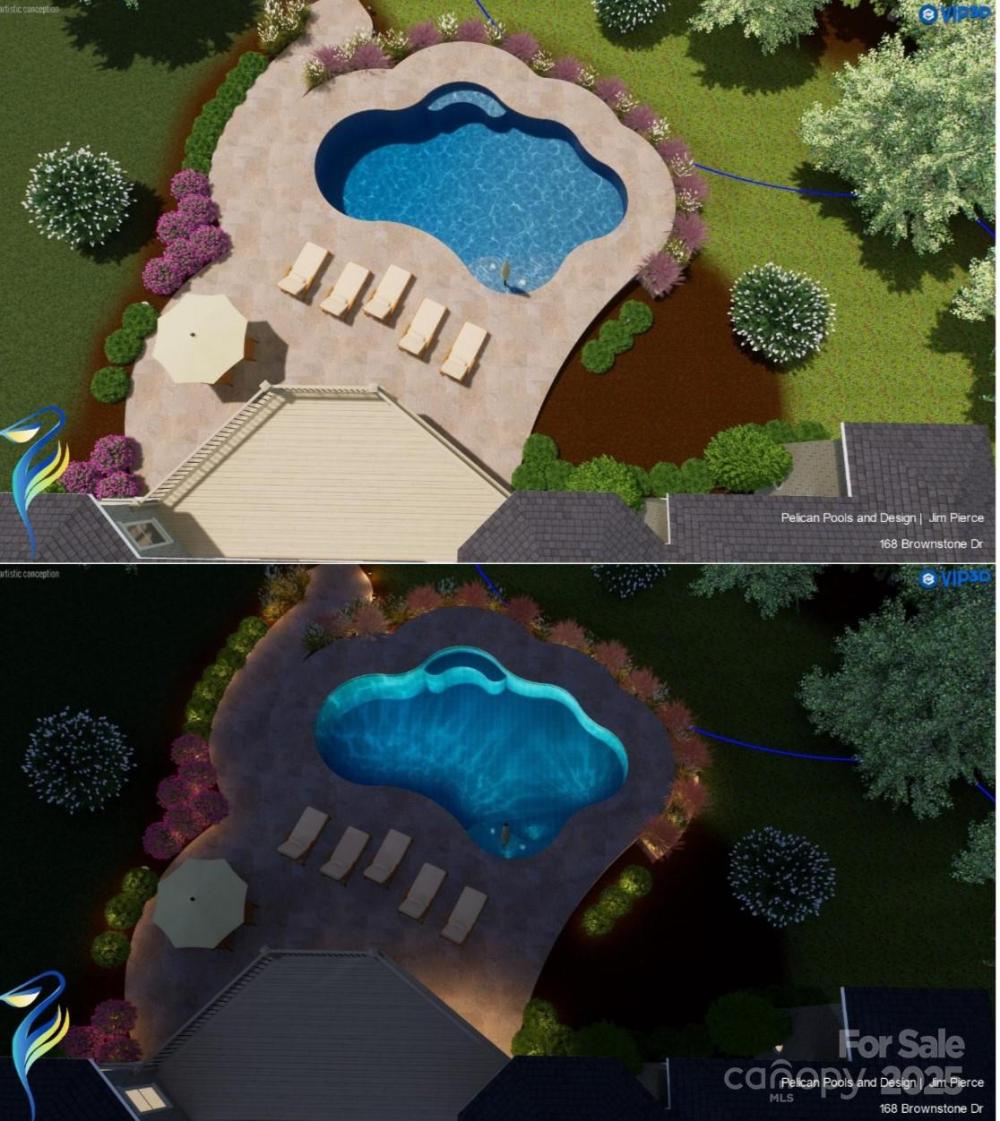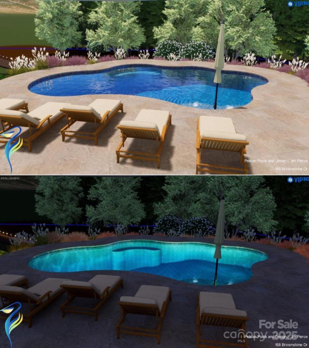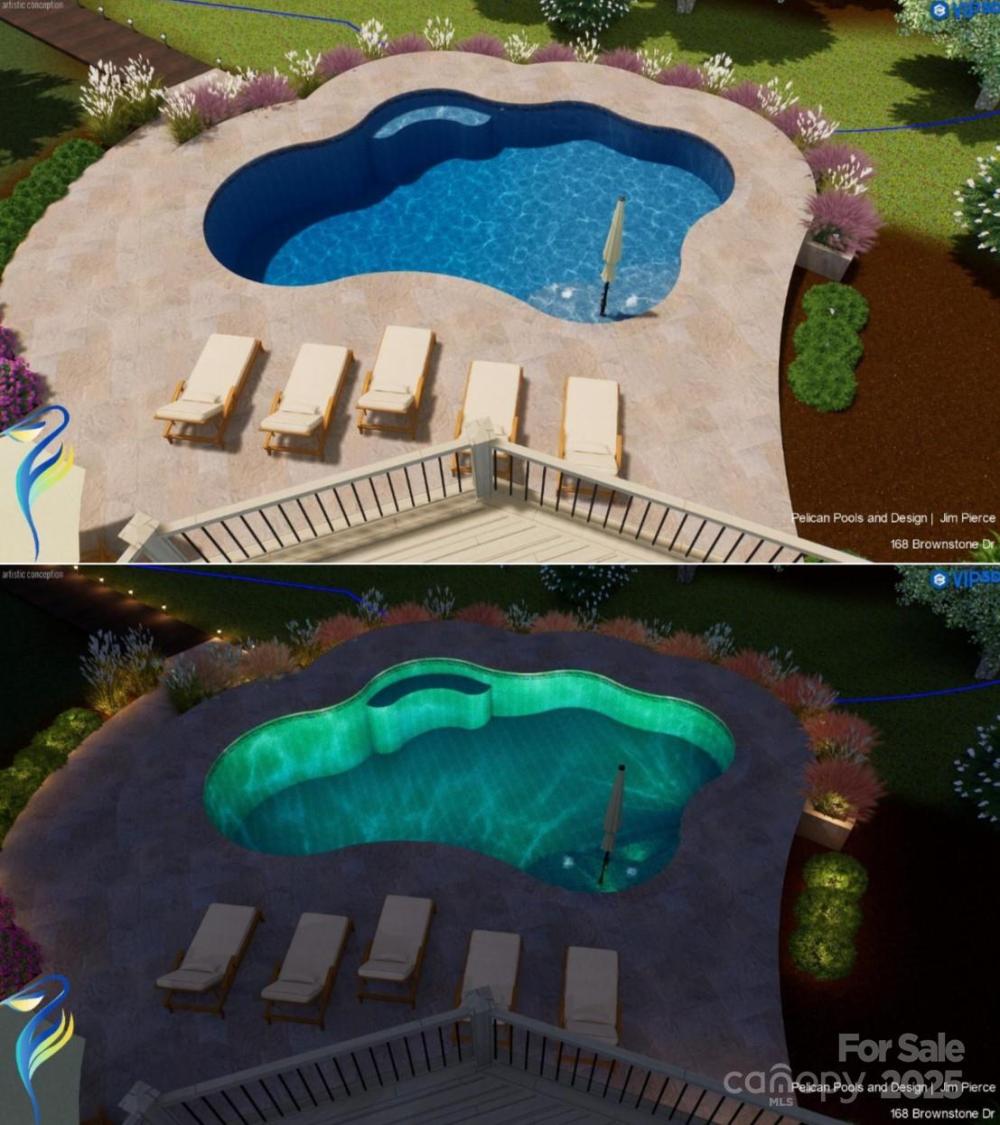 Welcome to 168 Brownstone Drive—an exquisite waterfront retreat in the heart of The Point, Mooresville’s premier lakefront community. Fully updated and meticulously maintained, this stunning ranch-style home with finished walk-out basement offers the ultimate blend of luxury, privacy, and access to the lake lifestyle—complete with a deeded boat slip just steps away. Inside, you’ll find a reimagined gourmet kitchen with top-of-the-line appliances, custom cabinetry, quartzite countertops and expansive island perfect for entertaining. Freshly refinished hardwood floors, updated bathrooms, fresh paint, and designer finishes elevate every inch of the interior. The main level features an elegant primary suite with spa-like bath and generous walk-in closet, plus two additional bedrooms with en-suite access. The lower level is a true showstopper—ideal for multigenerational living or entertaining—with a sleek second kitchen/bar, high ceilings, a spacious rec room, private guest suite, two offices, and workshop space. It flows seamlessly out to a new travertine terrace with outdoor fireplace, built-in grilling station, and views of the peaceful cove. Enjoy evening strolls along your private boardwalk leading to the water, or imagine relaxing poolside with the included pool rendering offering a vision for your dream backyard oasis. Tucked on a lush, tree-lined lot, this home offers both serenity and proximity to The Point’s world-class amenities—golf, tennis, dining, and more (with separate TNG membership). Whether you’re seeking a full-time residence or lakefront retreat, this updated gem offers the space, style, and setting to live your best Lake Norman lifestyle.