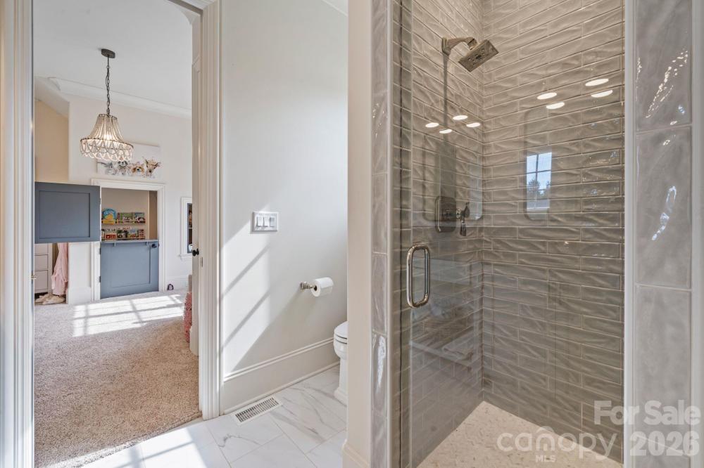 Experience refined luxury living in The Point, one of Lake Norman’s most prestigious golf and waterfront communities. This exceptional estate spans 5,177 sq. ft. of meticulously curated living space on a beautifully landscaped lot overlooking the 2nd tee ox of Trump National Golf Club. Step through the gracious foyer into a soaring living and dining rooms with 12-foot ceilings - a dramatic introduction to elegant daily living. The main level features a dedicated office with French doors and vaulted ceiling, and a serene primary suite complete with a spa-like 5-piece bath and spacious walk-in closet. Two additional bedrooms with a Jack & Jill bath offer comfort and privacy. The kitchen is a chef’s delight, boasting a large island with seating, built-in refrigerator, gas cooktop, beverage fridge, built-in pantry, and breakfast area with views of the backyard oasis. A cozy family room with tray ceilings and a gas fireplace flows effortlessly into a hidden, recently added addition, where you will find a private bedroom suite with full bath and sitting room, offering patio access ideal for guests or multi-generational living. The upper level reveals a versatile loft/yoga room, a spacious bedroom with a convenient half bath, along with a bonus/media room above the 3-car garage with its own full bath. Outdoors, enjoy resort-style living with a stone patio centered by a gas fireplace, pool and spa, and a fully fenced yard with privacy landscaping. Entertain in your custom built-in BBQ area featuring sink and storage, or gather around the dedicated fire-pit seating area - perfect for evening relaxation. Significant upgrades include 2020 septic expansion, pergola, fire-pit, new carpet, and exterior lighting, plus fresh exterior paint in 2025. This property also includes a deeded boat slip (Pier Z, #14). Your gateway to Lake Norman’s 520 miles of shoreline and boatable waters. This is more than a home, it’s an experience. Elegant yet inviting, private yet connected, captures the best of golf, lake, and luxury living in one extraordinary address.
