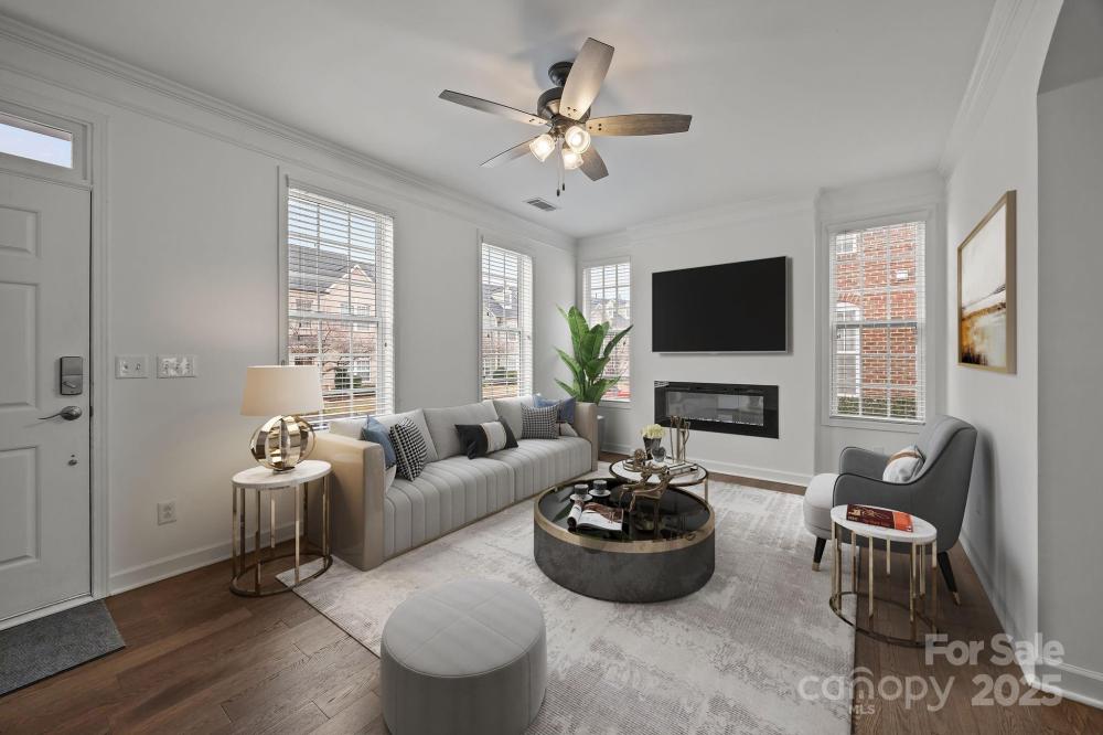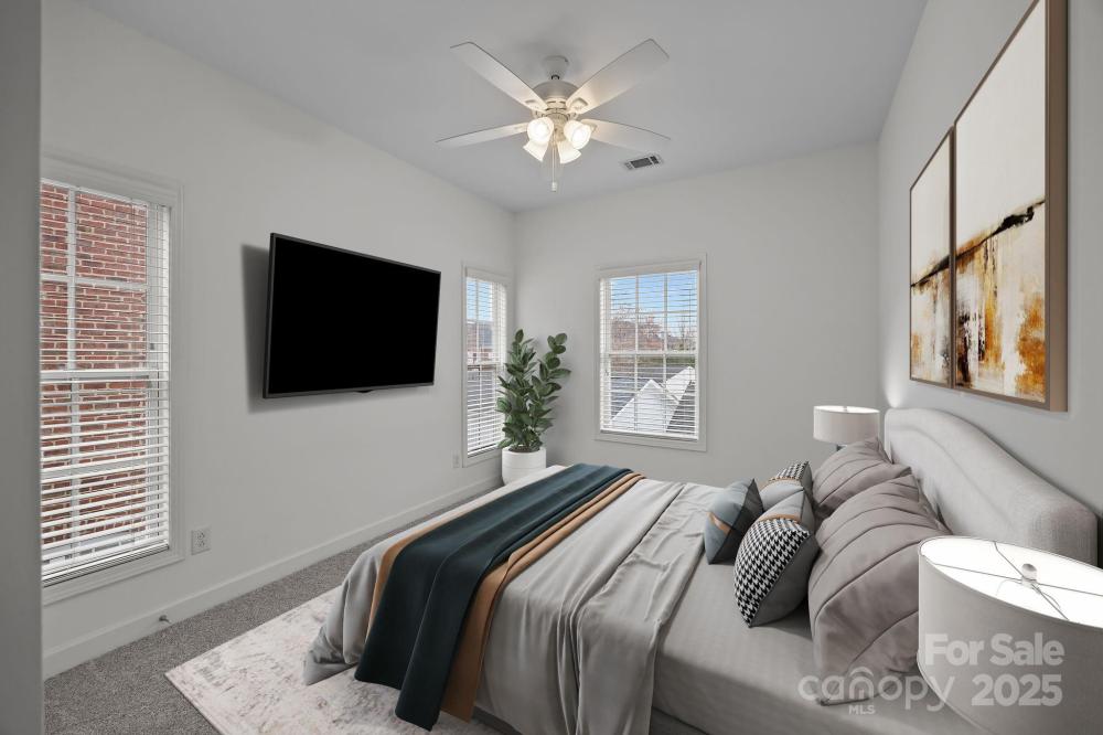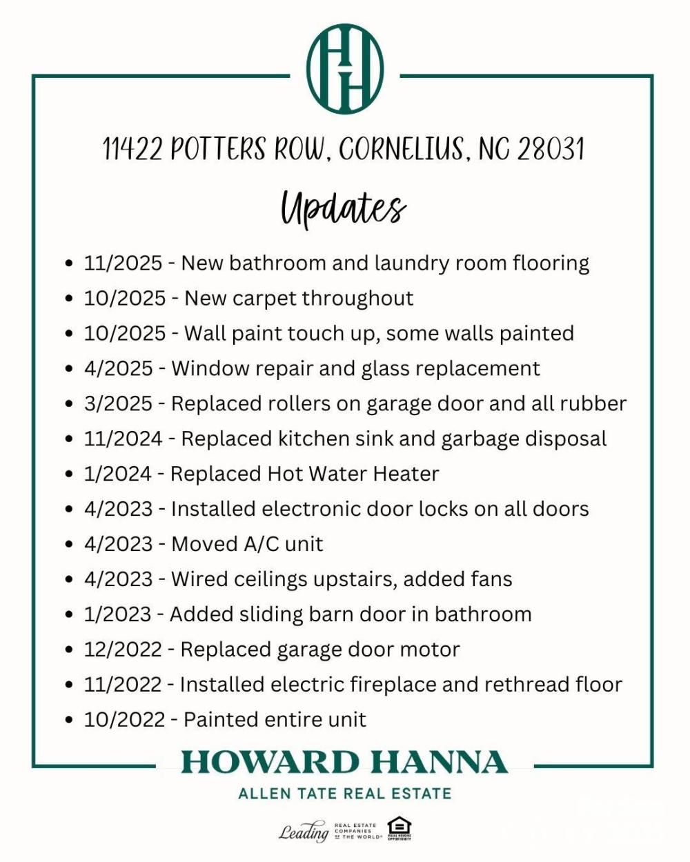 Step into this immaculate, move-in ready 3-bed, 2.5-bath end-unit townhome filled with natural light and thoughtful updates. The main level features a desirable primary suite with an ensuite bath, convenient laundry, and freshly updated interiors including new paint, new bathroom and laundry flooring, new carpet throughout, and recent window glass replacements. The kitchen and living areas flow comfortably, opening to a private fenced garden and patio, perfect for quiet mornings or evening gatherings. The 2022 HVAC system was just serviced with filters replaced, offering peace of mind from day one. Upstairs, a spacious flex room provides incredible flexibility as a media room, home office, or lounge, accompanied by two additional bedrooms and a full bath. A two-car detached garage completes the package. Virtual staging photos highlight the full potential of each space. Located in the highly sought-after Antiquity neighborhood, this community offers a true lifestyle experience. Amenities include a pool, dog park, greenways for walking and biking, and regular neighborhood activities. Enjoy an easy stroll to shops, restaurants, grocery options, and the Cain Center for the Arts. Close proximity to downtown Cornelius and Davidson. Exterior maintenance and basic internet are managed by the HOA, making this beautifully maintained home truly move-in ready.