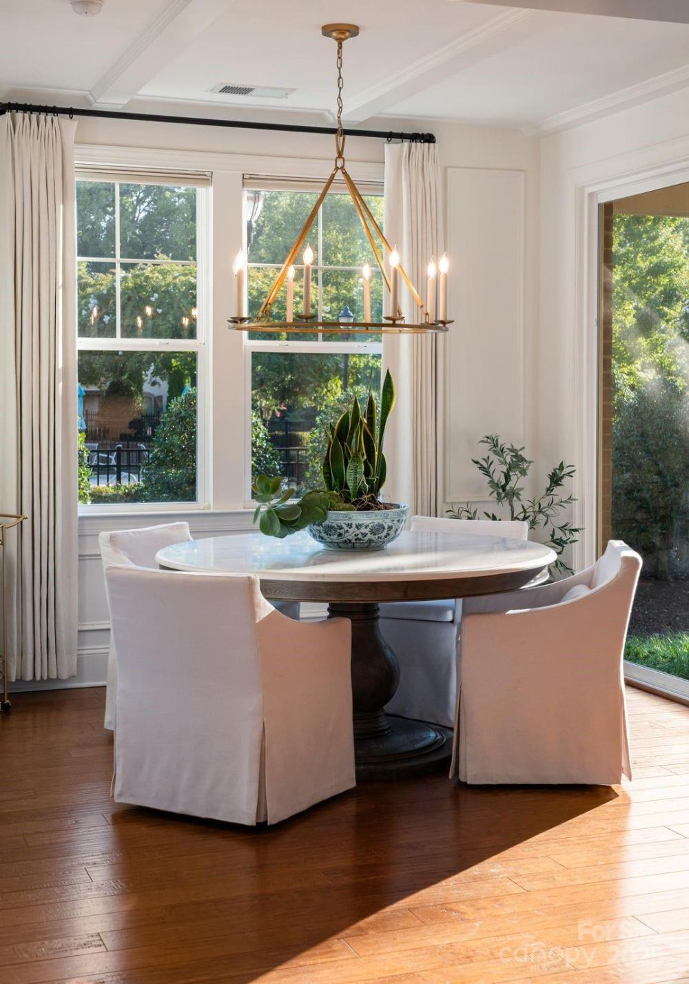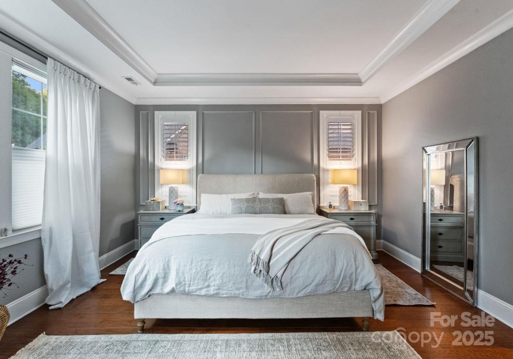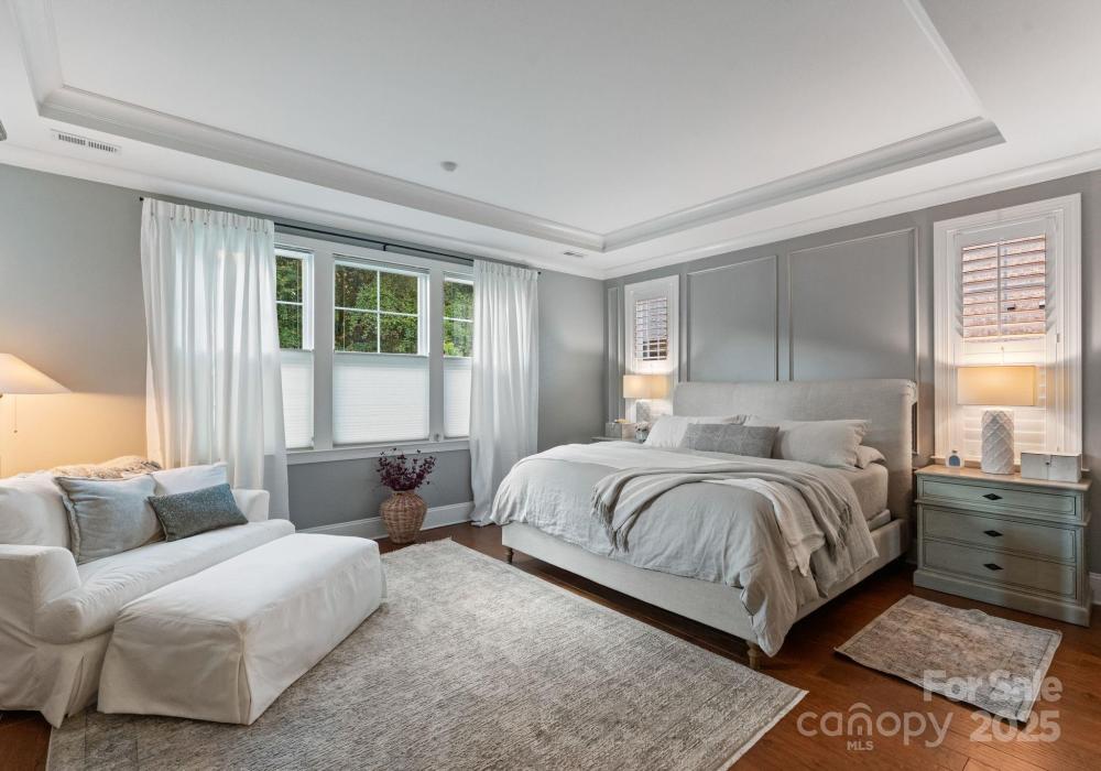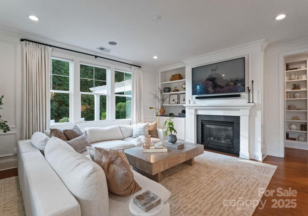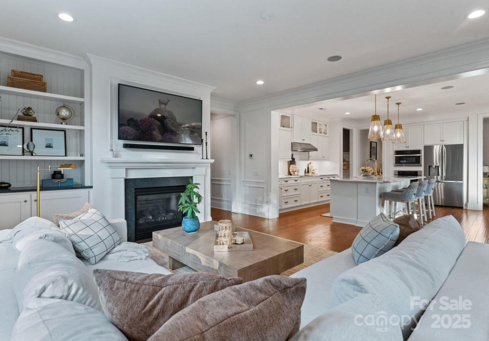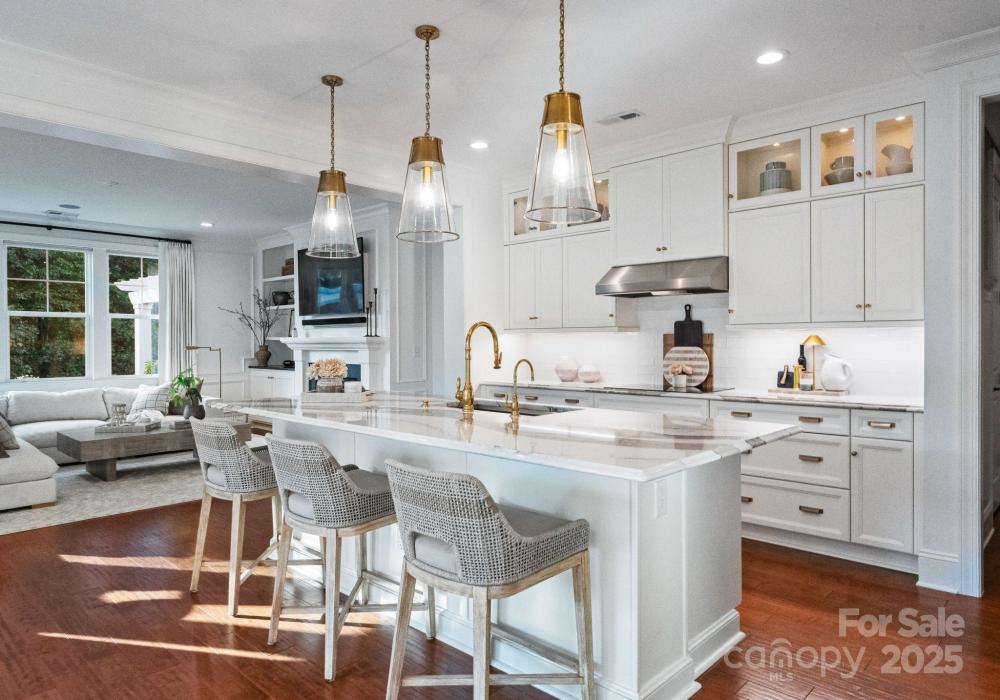 In the heart of sought-after Robbins Park, this impeccably maintained home blends timeless elegance with thoughtful, high-end upgrades. The main level is anchored by a chef’s kitchen, a well-appointed butler’s pantry with dual beverage refrigerators, and a seamless flow into the inviting living room with custom built-ins. A dedicated home office, laundry room, and dining space, with access to the backyard, add both function and charm. The main-level primary suite is a private retreat, offering a spa-like bath w/ heated floors, and a custom walk-in closet. Outside, a stunning stone patio is crowned with a custom pergola and a rectangular gas fire feature, perfect for entertaining year-round. Upstairs, three spacious bedrooms are joined by a secondary suite with private living area and ensuite bath; ideal for guests, multigenerational living, or a private studio. Located just minutes from Lake Norman, Birkdale Village, and all the best Cornelius has to offer.