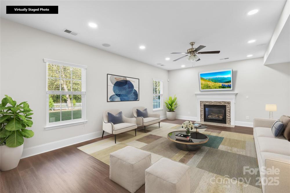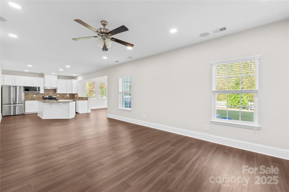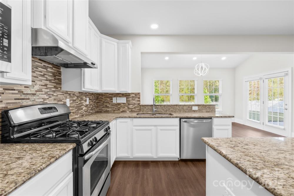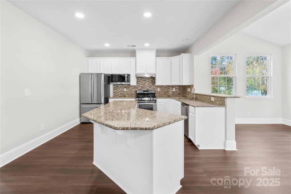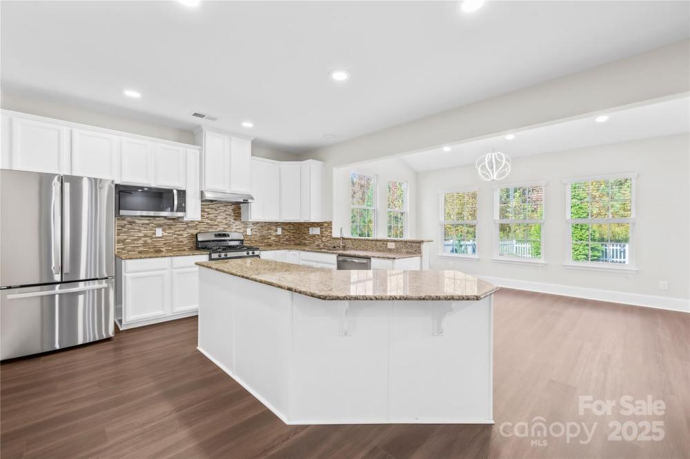 Move-in ready in The Farm at Riverpointe! Fresh neutral paint, no carpet, new LVP on main, stairs & one bedroom, custom lighting, and a fenced, wooded backyard with manicured lawn. Bright kitchen with white cabinets, granite counters, gas range, large island, and brand-new refrigerator & microwave. Full bath + office/flex & dining on main. Upstairs: loft, oversized primary suite with dual closets & 3 more bedrooms. Washer, dryer & refrigerator all convey! Community amenities include pool, clubhouse, tennis, basketball, soccer, dog park, playground & walking trails. Prime location near shopping & highways—move-in ready perfection!