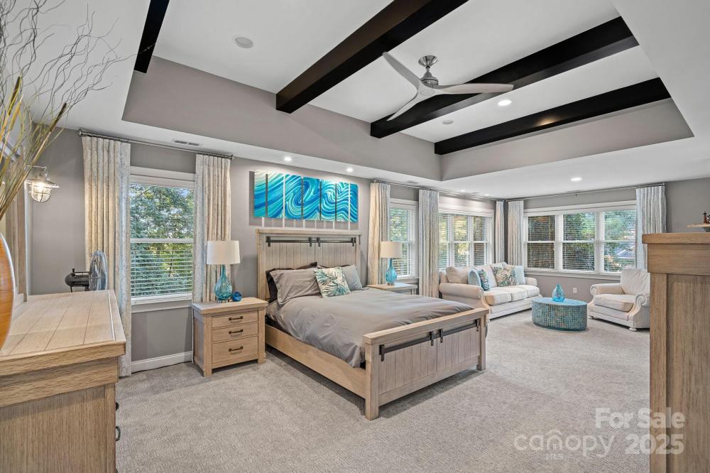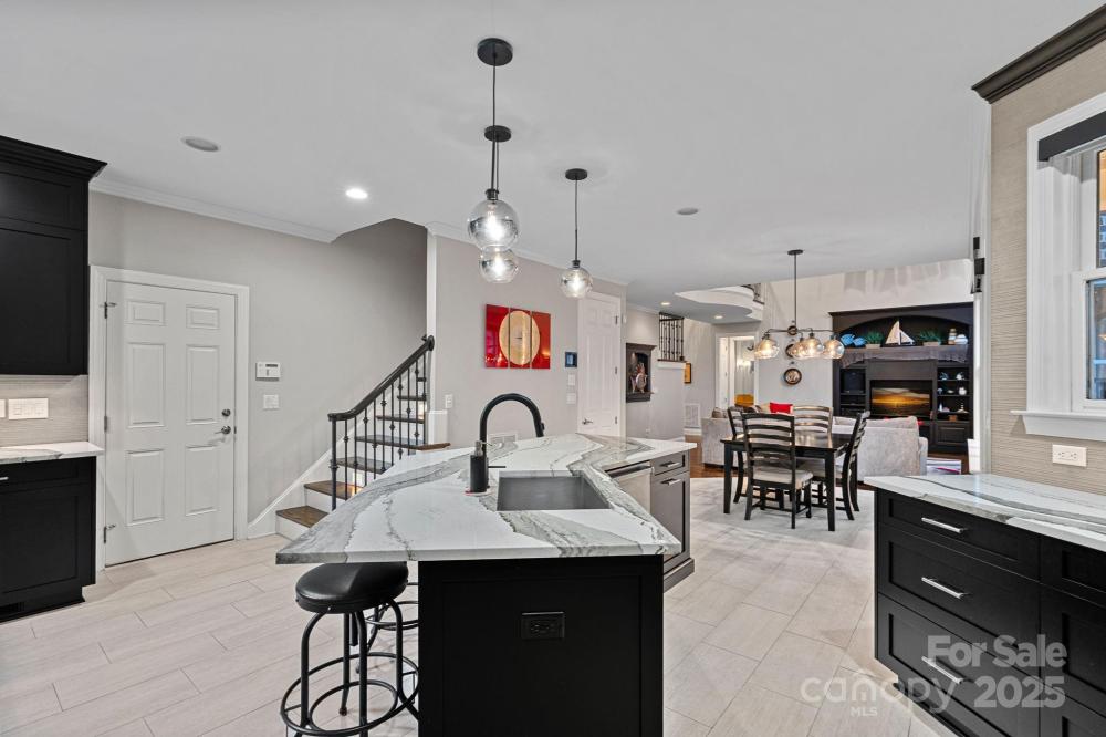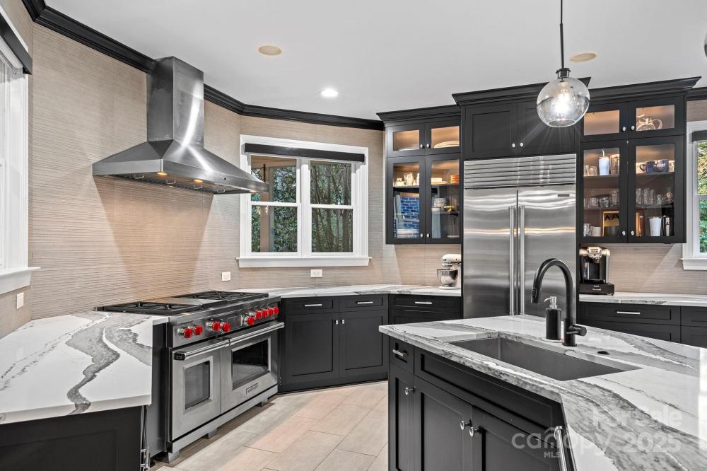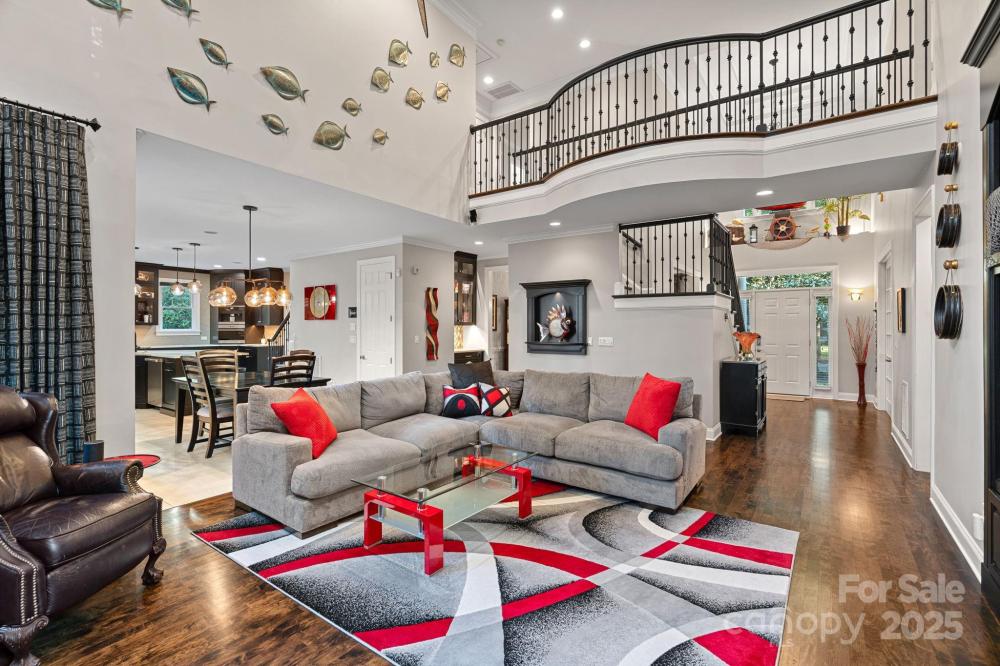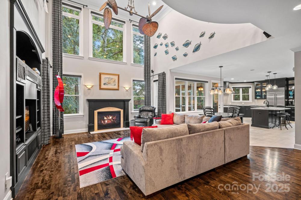 Luxury Smart Home in River Run with Resort-Style Entertaining Spaces! Located in the highly desirable River Run neighborhood, this beautifully updated 5 BR, 4.5 BA home offers just under 5,000 sq ft on a private, wooded .53-acre lot with lush landscaping and a large, fenced yard perfect for a pool. Enjoy an open floorplan with walls of windows, 2-tier outdoor terrace with hot tub, waterfall, pond, and custom basalt fountains. Smart home features include Control4 system, programmable lighting and shades, smart irrigation, and video doorbell. The renovated primary suite features a Jacuzzi tub, heated tile floors, and backlit quartz accents. The updated gourmet kitchen offers SubZero & Wolf appliances, oversized island, and built-in Miele coffee machine. Kitchen & bathroom renovations completed by luxury home builder, Simonini Homes. The entertainment-ready lower level includes a home theatre, a bar with 2 built-in kegerators with 4 taps, beverage refrigerator, ice maker, sink, dishwasher, and backlit honey onyx accents. Gym with plyometric tile flooring, wall of mirrors, ceiling-mounted pullup bar and mounted brackets for heavy bags, and a 250+ bottle wine cellar. New roof and driveway (2023). Enjoy top lifestyle amenities at River Run Country Club including golf, tennis, pickleball, pool, and trails with easy access to downtown Davidson, Charlotte, and Lake Norman. (Club memberships available but not included.)