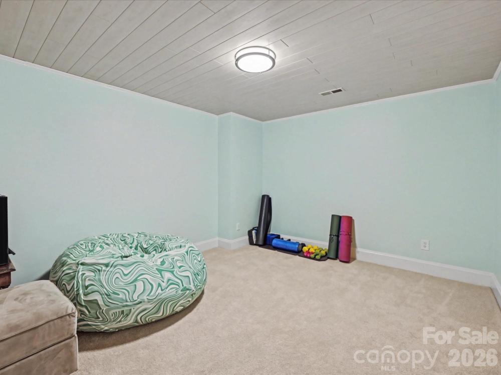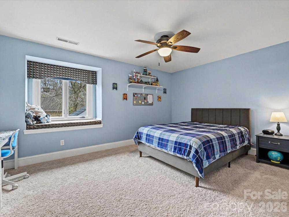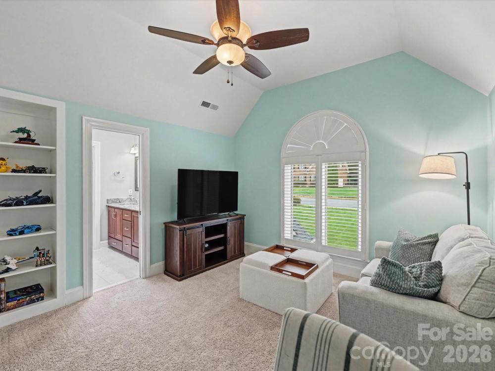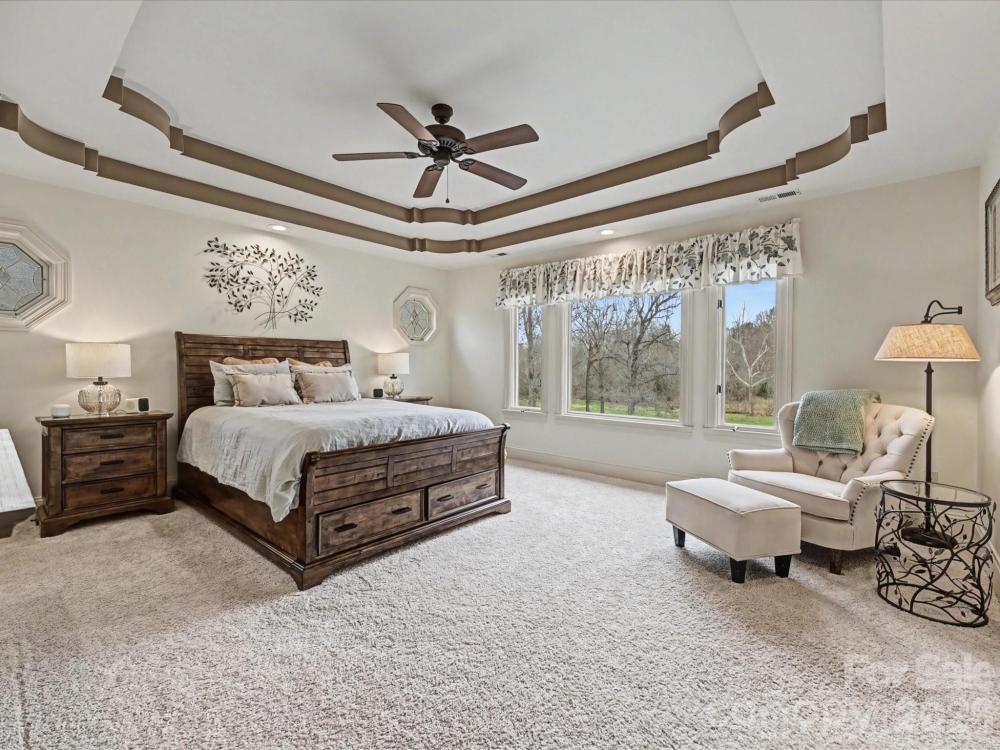 This spacious 4-bedroom home on the 8th Green of River Run offers a seamless blend of luxury, comfort, and flexible living. With a highly functional floor plan, this property is designed to accommodate a variety of lifestyles. Step through the front door into a two-story foyer. To your right, a formal dining room features a tasteful tray ceiling. To your left, a private home office awaits, complete with French doors and custom built-ins. Beautiful hardwood floors and classic plantation shutters flow throughout the main level. The heart of the home is the expansive kitchen, boasting granite countertops, a center island, a one-touch faucet, and a walk-in pantry. It connects smoothly to the spacious living room via a shared, see-through gas fireplace. Upstairs, the primary suite is a true sanctuary featuring a tray ceiling, a stunning custom walk-in closet, and large picture window. The spa-like primary bathroom includes dual granite vanities, a deep soaking tub, and a large frameless glass shower equipped with dual showerheads. Bedrooms two and three each feature en-suite bathrooms. The full walk-out basement provides direct access to the spacious backyard and includes a versatile rec room, flex-space, and a dedicated workshop. It also hosts the fourth bedroom and a full bathroom, making it perfect for guests or flexible living options. Outdoors, enjoy sweeping views of the par-3 green and a beautifully landscaped backyard from the comfort of your enclosed porch, durable Trex deck, or large stone firepit. Standout features include heated floors in all full bathrooms, two separate laundry rooms (both equipped with sinks) and a spacious 3-car side-load garage. Community perks include access to private fishing ponds and scenic nature trails. (River Run Country Club membership is available separately)
