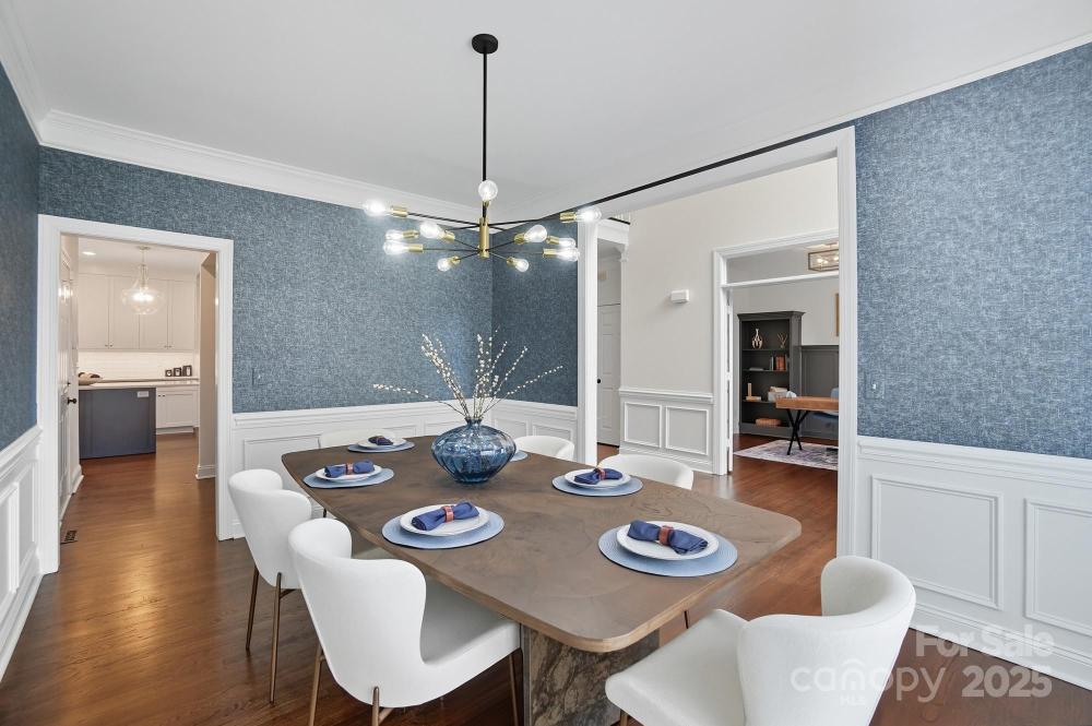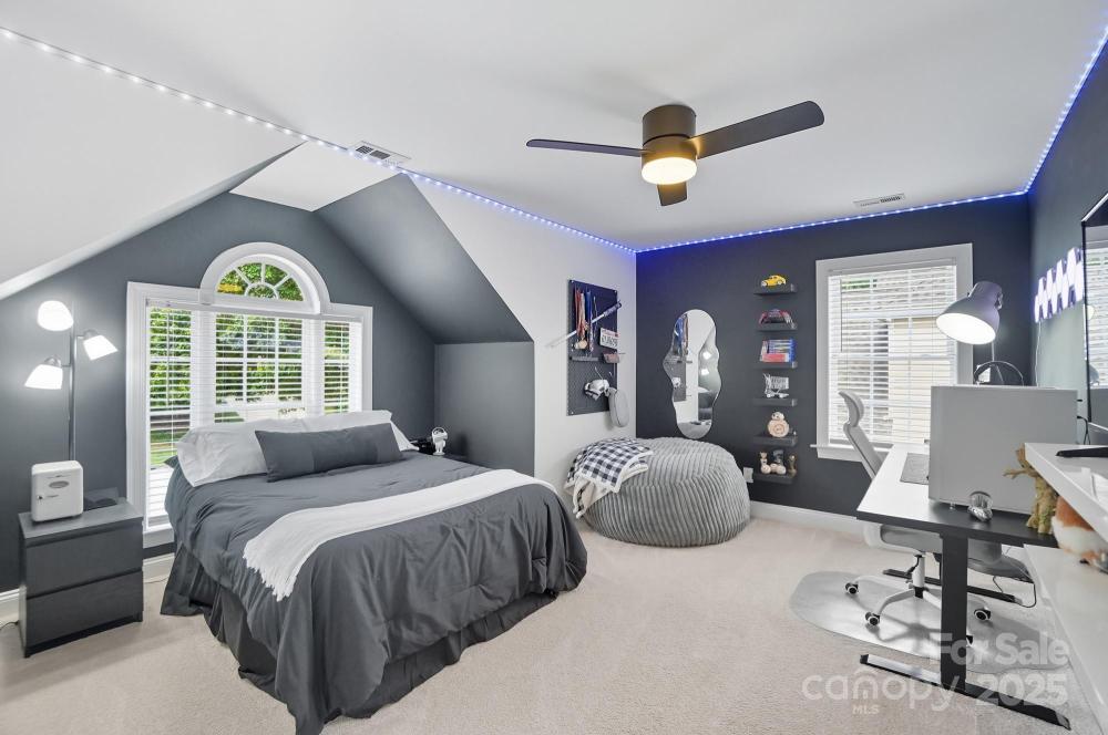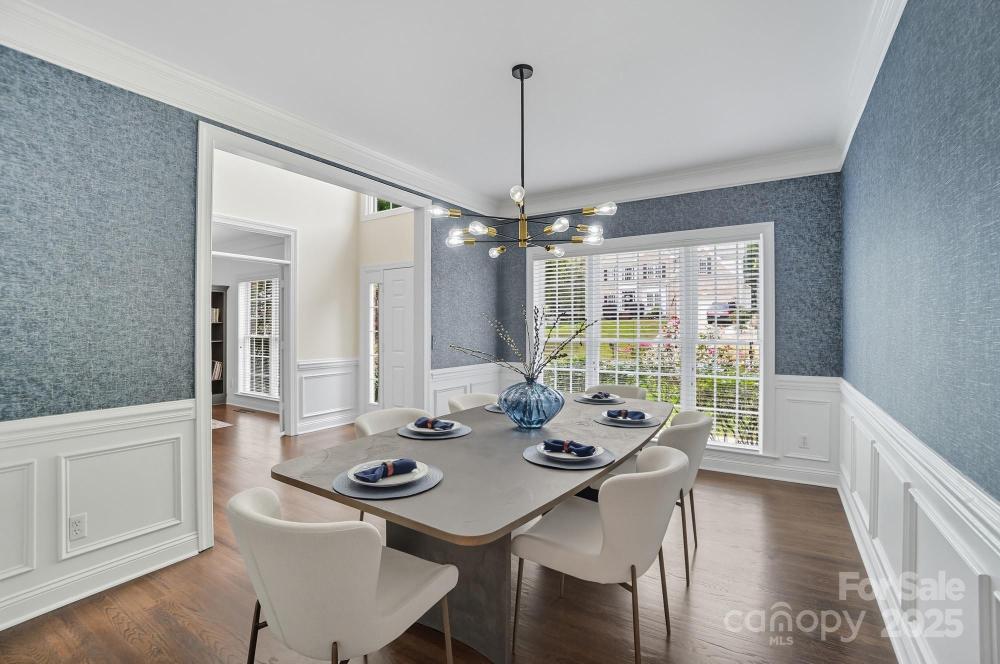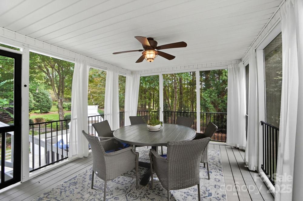 Exquisite two-story residence nestled in the highly coveted Northstone community, offering refined living with golf course views and timeless elegance. Perfectly positioned along the Northstone Country Club fairway, this home showcases a private, fenced backyard framed by lush, mature landscaping. Inside, a thoughtfully designed floor plan boasts five bedrooms and three and a half bathrooms, including a flexible fifth bedroom that easily transitions into a loft, media room, or guest retreat. The updated gourmet kitchen is a showpiece—featuring sleek quartz countertops, a double oven, induction cooktop, custom cabinetry, and an expansive island that seamlessly flows into the sunroom and casual dining area, creating an inviting space for both everyday living and sophisticated entertaining. The main level also includes an executive office with French doors, ideal for those seeking both function and style. Upstairs, the serene primary suite impresses with a tray ceiling, walk-in closet, and a spa-inspired bath with dual vanities, a soaking tub, and a separate shower. Outdoor living is elevated with a screened-in porch and a stunning stone paver patio complete with a wood-burning fireplace and built-in refrigerator—perfect for year-round gatherings. With a full irrigation system and meticulous updates throughout, this home defines luxury living in one of North Charlotte’s most desirable golf communities. Home Warranty included with acceptable offer!