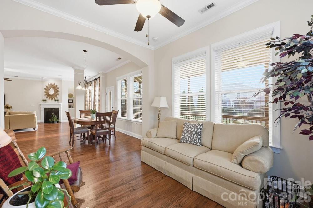 Rare opportunity for a 2,800+ sq ft Craftsman-style ranch in the highly coveted Vermillion community. This residence defines main-level luxury, offering a seamless open floor plan perfect for both entertaining and quiet relaxation. The home features four bedrooms, a dedicated home office, and a sophisticated sitting room, alongside a spacious formal dining room. The primary suite serves as a private oasis, boasting a large custom closet. Significant upgrades provide unparalleled peace of mind, including a replaced roof (2021), HVAC (2021), and professional paint (2022). Step outside to your screened porch to enjoy the quiet surroundings of the backyard. Residents enjoy amazing amenities including a community pool, walking trails, and a popular neighborhood restaurant just a short stroll away. Complete with a rare three-car garage, this home is a testament to meticulous care and timeless design. Vermillion amenities include 2 saltwater pools, playground, community garden, and Harvey's Bar and Grill.