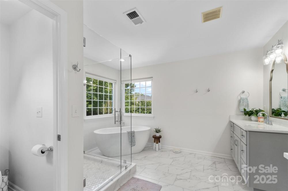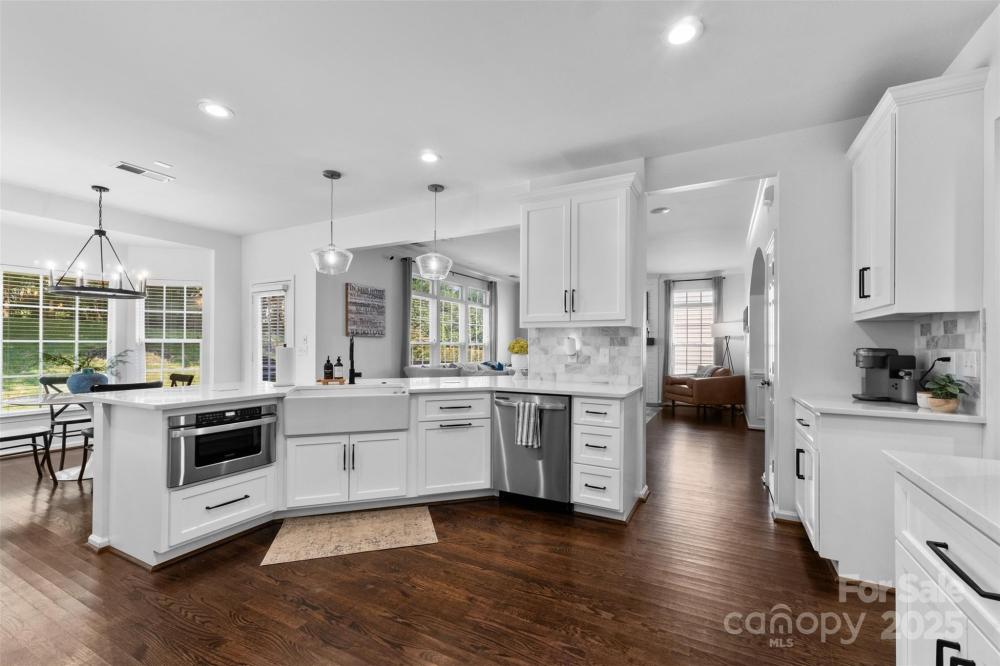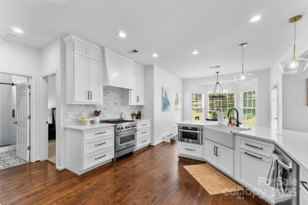 Step into style and comfort in this beautifully updated Huntersville home! Flooded with natural light, the open living room showcases expansive windows, rich hardwood floors, and a cozy fireplace centerpiece. The gourmet kitchen is a true showstopper with crisp white cabinetry, quartz counters, gas range, custom hood, and an oversized island perfect for gathering. A sunlit breakfast nook offers a charming spot to enjoy your morning coffee while overlooking the private backyard. Upstairs, retreat to generously sized bedrooms with designer details, including a fresh jack-and-jill bath and a modern guest bath with sleek finishes. The primary suite is a calming haven with abundant light and space. With thoughtful updates throughout—on-trend lighting, timeless finishes, and a floor plan designed for everyday living and entertaining—this home combines modern elegance with warmth. Ideally located near Birkdale Village, Lake Norman, and top Huntersville conveniences, it’s the one you’ve been waiting for! Don’t miss your chance to own this gem in Huntersville—schedule your showing today!
