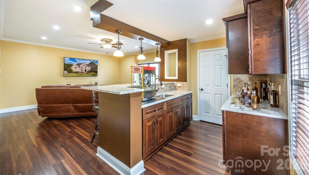 Welcome to this meticulously maintained, full brick home in The Reserve section of the Northstone Country Club Community! At almost 5,300 Sq Ft set on over a third of an acre, this 5 BR, 4.5 bath home with 3-car garage offers the perfect blend of elegance, functionality and abundant space to entertain. Custom wrought iron front doors greet you as you enter the light filled foyer. Wall to wall bookshelves added in the library adds a sophisticated touch while the updated staircase w/wrought iron spindles carries a thoughtful design that is anchored by newer refinished hardwood floors. The living, dining and family room which has a gas log fireplace surrounds the kitchen, the true heartbeat of the home. Stainless steel appliances, center island with cooktop and a 2nd walk in pantry complete the space making entertaining a breeze. Second floor has 4 spacious bedrooms, 3 full bathrooms & a separate bonus room/flex space. The grand primary suite has a lovely sitting area with a spa like bath complete with his and her closets. The newly built out 3rd floor feels like its own destination with additional bedrooms, a full bathroom and media room w/bar area that includes a wine and full sized fridge. The level lot is bordered by trees and lush landscaping. Low maintenance Trex deck is the perfect spot for grilling and entertaining guests. Roof replaced '21. Assigned to great schools, close to shopping, parks & greenways and all major highways. Northstone is a wonderful and unique community offering Private Country Club amenities right at your finger tips! Memberships are available! Please contact the club directly for details.