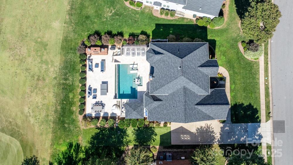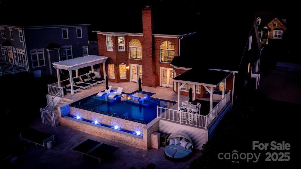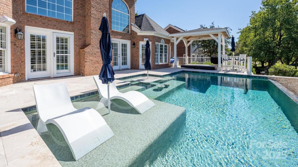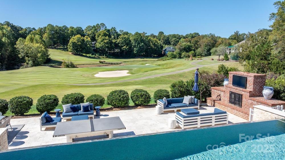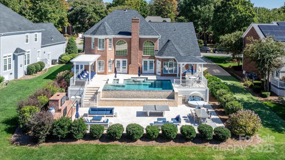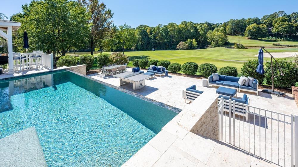 Please see website for video and additional pictures!: https://tours.auroraphotovideo.com/15705-northstone-dr. Stunning full-brick home on the 9th hole and overlooking the 18th of the P.B. Dye Signature Golf Course, offering resort-style outdoor living with premium updates throughout. The backyard oasis features a travertine vanishing-edge infinity pool with custom lighting, outdoor fireplace, and two mounted TVs under a pergola and gazebo equipped with fans and a mister system. The remote-controlled fountain and landscape lighting enhance the ambiance, while AstroTurf in the side yard and an invisible dog fence provide low-maintenance convenience. Irrigation system includes an added water line to auto-fill the pool (no sewer tax on water used). Inside, no detail was spared. All-newly updated flooring and staining of hardwood floors, custom cabinetry in the family room, study, kitchen, primary closet, and garage, and Italian marble tile showcase craftsmanship and elegance. The gourmet kitchen includes a Wolf dual-fuel range, Sub-Zero built-in refrigerator, Sharp microwave drawer, and granite and quartz countertops. The primary suite offers luxury and comfort with an oversized frameless glass shower featuring dual shower heads, Italian marble tile, a free-standing tub, new plumbing fixtures, and a Toto bidet system. Additional highlights include: Hand-painted French-style wallpaper in the dining room, New chandeliers and light fixtures throughout (entry hall, dining, study, kitchen, and stairway), Updated flooring and staining, Custom carpet stair runner, New double front doors with privacy film, Ring doorbell and two Ring floodlight cameras, Built-in speaker system across dining, study, primary bed and bath, outdoor area, and four upstairs bedrooms, New roof and leaf-guard gutters (2023), Wrapped crawl space (2023), Chimney topper, Clean termite inspection (Sept 2025) and a new Millennium Pest Control barrier system. Garage features custom cabinetry. Outdoor living includes travertine tile surfaces, and the ping-pong table may convey upon request. These are just highlights, too many features and additions to list!
